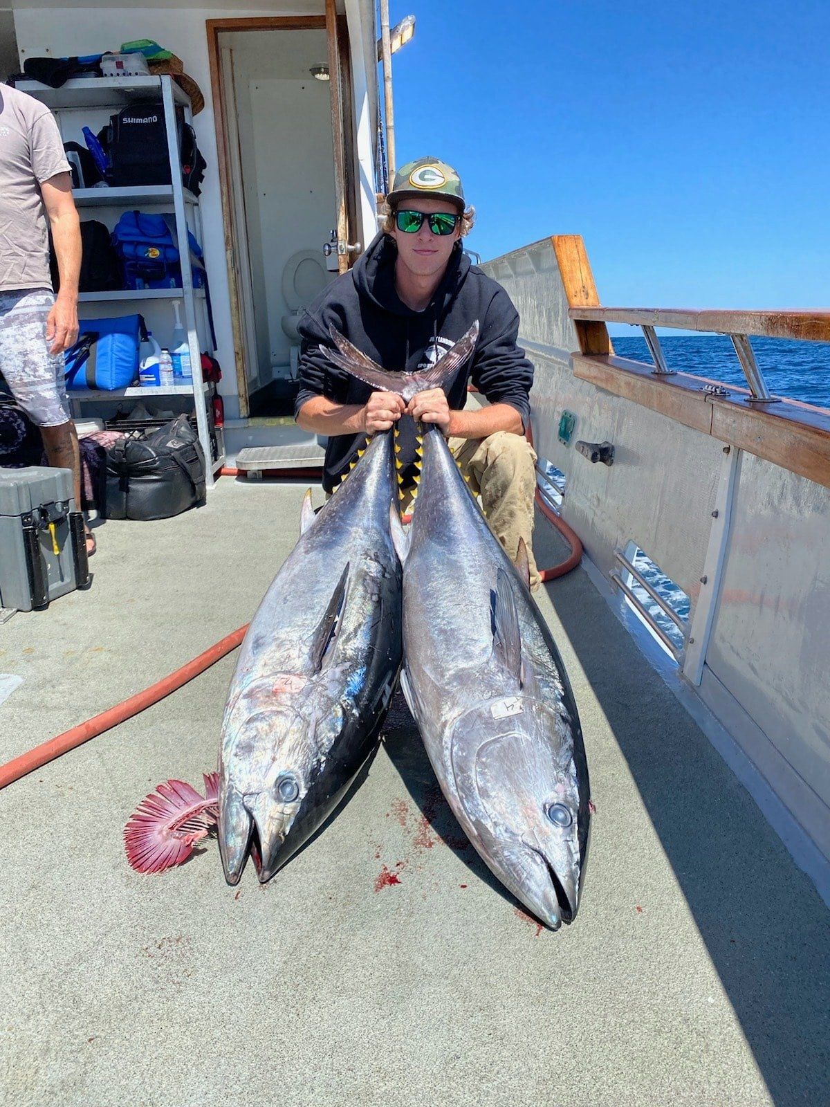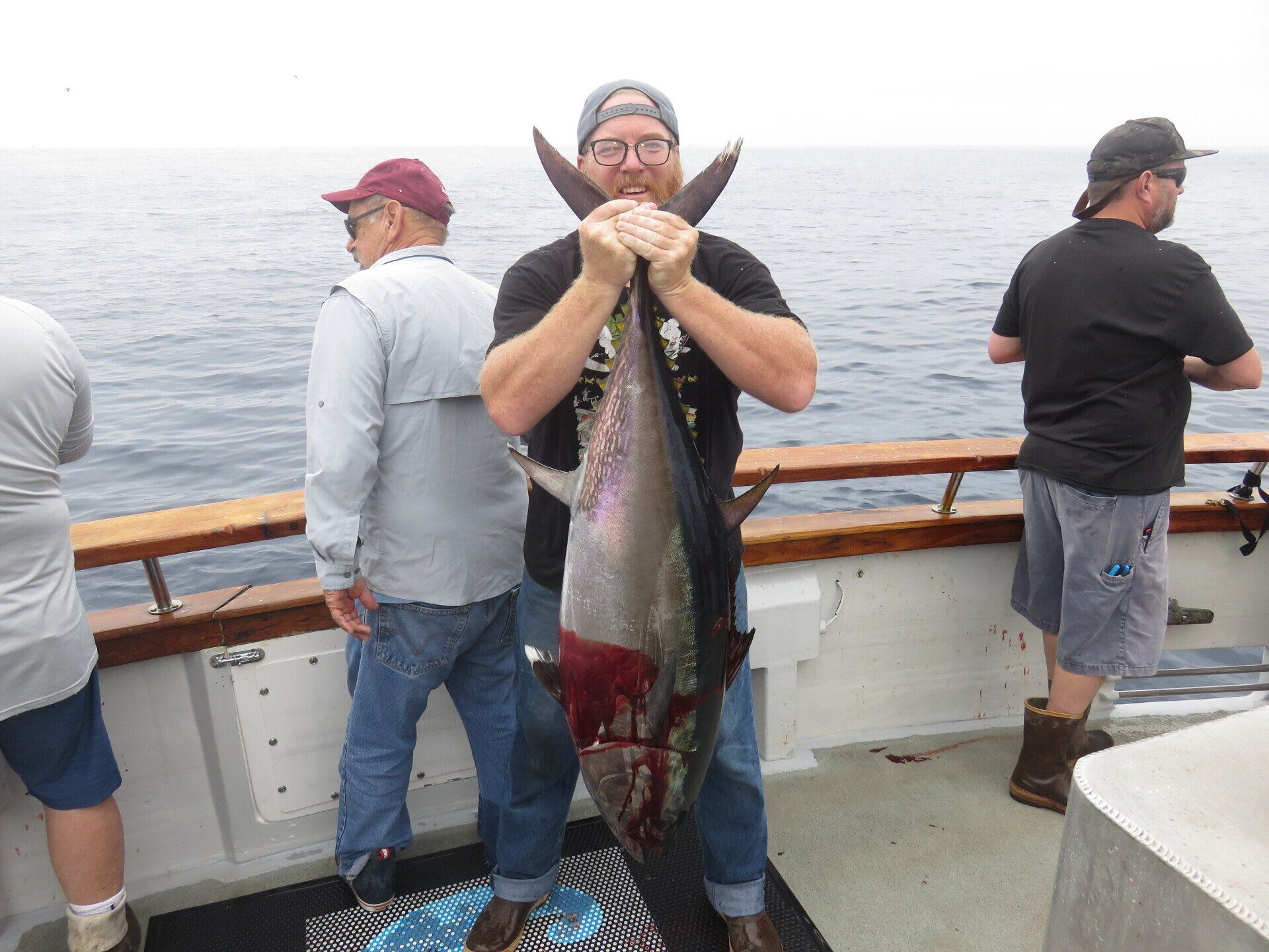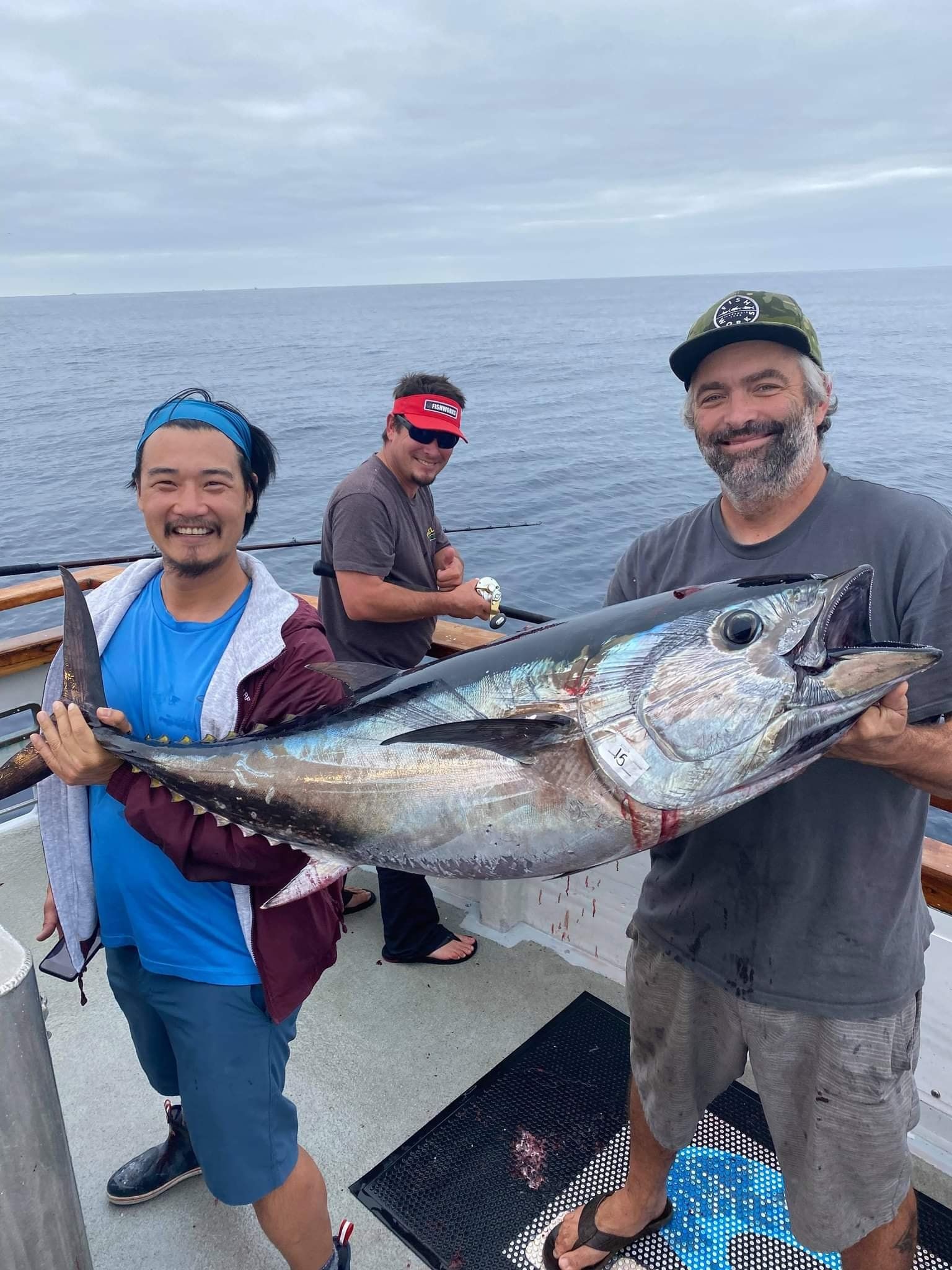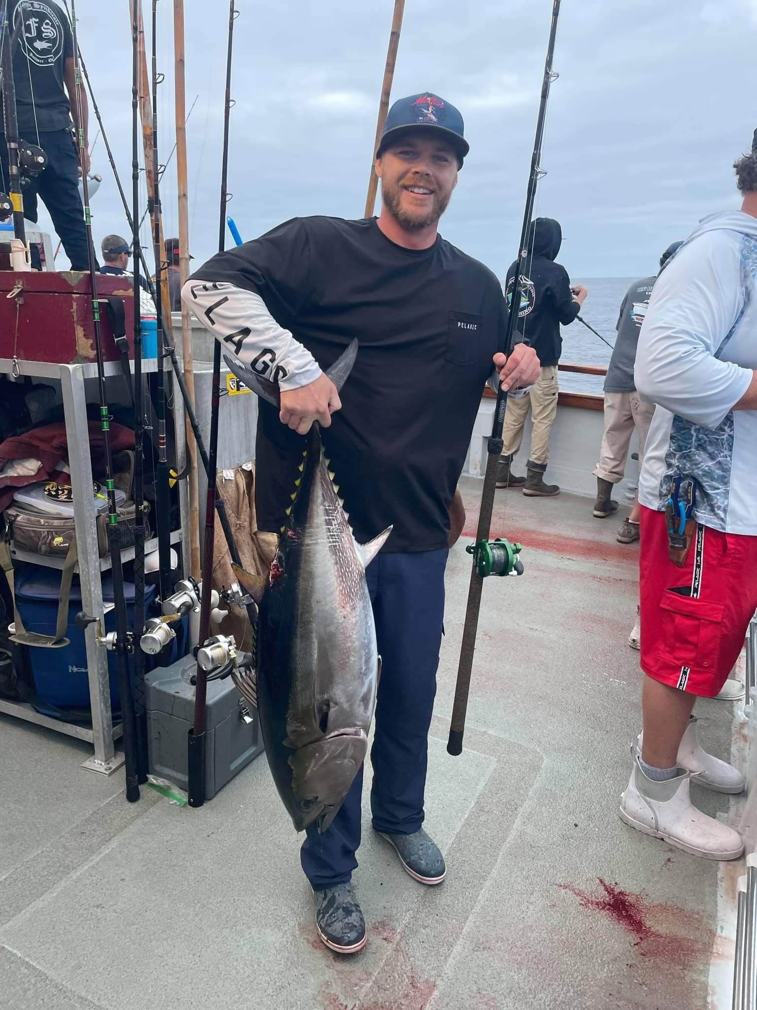 get bent and pulls in and lands a 40-50lb beautiful Bluefin Tuna. 25lb pound line. Chris Ramsey then gets