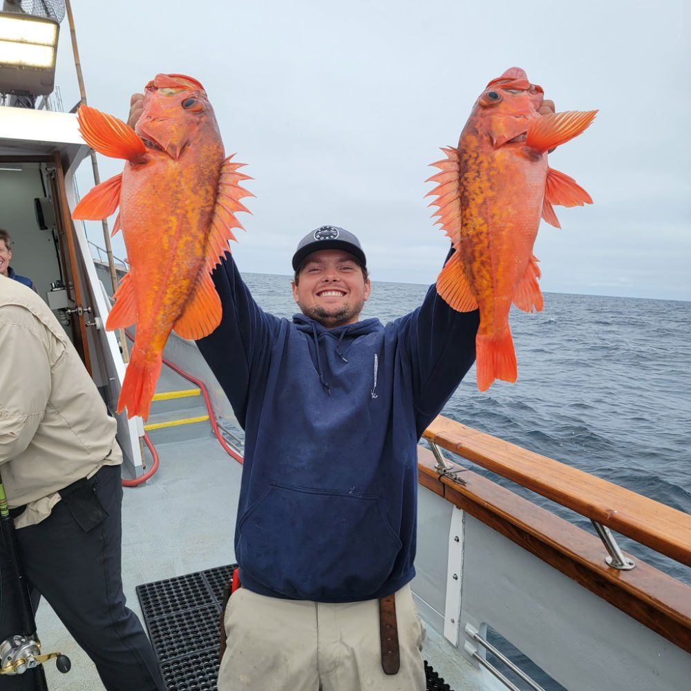 After motoring from Cortez, thru the evening to the North, looking for Bluefin that were absent, for a night bite, we were off on an "audible", by Capt Jeff, to the Butterfly Bank, motoring from 5pm to 4am.( We are pretty fortunate to only be charged $30 for a fuel surcharge, with $6 diesel) Waking to nearly flat calm seas on the Butterfly Bank, with the intention of a kelp patty search.