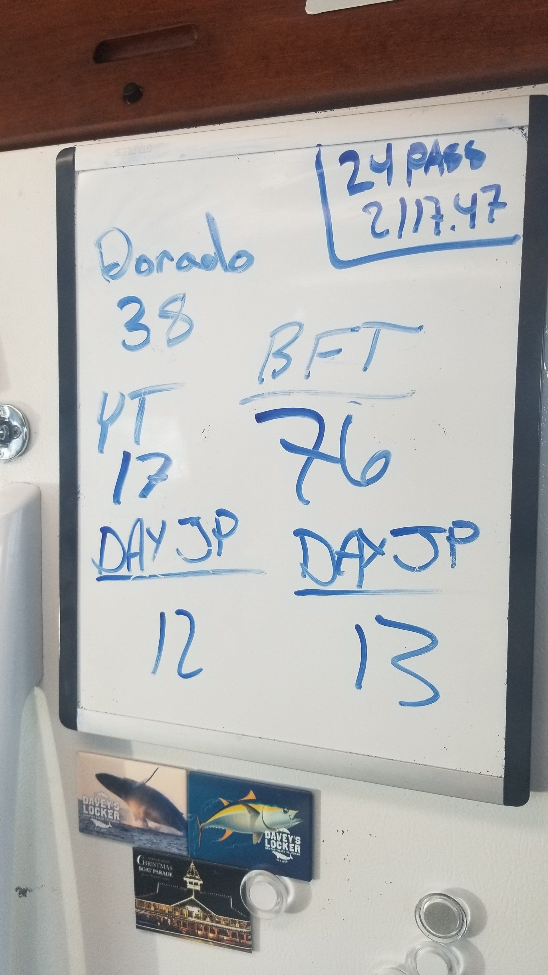 As we were approaching this trip the fish counts had been something we all dream about. Limit style fishing on kelp paddy dorado and mixed yellowfin down near/south of the border, steady dorado fishing in our northern local zone and reports of some pretty good bluefin fishing out west behind SCI.
