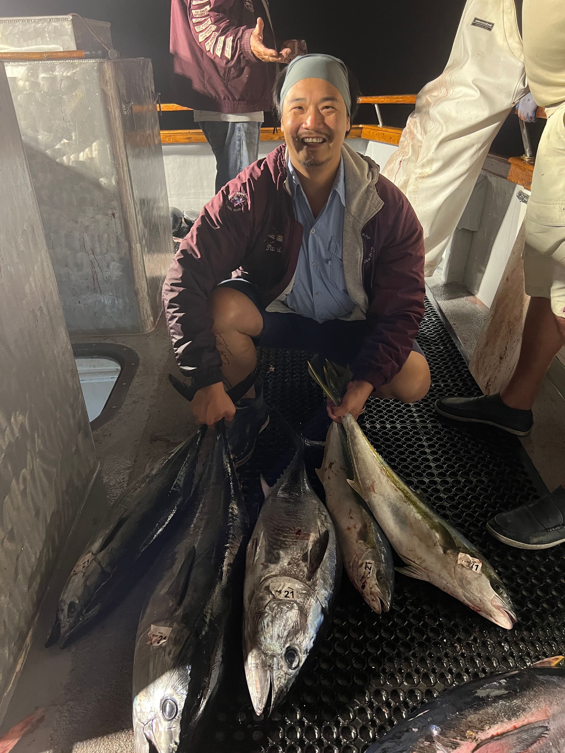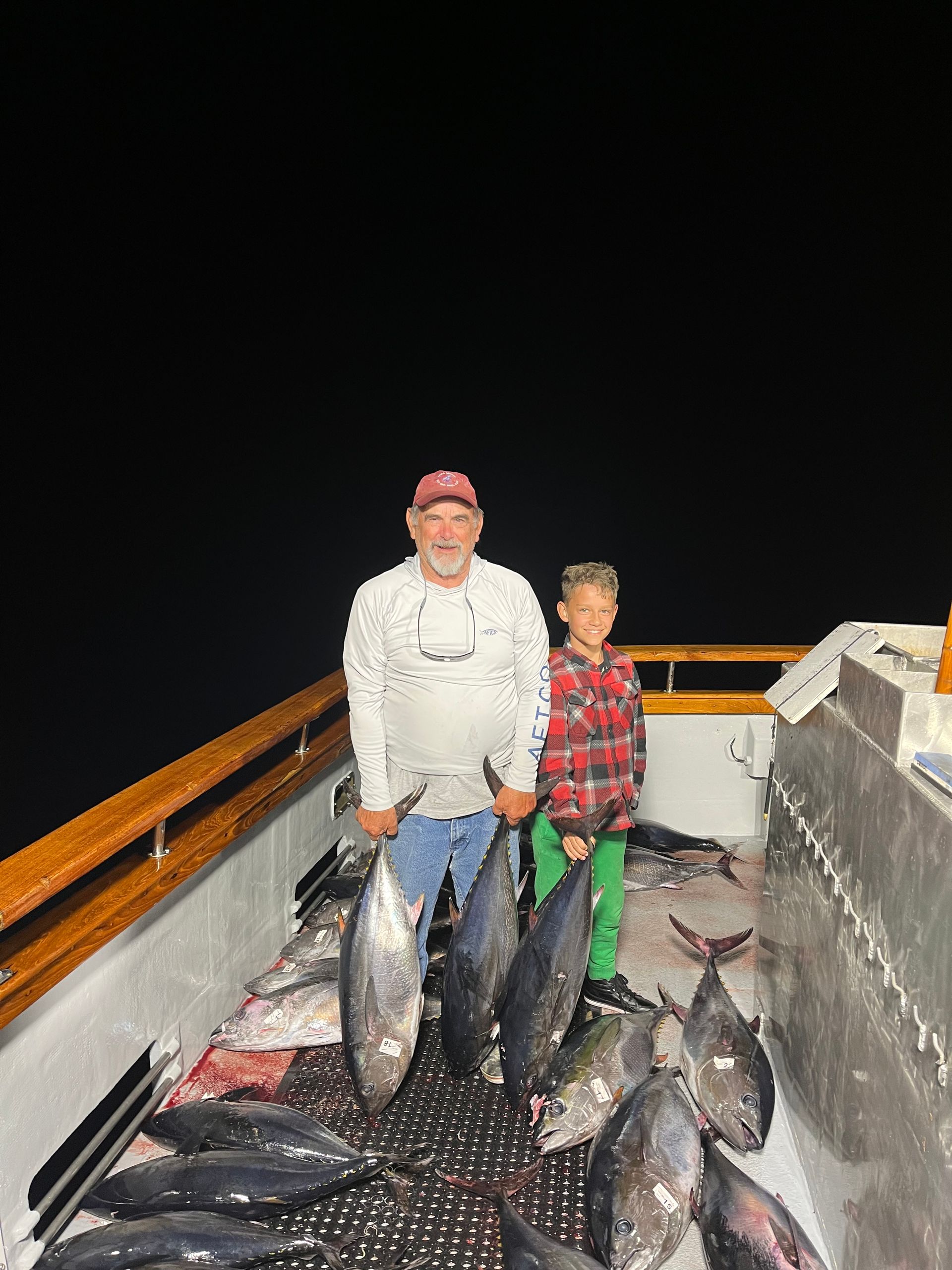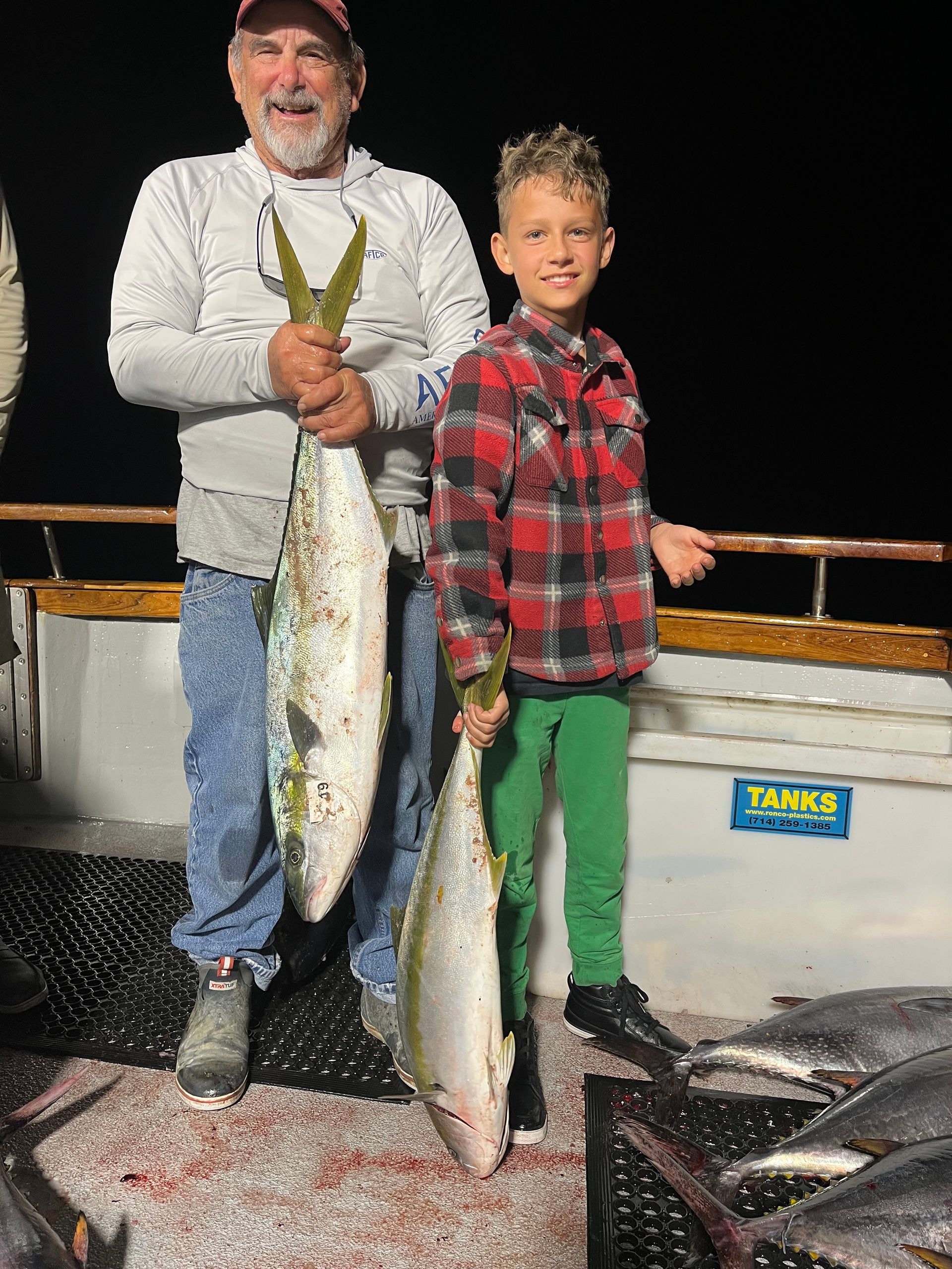 Tommy’s Grandson, Ari, joined the trip and bagged a trifecta; he caught Calicos, YT and Bluefin. Not bad for a 11 year-old-ish junior angler. He did a great job working the boat, taking some schooling and learning on his first overnight trip. Hats off to Luke, Bill and others who really mentored Ari as Tommy tended to his bag limits (Actually Tom was a great, attentive Grand Dad and should be very proud!).