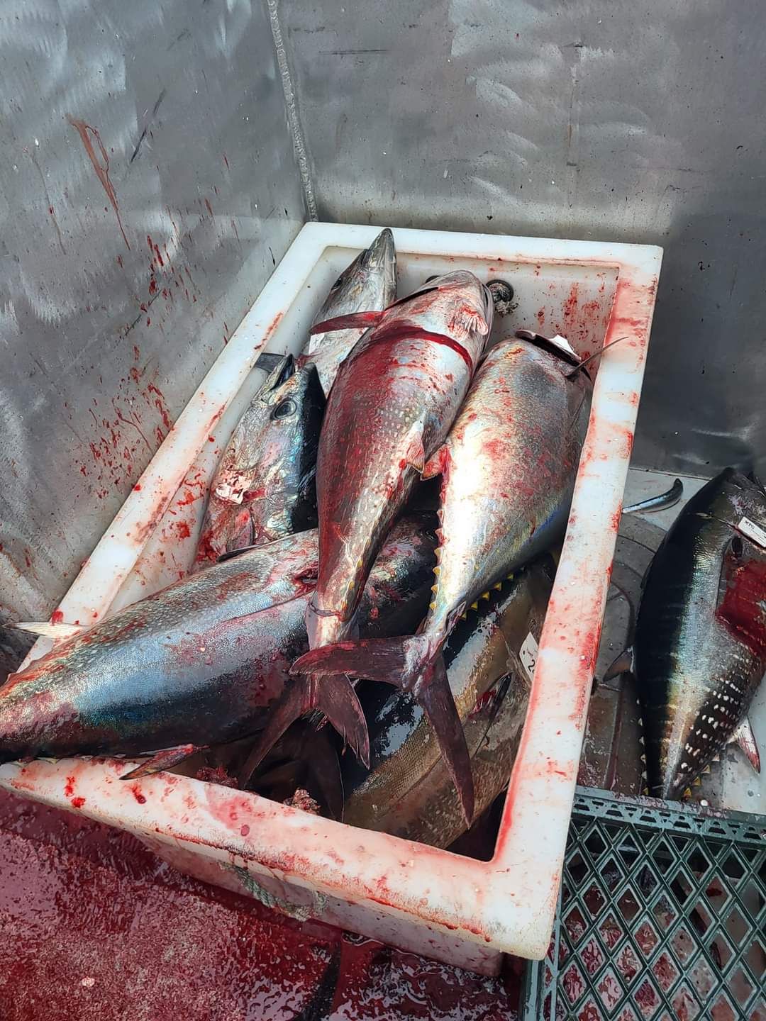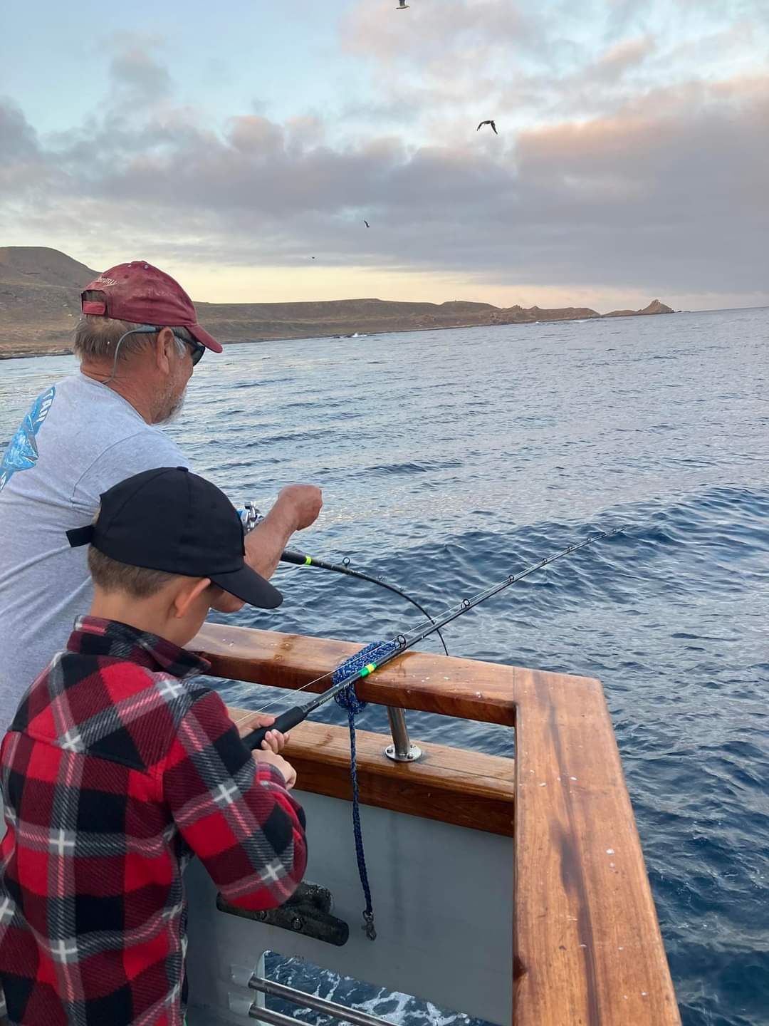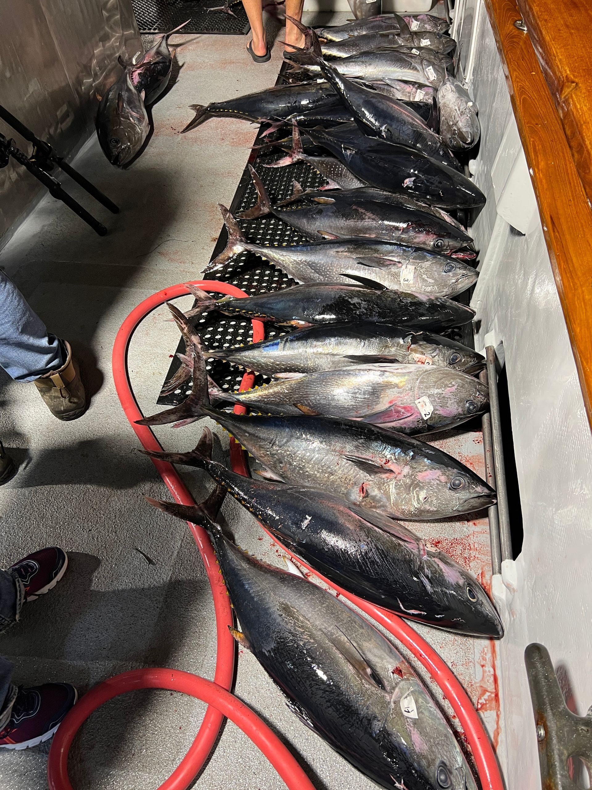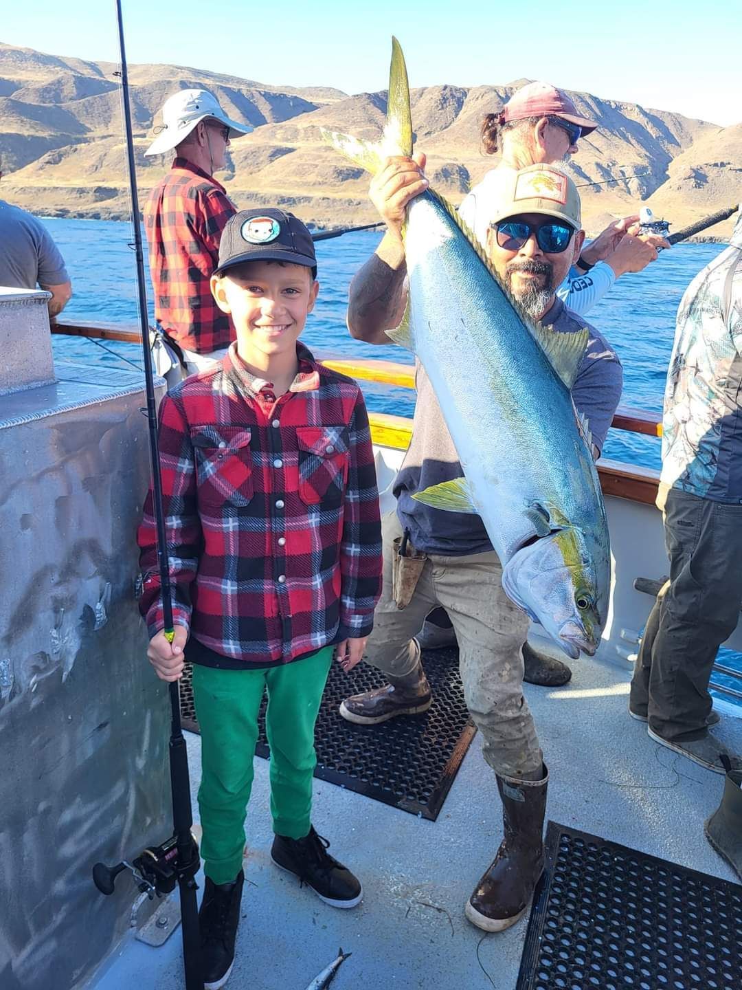 Tommy’s Grandson, Ari, joined the trip and bagged a trifecta; he caught Calicos, YT and Bluefin. Not bad for a 11 year-old-ish junior angler. He did a great job working the boat, taking some schooling and learning on his first overnight trip. Hats off to Luke, Bill and others who really mentored Ari as Tommy tended to his bag limits (Actually Tom was a great, attentive Grand Dad and should be very proud!).