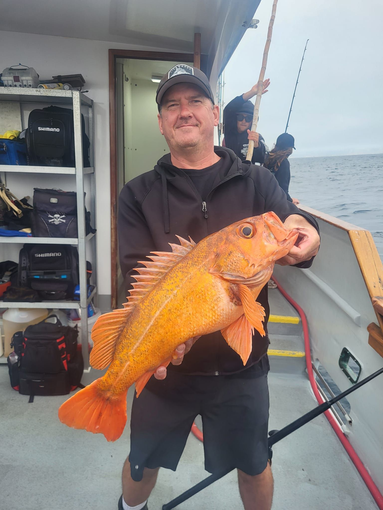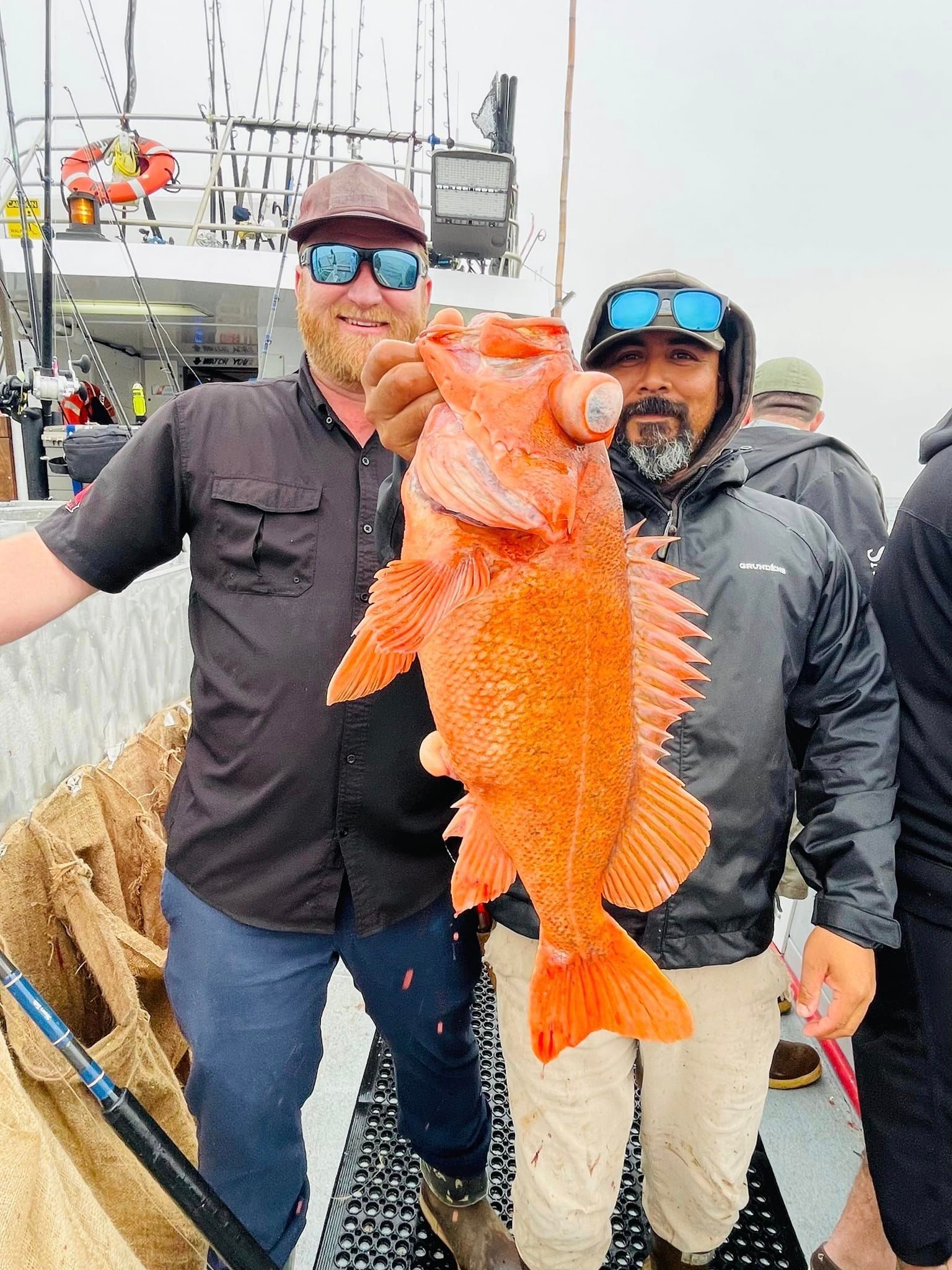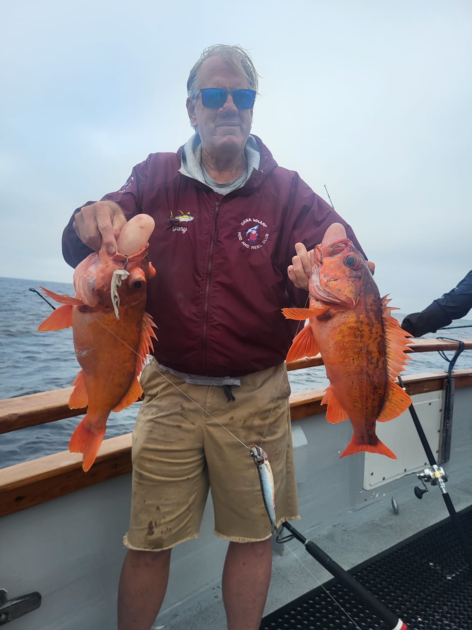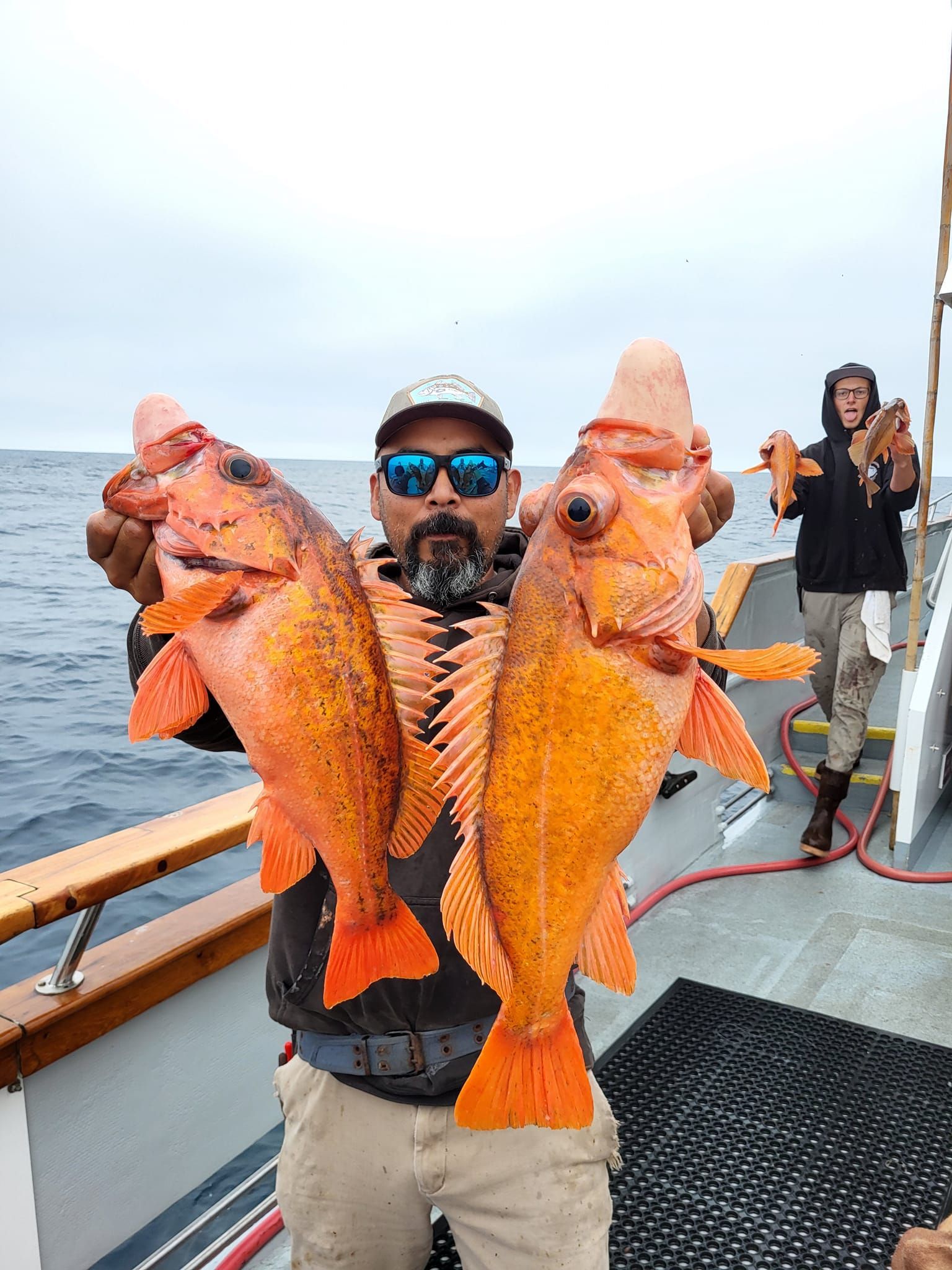 It was a smooth ride to the area north of SCI towards San Nicholas Island. It was not a secret where the fish were the day before. In the dark, it was easy to count over twenty boats. It seems we were a little late to the party, some boats that got them got them earlier in the night. We did get one small shot at fish in the dark landing a couple. They were school-size fish, they liked the “sinker bait rig” which was a sign of things to come.