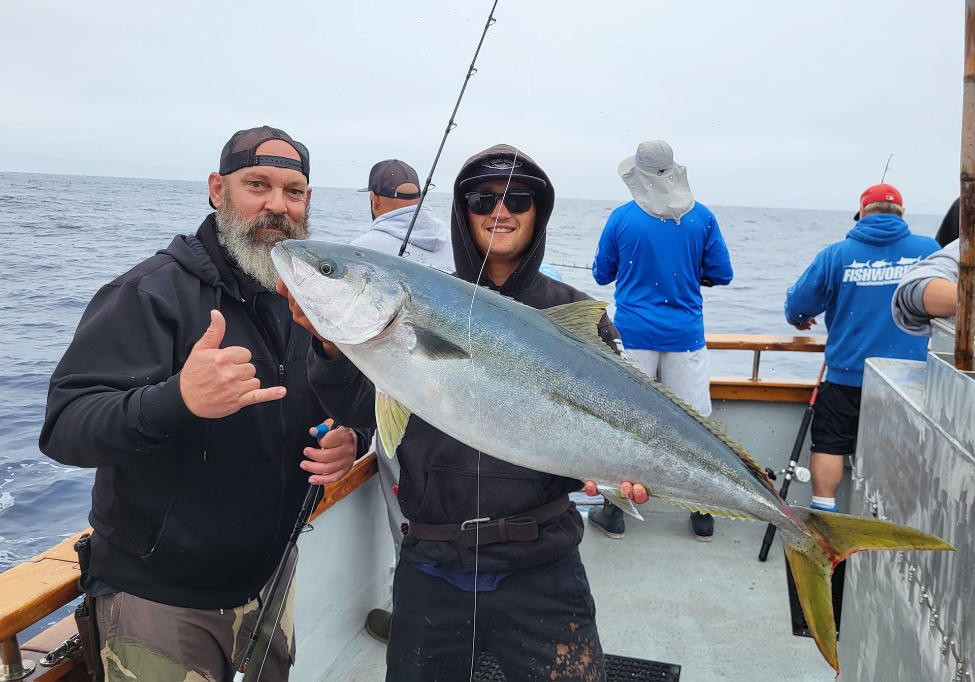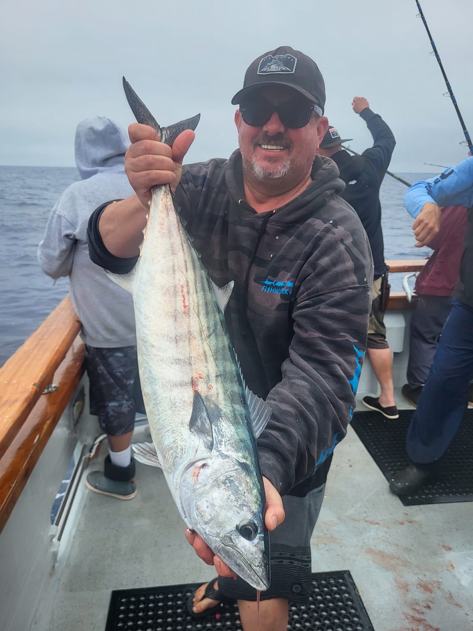 About 2 AM we started for Tanner Bank to target Yellowtail. We got there just as the Shogun was getting there. We anchored next to each other, close enough to hear their group every time they hooked a fish. We had great current but there just was not a large volume of YT. There might have been as many Bonito as YT. We worked hard to get 10 fish, all on flylined baits. We had 4 that were in the mid-20s’ with Paul Morgan getting the largest. At 11:30 AM it was time to head for home.