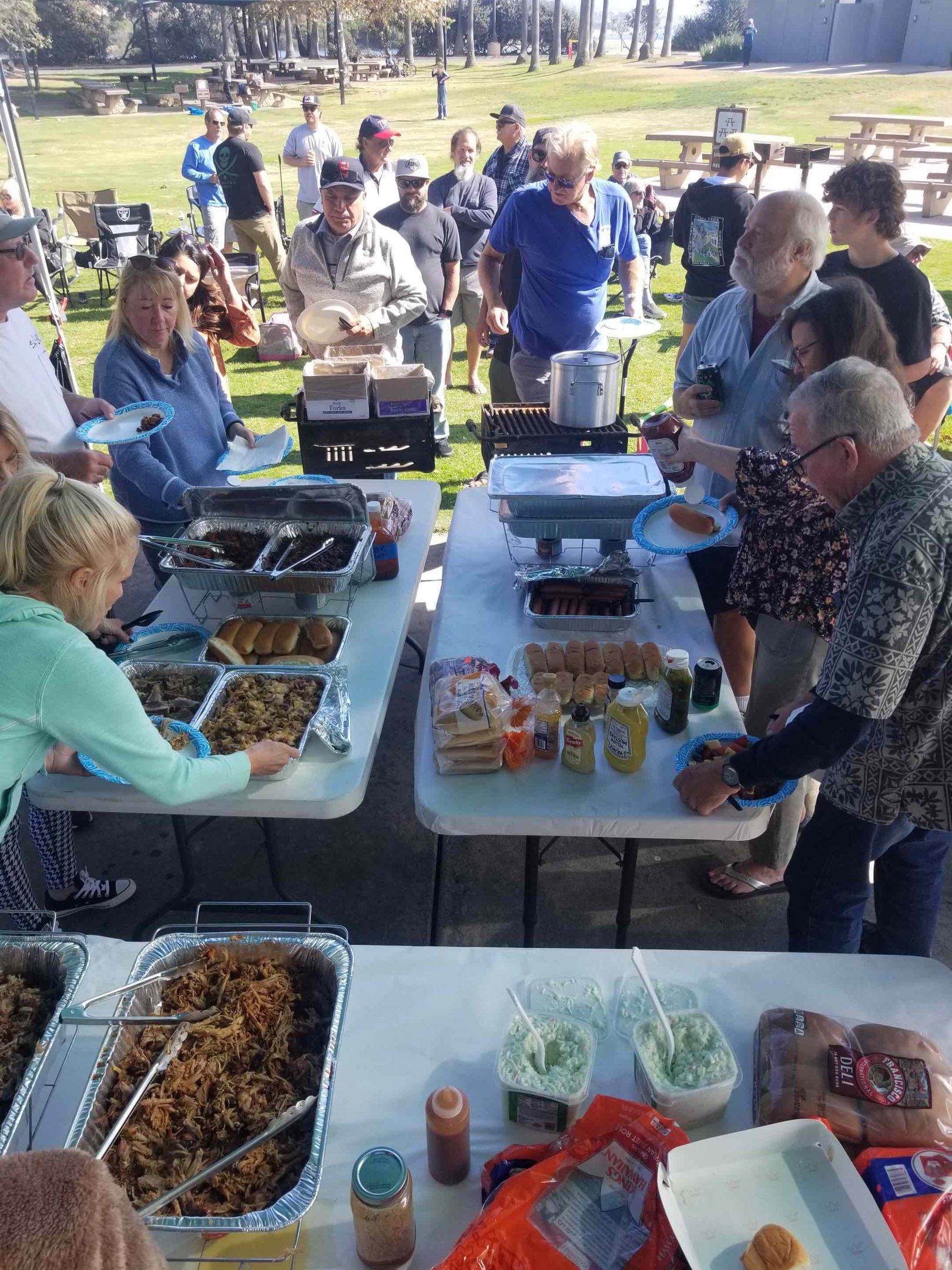 Trip #7: Boat: Thunderbird 2.5 day Departs: Tuesday, September 16th Fishing: September 17th, 18th Returns: September 19th am Thunderbird Crew: Jeff Markland- Captain Steve Raby- 2nd Captain Carmelo in the Galley Jose & Nate on deck The fishing schedule for 2025 has two 2 1/2 day trips and Trip #7 was the second one. Historically the 2 1/2 dayers fill quickly at the Annual Sign-Up Meeting. This was not the case this year as this trip only filled to about half during the Lottery and the rest of the spots were taken by guests. Here are the members who were on the trip: Gary Thompson, Steve Morgan, Mike Barton, Alex Mesko, Mike Higa, Bill Parks, John Lenker, Steve Lenker, Kyle Shimigawa, and Luke Burson (trip scribe). That is 10 members and the other 13 were all guests. The Club owns the following a big thank you for committing guests to this trip because without them this trip would have put a financial burden on the Club of $8,125. And the Club simply does not have those funds so the trip would have been cancelled. A special thank you to Mike Barton with 5 guests, Steve Lenker with 3, Mike Higa with 2, guests, Steve Morgan with 1 guest, Bryan Upcraft with 1 guest, and Luke Burson with 1 guest. And all the guests fit in perfectly and made it a good group to fish, sleep, and eat with for 2 1/2 days. As the trip approached Gary sent out information a week before with information about the trip. At that point the weather looked good and the fish counts were encouraging. As the trip got closer Gary sent out more information with the weather holding plus the Thunderbird getting limits on their weekend 2 1/2 dayer. All were feeling pretty optimistic about two things that had been missing on previous trips……nice weather and good fishing. On the day of departure, the usual members arrived early to ensure that they would board first to secure the tackle spots that are important to them, Others started to drift in throughout the afternoon. All were challenged with parking because of the local Wednesday street sweeping. Some were luckier than others but everyone found a parking spot. And then to our surprise the Thunderbird arrived close to 4 PM and it was obvious why…..very good fishing. To be specific they had back-to-back multi-day trips with limits of BF. And the buzz for all on the dock was pretty strong. They caught the fish at the Cortez, some at night near SCI but most during the day on bait. We asked about the bait and the group did not have good things to say. We quickly put two and two together that the fishing must be pretty good to do that well with poor bait. And another important item……NO STINKING FULL MOON! Jeff indicated we were headed back to Cortez and to save a little time we were going to take the direct course line around the east end of SCI. We’re expecting a flat smooth ride, we quickly learn that our course line had us in the rolley trough. It turned out to be anything but smooth. Our crew for the 2 1/2 trip was Jeff as our Captain, Steve as the 2nd Captain, Carmelo in the galley with Jose and Nat on deck. We have fished with them many times before so we knew we were in good hands for the 2 1/2 days. We stopped to load bait and to our surprise, that bait looked pretty good. The size could have been bigger as it was all medium to small-medium baits but it looked good. That even increased the anticipation of what was to come. As it turned out about 60% turned red while the rest was good bait. For the next two days, you really had to pick through what was in the hand wells to find the good ones. As we rolled into the “Bank” there was a pretty good electrical show to the west from about 3 AM to 5 AM plus some slight rain. And we could see some boats in the distance. We would learn that we would not be alone at Cortez Bank but because of the way the fish were spread out it would not make a difference. Jeff got the anchor down close to the position that they had success on the last trip and it took a little time for the fish to find us……and they did. It was a slow pick for the next 4 or 5 hours. Occasionally we would have 2 for 3 going but most of the time it was one at a time. The conditions were perfect, a strong current in the right direction and some breeze to keep the boat a little crossways to the current. Jeff said the conditions were perfect. As the morning continued there were two ways to get a bite: 1) hot bait close to the boat, or 2) long soak behind the boat. Although detailed records were not kept it seems that the hot baits close to the boat got 4 to 5 times the bites compared to the long soak. This getting bit close to the boat with hot baits was shared with all as it was working great for a few: light line (20#), small hooks (#6 or #8), the best bait in the well, and then give that bait 30 seconds, and if no bite wind in and do it again. And if the bait did not “swim” then cut your losses and wind in to do it again. Some fished that way and were rewarded, others continue to soak their baits. It was a little frustrating that so many were locked into soaking baits when the other method was working so well. It just must be too much work to change baits every 30 seconds and it is easier to soak them behind the boat. The few anglers who changed baits quickly did pretty very well while others did not……that’s fishing. The fish seem to leave us around 2 PM so Jeff decided to go looking in the direction of SCI. By heading back toward SCI we would have a shot at bigger fish at night. We ran all the way back to within 5 miles of SCI and never saw anything on the electronics. When it got dark the effort changed to working the area where the BF had been at night but after about 5 hours of looking without a single mark on the electronics Jeff decided to head back to Cortez to fish the same location we were in that morning. Carmelo prepared an excellent dinner of marinated chicken, basmati rice, and a Greek-style salad. And of course, it was finished 