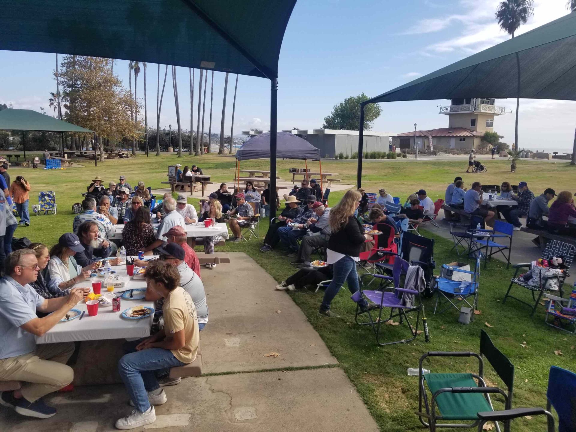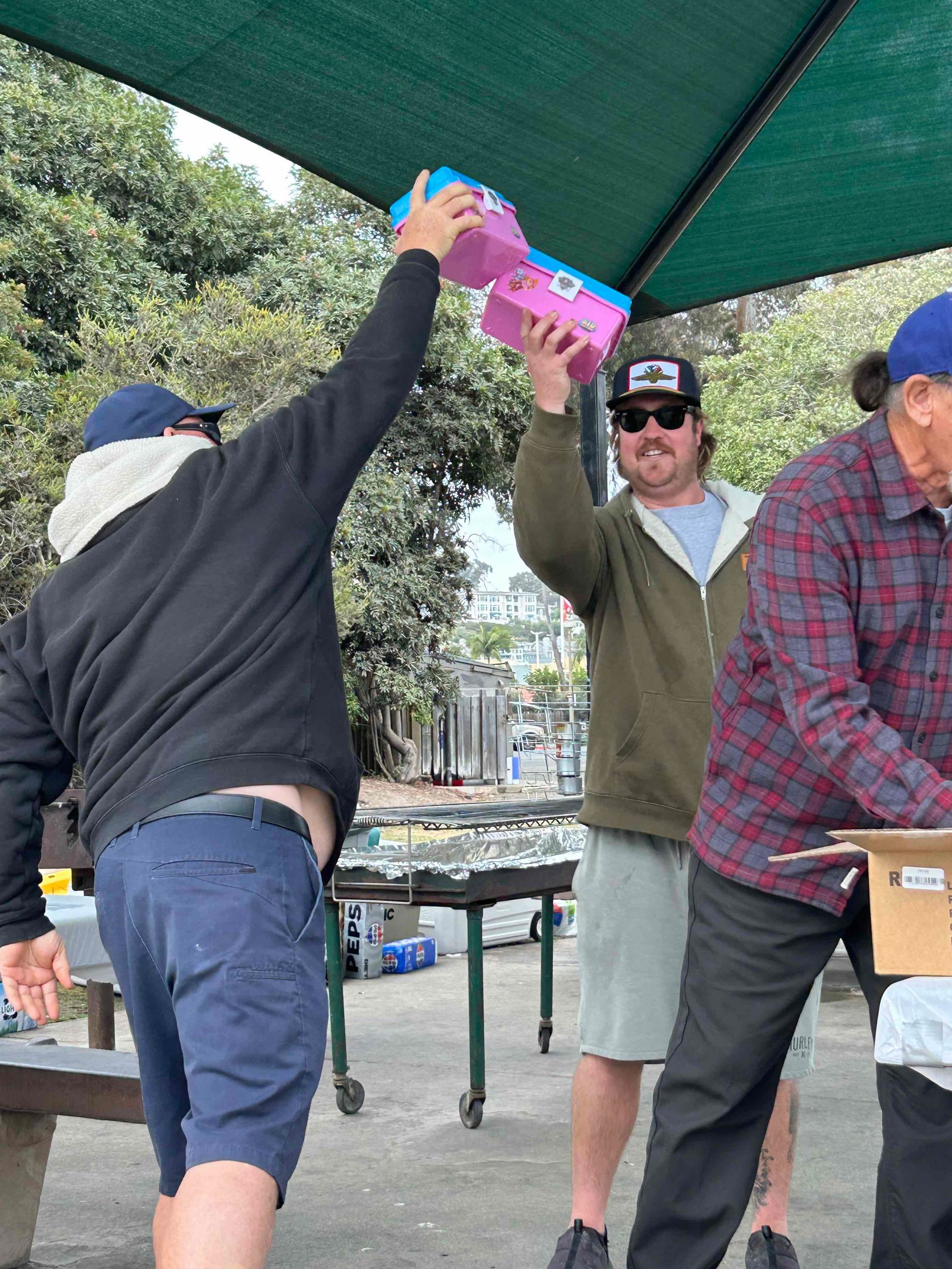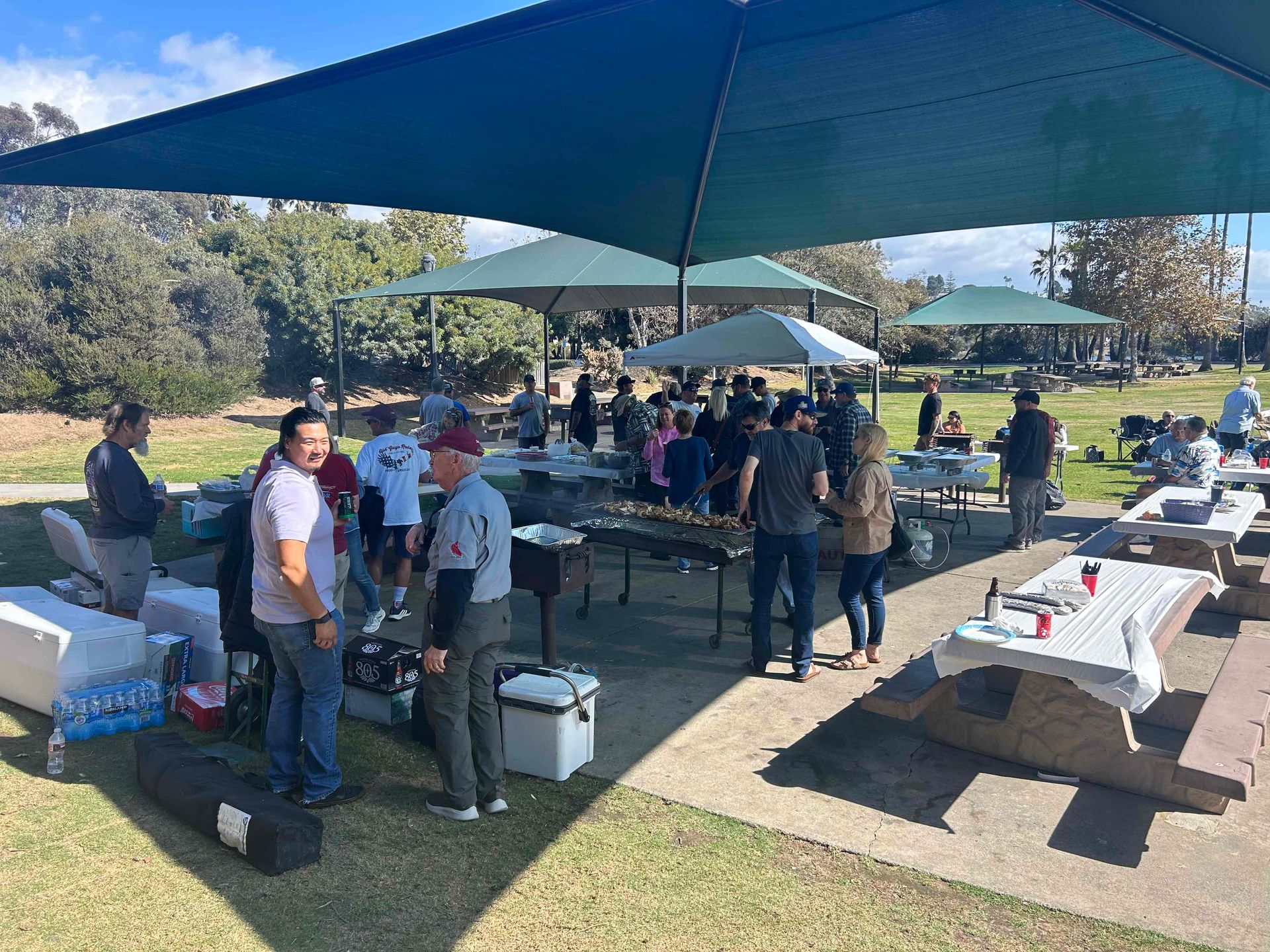 Trip #8: Boat: Thunderbird 1.5 day Departs: Thursday, October 2th Fishing: October 3th, 4th Returns: October 4th pm Thunderbird Crew: Capt. Jeff Capt. Chris Jose Nate Goofy Cast of Characters: Bill Parks Steve Morgan Riley Dyer Jim Bertella Justin Becker Jacob Richards Luke Burson Paul Morgan Mike Allen (Scribe) Patrick Thunyakij Bruce Granse Kevon Kong Michael Harris Ryan Burson Oscar Ochoa Ed Chutney Jeff Allen Andrew Ron Shrout Murphy Parks Romeo Ochoa James Harris Ozzie Baktiari Arriving for a trip in the month of October at Newport Landing is a far easier experience then one would have in the summer months of June – September. The dread of driving through the neighborhood in hopes of an empty space large enough to accommodate the larger trucks that many of the club members own seems to dissipate as the offerings are far more plentiful. While the welcomed views of summer also tend to be less abundant, the ensemble of club members arrived with plenty of time to catch-up on some conversations and enjoy a beverage or two.