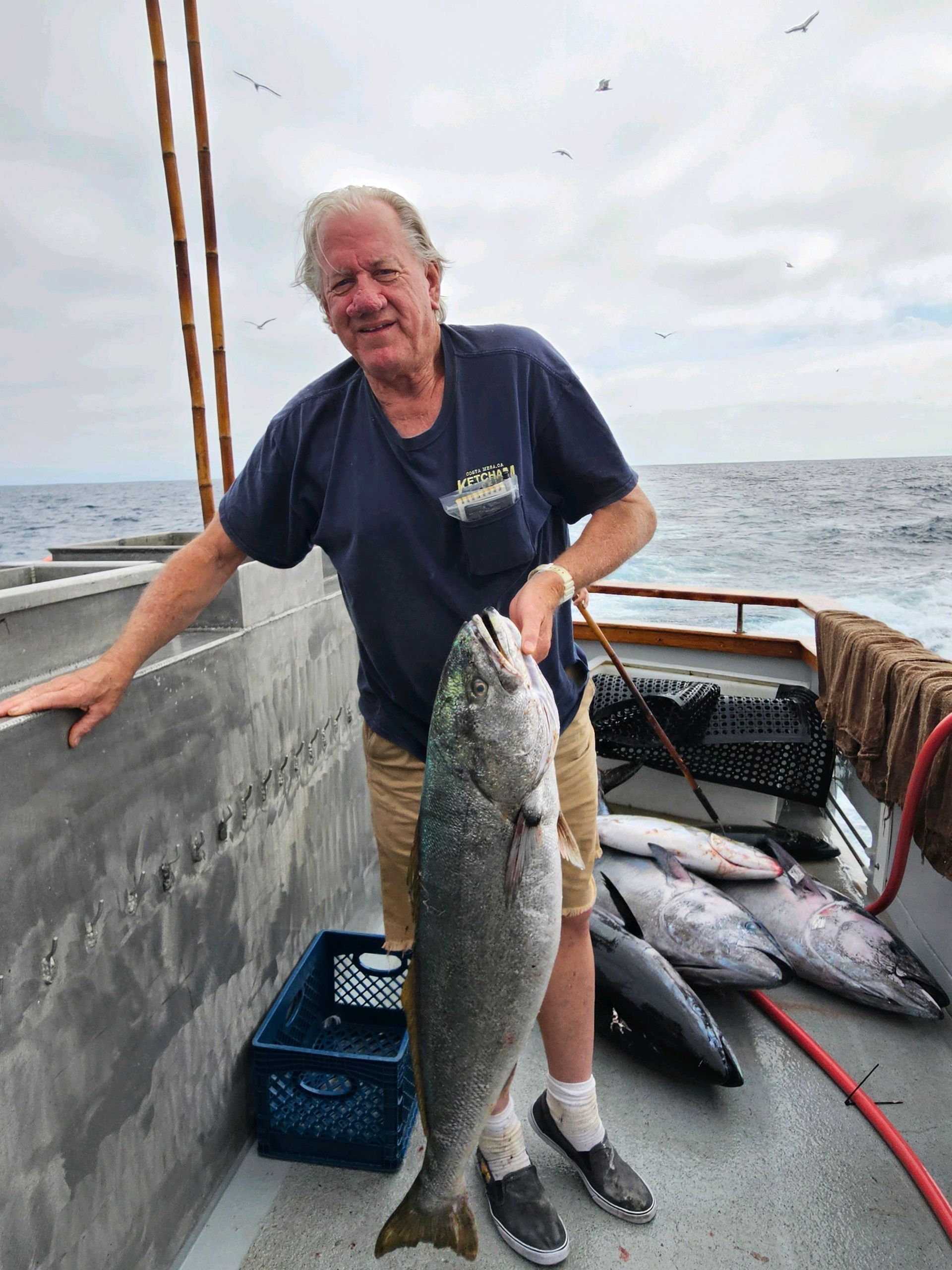 Day two ends about 11:00AM and it’s time to count fish and determine jackpot and patch fish. Day one’s contenders are too close to determine with the scale alone, and too dang heavy. After much measuring and calculating the jackpot goes to James with a bluefin taping out at 124 pounds! Day two jackpot and patch goes to Bill Parks with his unassisted 33-pound yellowtail (taped at 28.3).