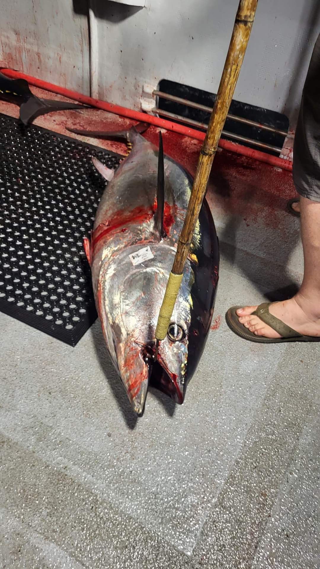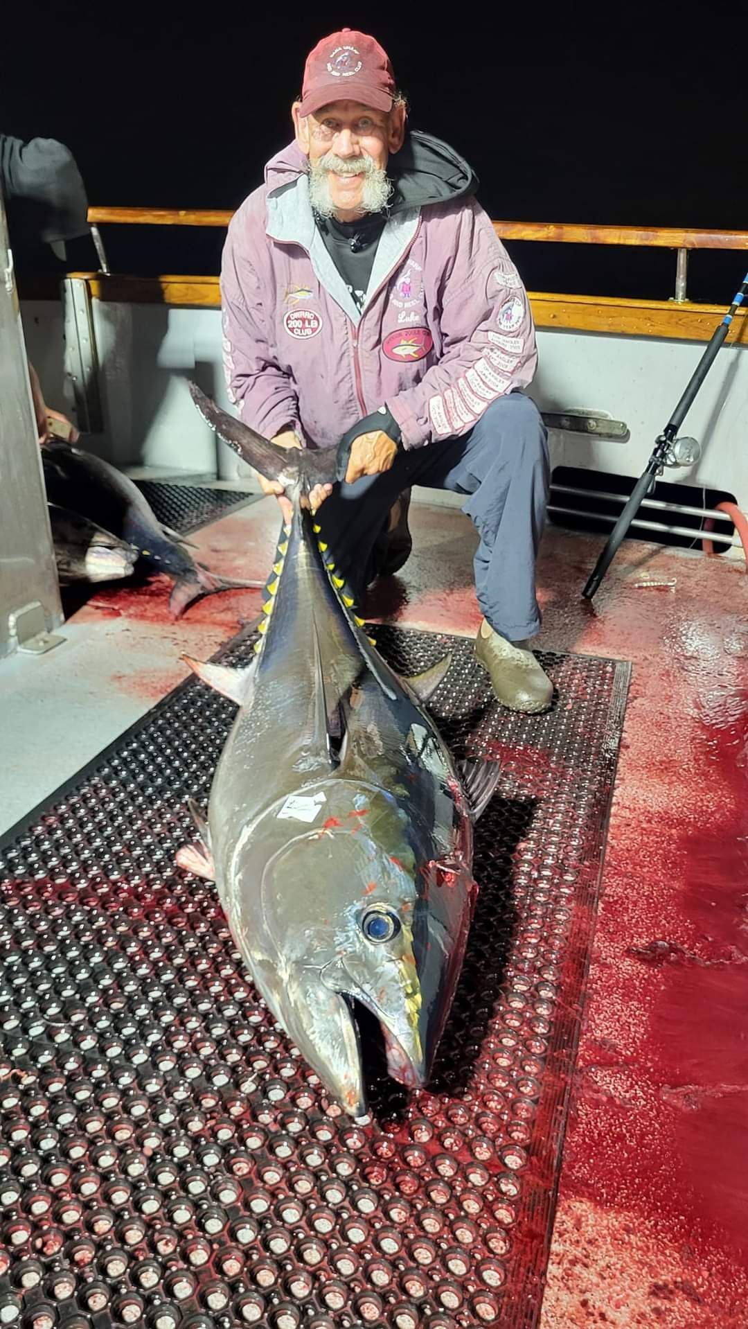 Four brave souls, (sorry I was sound asleep so I can’t congratulate you by name) were the ironmen staying at it until 2AM Saturday morning at the rail until it was time to head back to Tanner for hopes of a decent yellowtail bite. The total bluefin count was thirteen. Although these hearty fellows fished well past midnight all bluefin were caught Friday, meaning the jackpot would be one of the larger evening tunas, to be determined at a later date.