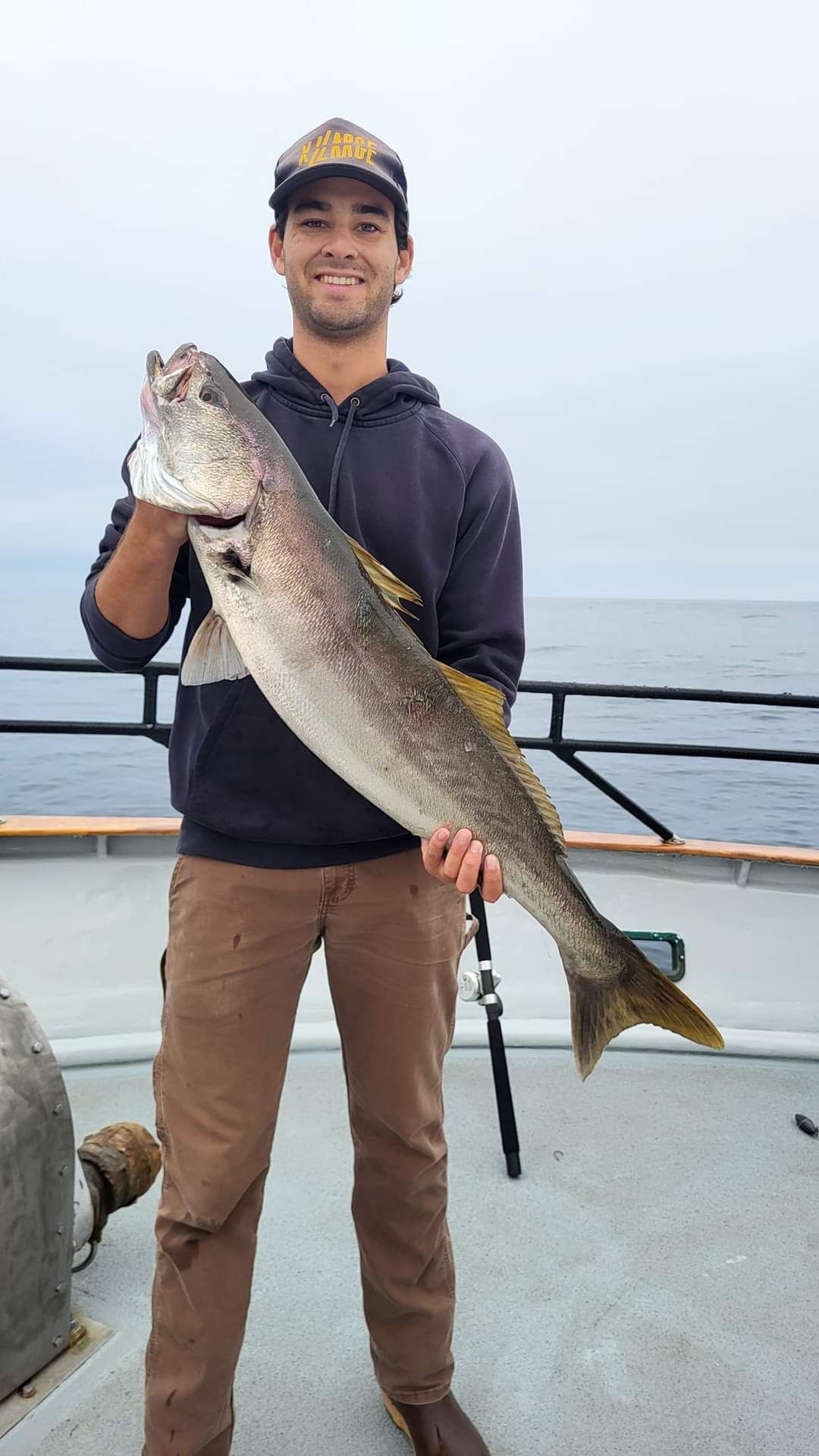 Cayden was the first U16 angler to get under my skin by pulling in a Yellowtail that scaled at 48 pounds on the dropper loop. Very impressive and just reward for getting such an early start in the wee hours of the morning when many of us had sleeping on our minds. Good job Cayden! Gary was the next early morning riser to bring in an impressive catch on the dropper, a white sea bass taped at 33 pounds. Brenden also managed a nice white sea bass. Despite Cayden, and Brenden and Gary’s promising start the rest of the morning was a slow, slow pick. It was made more humbling by watching the Fury fishing next to us catching at a moderate rate with the bait WE GAVE THEM! Oh well, I still think we should have given them the squid we each paid ten bucks for and gotten our money back. Again, just kidding, paying for the squirters was for sure the right plan and it was appreciated that the T-Bird went out of their way to get it. Squid was scarce up until Friday morning. We tried our best, as always with the DWRRC, and come around 6:15 Jeff Markland decided it was time to head out to Tanner Bank.