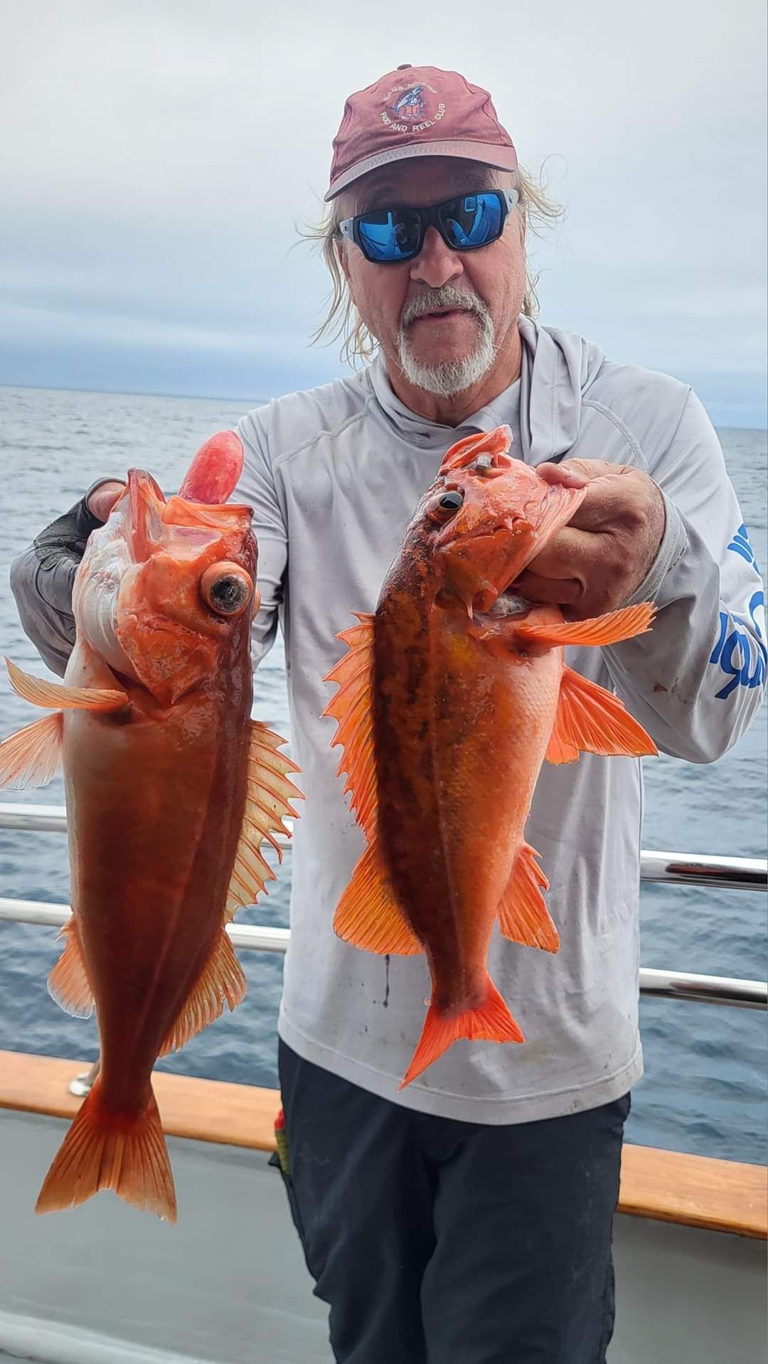 The Tanner didn’t prove to be much better, there was current heading the wrong direction which didn’t help and tons of Sea Lions around as well. There was a Yellowtail caught here and there, but after a while it was time to work on filling freezers, move out to deeper water and fish for rock fish. It reminded me of my first time I fished for rock fish with the club. We all donned paper bags on our heads to hide our identities, the unknown rock codders. I guess we’ve all aged a bit since then and we don’t seem to be so proud about having to scrounge our next meeaaal ( Bob Dylan lyrics a song writer and occasional rapper b.t.w. for Cory and Cayden and maybe a few others).