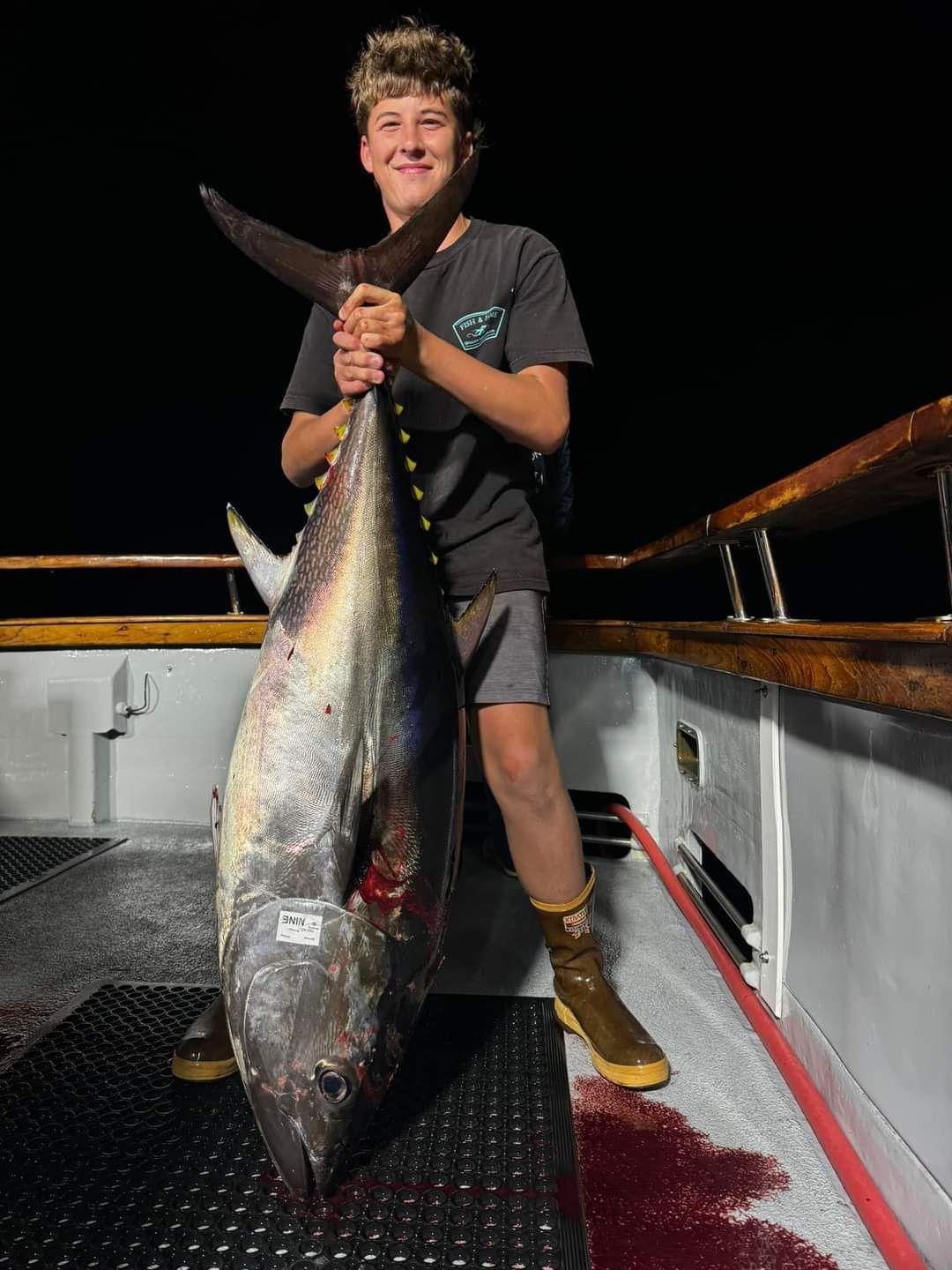 Some of us, including myself, were more than happy to forgo the evening hunt for bluefin, lick our wounds and get to bed in hopes of a better day in the morning. Many others, more ambitious than I, braved the lack of sleep and carried on after dinner once arriving at the Bluefin spot. For those hearty fellows rewards were reaped for most. It began (I am told) with tuna in the 30 lb. range and steadily increased in size, down goes Cayden’s tail, down goes Gary’s WSB (Cory and Cayden and possibly a few others that was a reference to Howard Cosell a sports announcer primarily for boxing and football)( boxing is a sport that was popular before MMA and cage fighting).