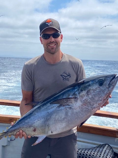 We set off around 8-ish from the dock after the normal orderly boarding procedure. We loaded up with ‘dines at the bait receiver and headed off to the West End of San Clemente Island. With some intel provided to us by both the Fury and the Amigo it was decided that the best strategy was to start out at the west end of Clemente in the morning and then head out to the Tanner late morning. This would put us in a position to fish for bluefin Friday night. The seas were pleasant, unlike our plane ride from Colorado.