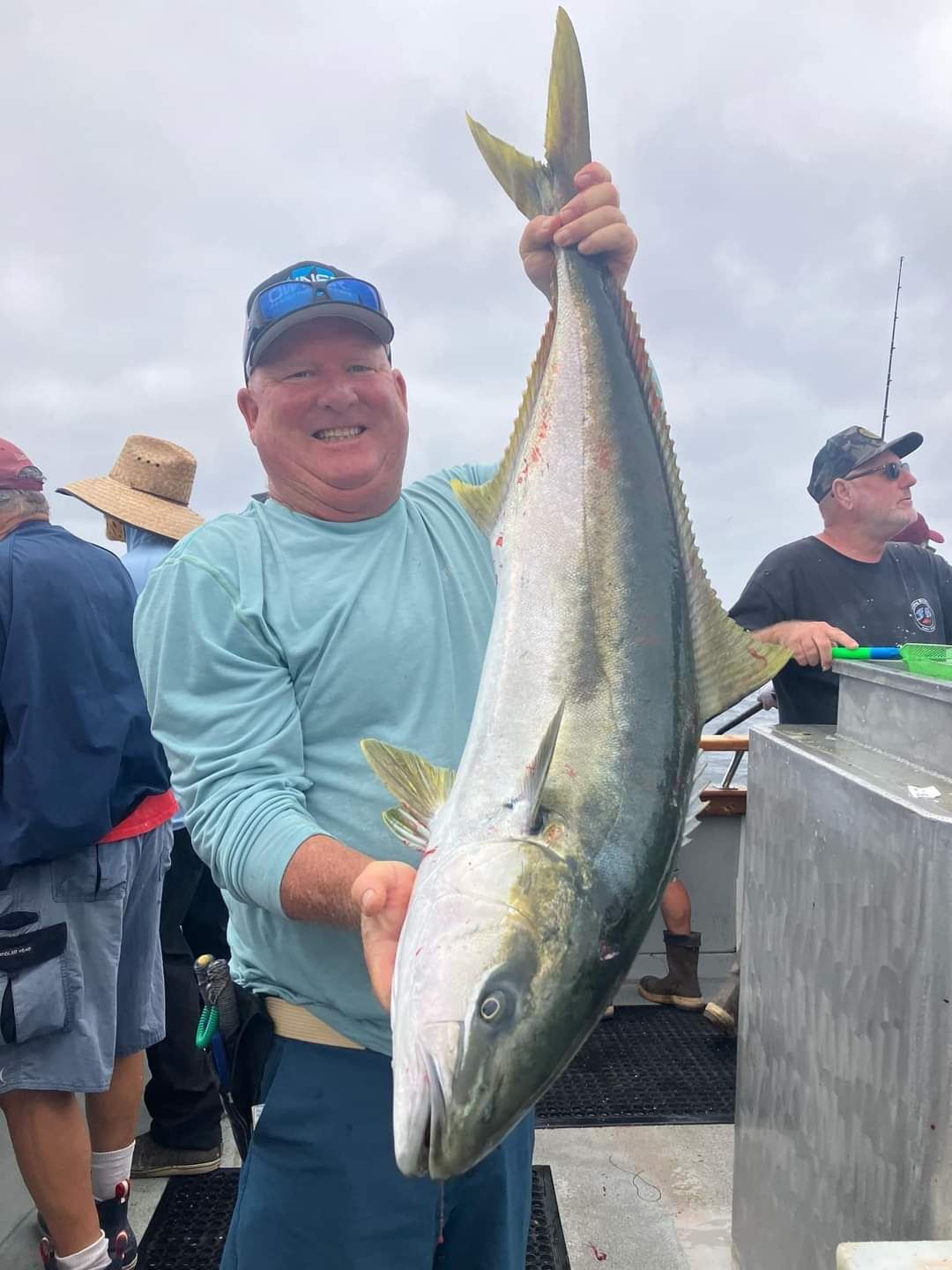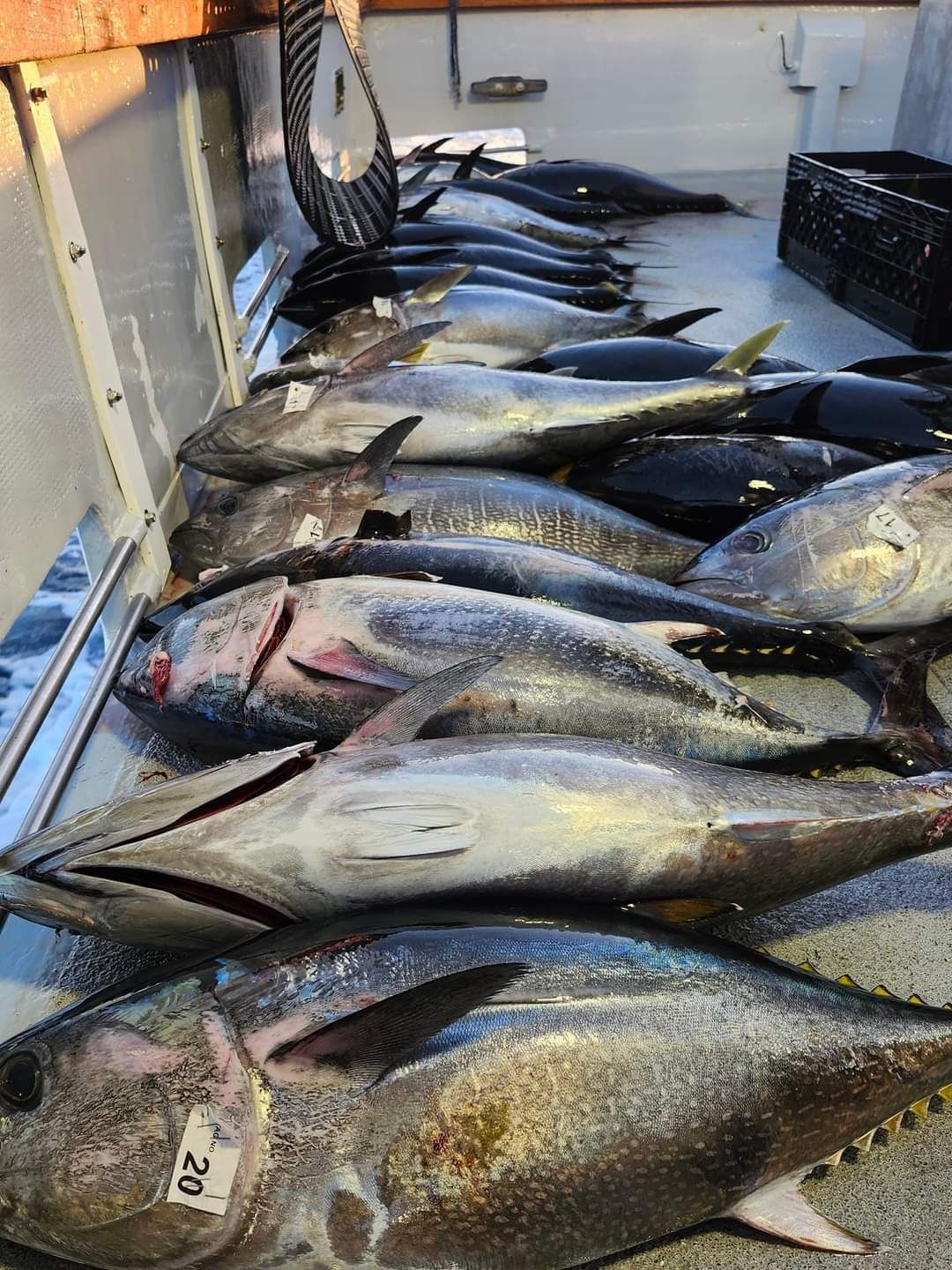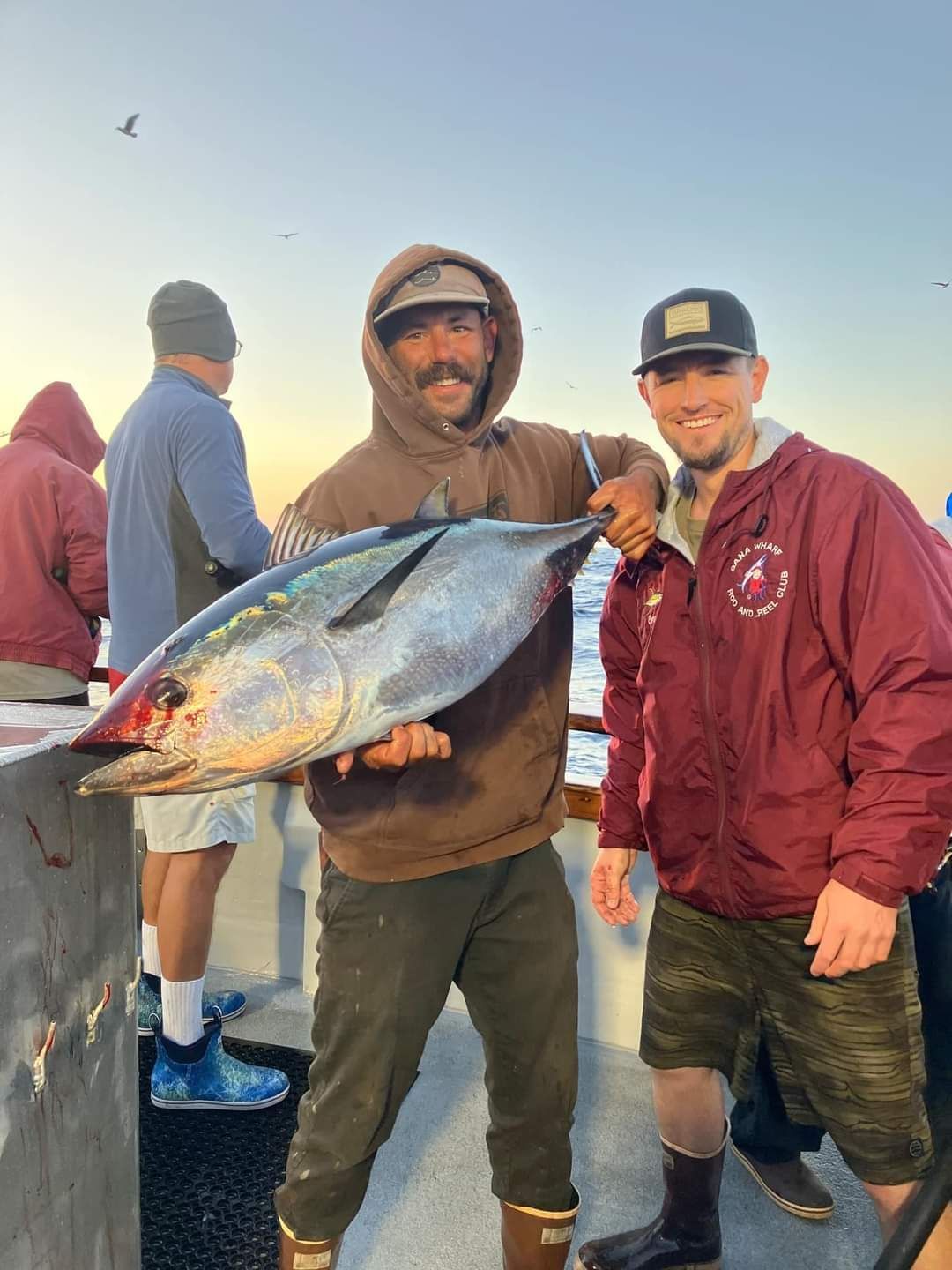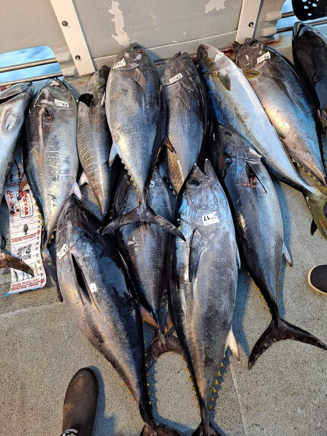 Trip #7: Boat: Thunderbird 2.5 day Departs: Tuesday, September 16th Fishing: September 17th, 18th Returns: September 19th am Thunderbird Crew: Jeff Markland- Captain Steve Raby- 2nd Captain Carmelo in the Galley Jose & Nate on deck The fishing schedule for 2025 has two 2 1/2 day trips and Trip #7 was the second one. Historically the 2 1/2 dayers fill quickly at the Annual Sign-Up Meeting. This was not the case this year as this trip only filled to about half during the Lottery and the rest of the spots were taken by guests. Here are the members who were on the trip: Gary Thompson, Steve Morgan, Mike Barton, Alex Mesko, Mike Higa, Bill Parks, John Lenker, Steve Lenker, Kyle Shimigawa, and Luke Burson (trip scribe). That is 10 members and the other 13 were all guests. The Club owns the following a big thank you for committing guests to this trip because without them this trip would have put a financial burden on the Club of $8,125. And the Club simply does not have those funds so the trip would have been cancelled. A special thank you to Mike Barton with 5 guests, Steve Lenker with 3, Mike Higa with 2, guests, Steve Morgan with 1 guest, Bryan Upcraft with 1 guest, and Luke Burson with 1 guest. And all the guests fit in perfectly and made it a good group to fish, sleep, and eat with for 2 1/2 days. As the trip approached Gary sent out information a week before with information about the trip. At that point the weather looked good and the fish counts were encouraging. As the trip got closer Gary sent out more information with the weather holding plus the Thunderbird getting limits on their weekend 2 1/2 dayer. All were feeling pretty optimistic about two things that had been missing on previous trips……nice weather and good fishing. On the day of departure, the usual members arrived early to ensure that they would board first to secure the tackle spots that are important to them, Others started to drift in throughout the afternoon. All were challenged with parking because of the local Wednesday street sweeping. Some were luckier than others but everyone found a parking spot. And then to our surprise the Thunderbird arrived close to 4 PM and it was obvious why…..very good fishing. To be specific they had back-to-back multi-day trips with limits of BF. And the buzz for all on the dock was pretty strong. They caught the fish at the Cortez, some at night near SCI but most during the day on bait. We asked about the bait and the group did not have good things to say. We quickly put two and two together that the fishing must be pretty good to do that well with poor bait. And another important item……NO STINKING FULL MOON! Jeff indicated we were headed back to Cortez and to save a little time we were going to take the direct course line around the east end of SCI. We’re expecting a flat smooth ride, we quickly learn that our course line had us in the rolley trough. It turned out to be anything but smooth. Our crew for the 2 1/2 trip was Jeff as our Captain, Steve as the 2nd Captain, Carmelo in the galley with Jose and Nat on deck. We have fished with them many times before so we knew we were in good hands for the 2 1/2 days. We stopped to load bait and to our surprise, that bait looked pretty good. The size could have been bigger as it was all medium to small-medium baits but it looked good. That even increased the anticipation of what was to come. As it turned out about 60% turned red while the rest was good bait. For the next two days, you really had to pick through what was in the hand wells to find the good ones. As we rolled into the “Bank” there was a pretty good electrical show to the west from about 3 AM to 5 AM plus some slight rain. And we could see some boats in the distance. We would learn that we would not be alone at Cortez Bank but because of the way the fish were spread out it would not make a difference. Jeff got the anchor down close to the position that they had success on the last trip and it took a little time for the fish to find us……and they did. It was a slow pick for the next 4 or 5 hours. Occasionally we would have 2 for 3 going but most of the time it was one at a time. The conditions were perfect, a strong current in the right direction and some breeze to keep the boat a little crossways to the current. Jeff said the conditions were perfect. As the morning continued there were two ways to get a bite: 1) hot bait close to the boat, or 2) long soak behind the boat. Although detailed records were not kept it seems that the hot baits close to the boat got 4 to 5 times the bites compared to the long soak. This getting bit close to the boat with hot baits was shared with all as it was working great for a few: light line (20#), small hooks (#6 or #8), the best bait in the well, and then give that bait 30 seconds, and if no bite wind in and do it again. And if the bait did not “swim” then cut your losses and wind in to do it again. Some fished that way and were rewarded, others continue to soak their baits. It was a little frustrating that so many were locked into soaking baits when the other method was working so well. It just must be too much work to change baits every 30 seconds and it is easier to soak them behind the boat. The few anglers who changed baits quickly did pretty very well while others did not……that’s fishing. The fish seem to leave us around 2 PM so Jeff decided to go looking in the direction of SCI. By heading back toward SCI we would have a shot at bigger fish at night. We ran all the way back to within 5 miles of SCI and never saw anything on the electronics. When it got dark the effort changed to working the area where the BF had been at night but after about 5 hours of looking without a single mark on the electronics Jeff decided to head back to Cortez to fish the same location we were in that morning. Carmelo prepared an excellent dinner of marinated chicken, basmati rice, and a Greek-style salad. And of course, it was finished 