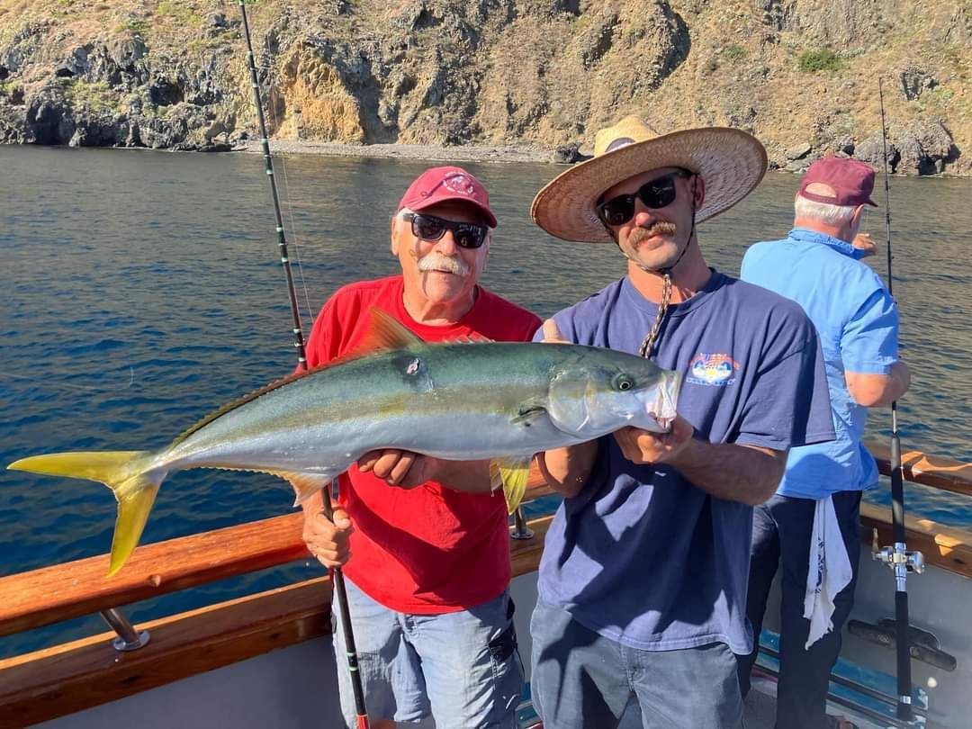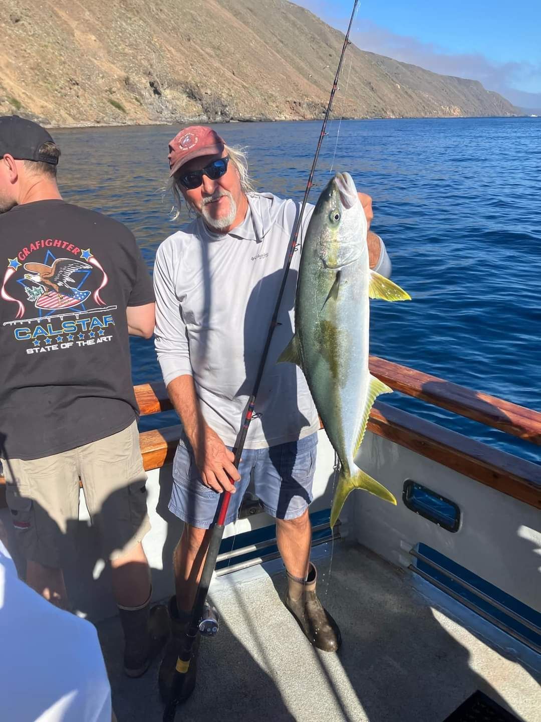 Trip #4: Boat: Thunderbird 2 day Departs: Thursday August 7th Fishing: August 8th, 9th Returns: August 9th pm Trip 4 started as usual with people arriving at Newport Landing at all hours of the day with anticipation of fishing. The preliminary reports from Gary Thompson were all too familiar to what we’ve seen this year. Bait was going to be an issue. And last but not least, was the fish seemed to pop up one day and then disappear the next. Nevertheless, everyone was ready to go. Friday morning saw us anchored at the usual cove off SCI. Weather was OK; fishable, but not a lot of fish. But the ones we caught were quality yellowtail and white sea bass. The sea lions provided ample entertainment …err I mean frustration. We hopped around to a few spots picking up the occasional calico but not much. Day 1 jackpot went to Alex Arthur (Justin Becker’s Guest) with the patch going to Nick Burson for some chunky YT’s Day 2 started much as it did Day 1 but the weather was worse than Day 1. We looked here and there with only 3 yellowtail to show for our efforts. Eventually, the Thunderbird turned towards offshore waters to try our luck at some bluefin. Unfortunately, the fish didn’t get the memo and we saw neither sign or had any bites. Mr, “Hey that’s my fish” Tom Hill was the lucky jackpot and patch winner for Day 2 with a 15# YT. So, there you have it, not a, “Hey you missed a great trip” kind ‘a trip but per usual, the members of our club all seemed to enjoy doing what we do. It’s not always about the fish; it’s about the people and the experience. LOL! Who am I kidding…we all want more fish. Until next time, step to the right/left and take up your slack.