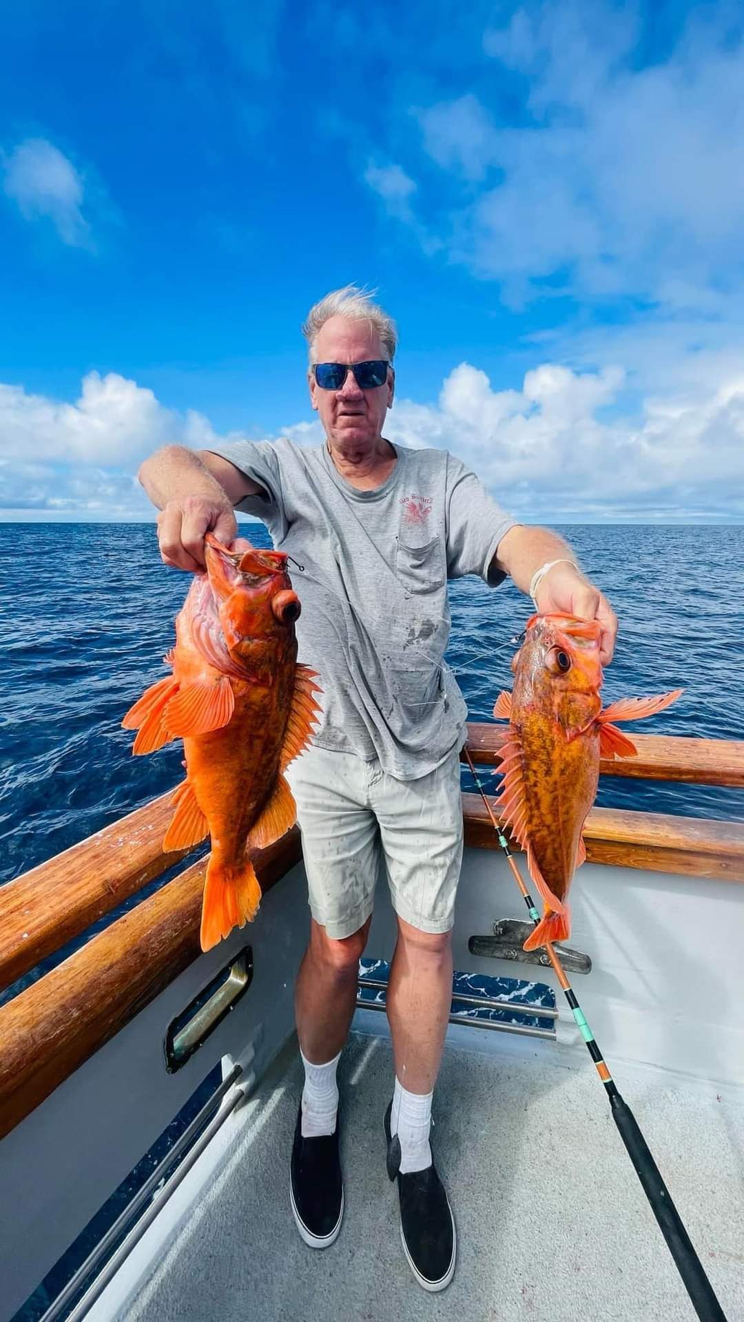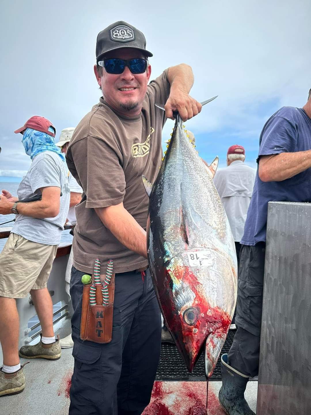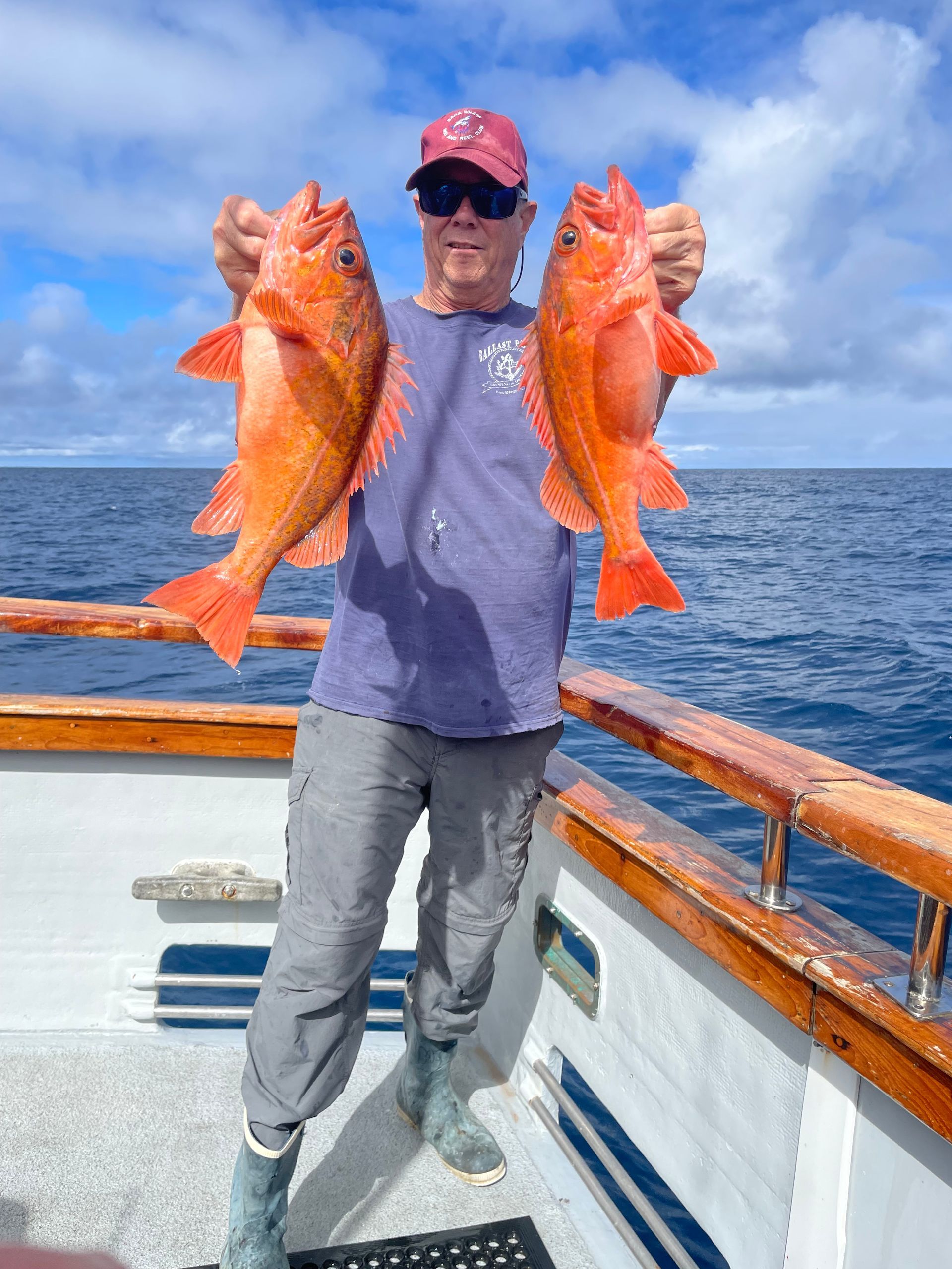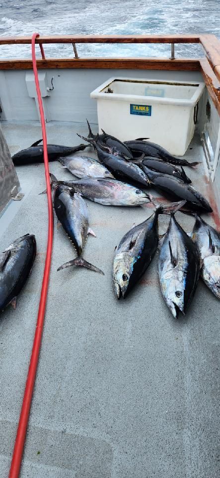 Trip #7: Boat: Thunderbird 2.5 day Departs: Tuesday, September 16th Fishing: September 17th, 18th Returns: September 19th am Thunderbird Crew: Jeff Markland- Captain Steve Raby- 2nd Captain Carmelo in the Galley Jose & Nate on deck The fishing schedule for 2025 has two 2 1/2 day trips and Trip #7 was the second one. Historically the 2 1/2 dayers fill quickly at the Annual Sign-Up Meeting. This was not the case this year as this trip only filled to about half during the Lottery and the rest of the spots were taken by guests. Here are the members who were on the trip: Gary Thompson, Steve Morgan, Mike Barton, Alex Mesko, Mike Higa, Bill Parks, John Lenker, Steve Lenker, Kyle Shimigawa, and Luke Burson (trip scribe). That is 10 members and the other 13 were all guests. The Club owns the following a big thank you for committing guests to this trip because without them this trip would have put a financial burden on the Club of $8,125. And the Club simply does not have those funds so the trip would have been cancelled. A special thank you to Mike Barton with 5 guests, Steve Lenker with 3, Mike Higa with 2, guests, Steve Morgan with 1 guest, Bryan Upcraft with 1 guest, and Luke Burson with 1 guest. And all the guests fit in perfectly and made it a good group to fish, sleep, and eat with for 2 1/2 days. As the trip approached Gary sent out information a week before with information about the trip. At that point the weather looked good and the fish counts were encouraging. As the trip got closer Gary sent out more information with the weather holding plus the Thunderbird getting limits on their weekend 2 1/2 dayer. All were feeling pretty optimistic about two things that had been missing on previous trips……nice weather and good fishing. On the day of departure, the usual members arrived early to ensure that they would board first to secure the tackle spots that are important to them, Others started to drift in throughout the afternoon. All were challenged with parking because of the local Wednesday street sweeping. Some were luckier than others but everyone found a parking spot. And then to our surprise the Thunderbird arrived close to 4 PM and it was obvious why…..very good fishing. To be specific they had back-to-back multi-day trips with limits of BF. And the buzz for all on the dock was pretty strong. They caught the fish at the Cortez, some at night near SCI but most during the day on bait. We asked about the bait and the group did not have good things to say. We quickly put two and two together that the fishing must be pretty good to do that well with poor bait. And another important item……NO STINKING FULL MOON! Jeff indicated we were headed back to Cortez and to save a little time we were going to take the direct course line around the east end of SCI. We’re expecting a flat smooth ride, we quickly learn that our course line had us in the rolley trough. It turned out to be anything but smooth. Our crew for the 2 1/2 trip was Jeff as our Captain, Steve as the 2nd Captain, Carmelo in the galley with Jose and Nat on deck. We have fished with them many times before so we knew we were in good hands for the 2 1/2 days. We stopped to load bait and to our surprise, that bait looked pretty good. The size could have been bigger as it was all medium to small-medium baits but it looked good. That even increased the anticipation of what was to come. As it turned out about 60% turned red while the rest was good bait. For the next two days, you really had to pick through what was in the hand wells to find the good ones. As we rolled into the “Bank” there was a pretty good electrical show to the west from about 3 AM to 5 AM plus some slight rain. And we could see some boats in the distance. We would learn that we would not be alone at Cortez Bank but because of the way the fish were spread out it would not make a difference. Jeff got the anchor down close to the position that they had success on the last trip and it took a little time for the fish to find us……and they did. It was a slow pick for the next 4 or 5 hours. Occasionally we would have 2 for 3 going but most of the time it was one at a time. The conditions were perfect, a strong current in the right direction and some breeze to keep the boat a little crossways to the current. Jeff said the conditions were perfect. As the morning continued there were two ways to get a bite: 1) hot bait close to the boat, or 2) long soak behind the boat. Although detailed records were not kept it seems that the hot baits close to the boat got 4 to 5 times the bites compared to the long soak. This getting bit close to the boat with hot baits was shared with all as it was working great for a few: light line (20#), small hooks (#6 or #8), the best bait in the well, and then give that bait 30 seconds, and if no bite wind in and do it again. And if the bait did not “swim” then cut your losses and wind in to do it again. Some fished that way and were rewarded, others continue to soak their baits. It was a little frustrating that so many were locked into soaking baits when the other method was working so well. It just must be too much work to change baits every 30 seconds and it is easier to soak them behind the boat. The few anglers who changed baits quickly did pretty very well while others did not……that’s fishing. The fish seem to leave us around 2 PM so Jeff decided to go looking in the direction of SCI. By heading back toward SCI we would have a shot at bigger fish at night. We ran all the way back to within 5 miles of SCI and never saw anything on the electronics. When it got dark the effort changed to working the area where the BF had been at night but after about 5 hours of looking without a single mark on the electronics Jeff decided to head back to Cortez to fish the same location we were in that morning. Carmelo prepared an excellent dinner of marinated chicken, basmati rice, and a Greek-style salad. And of course, it was finished 