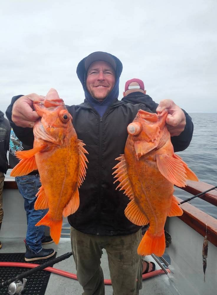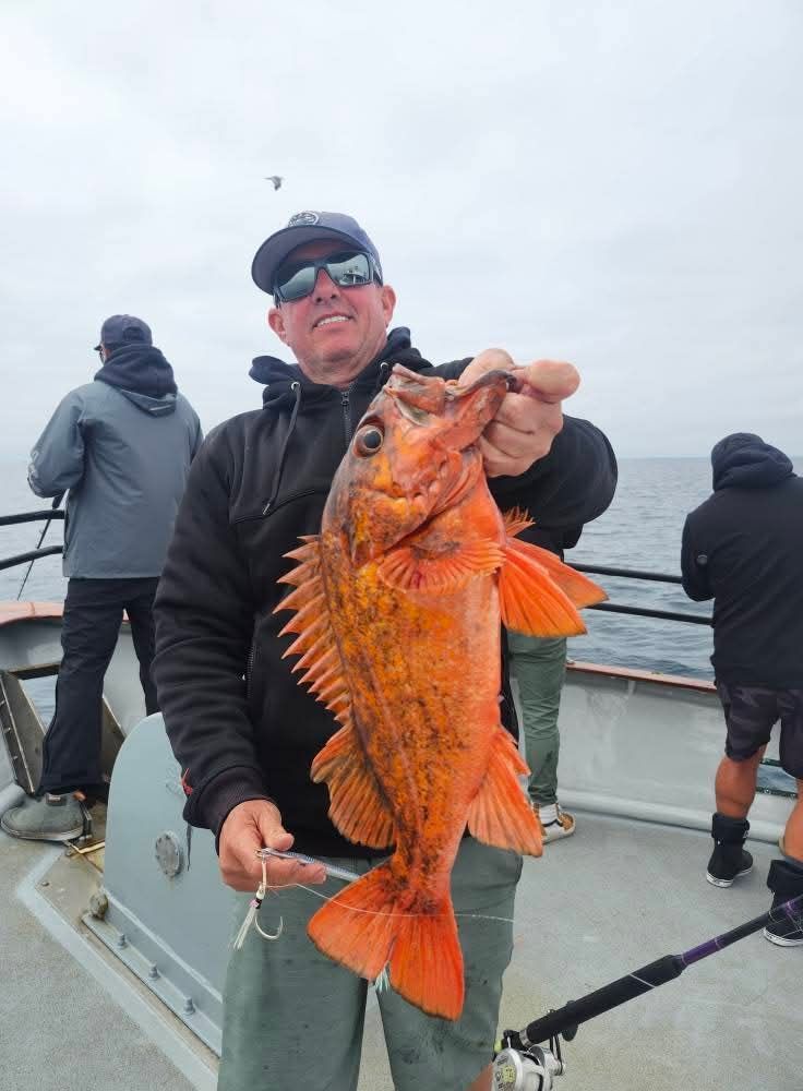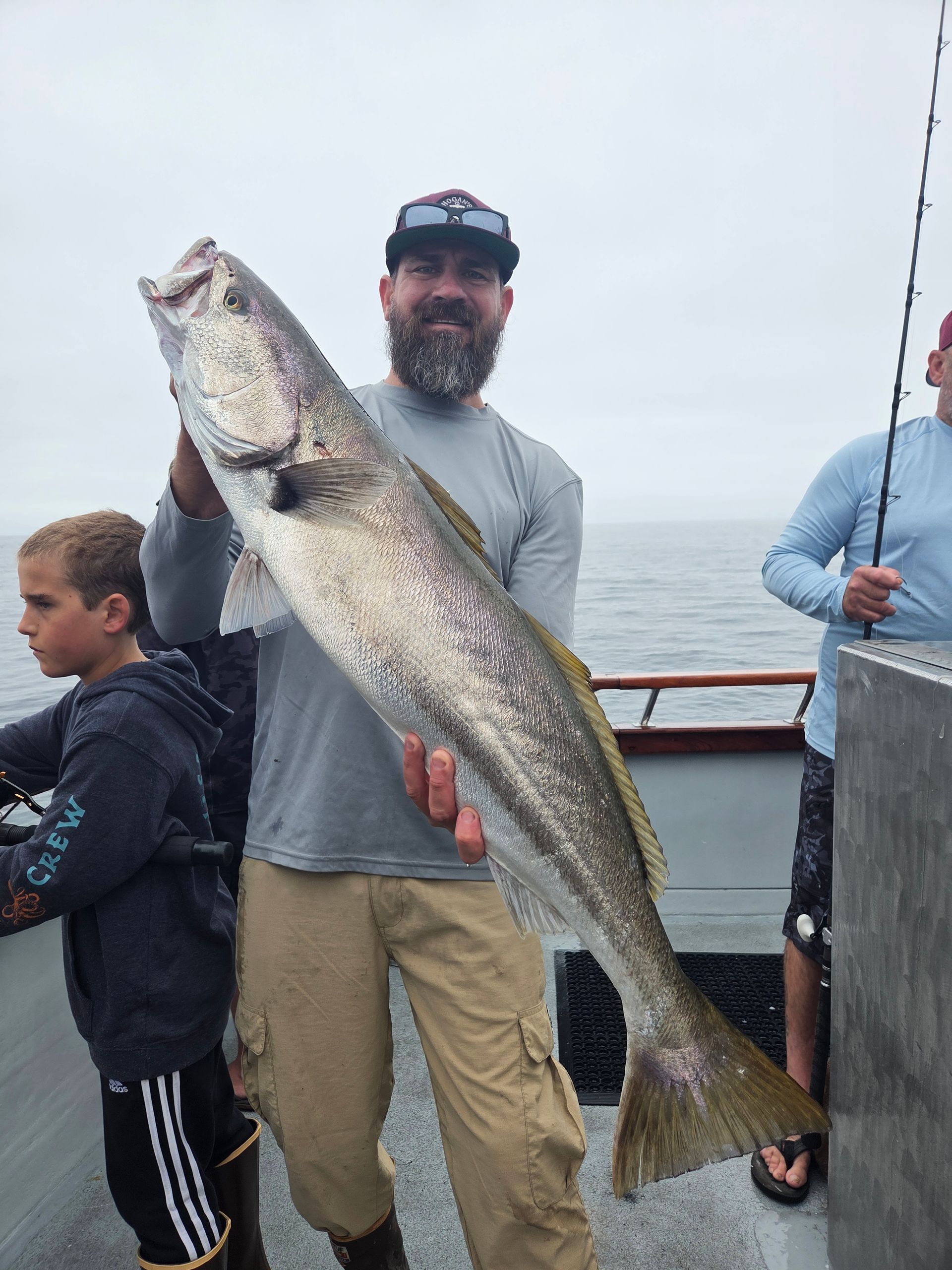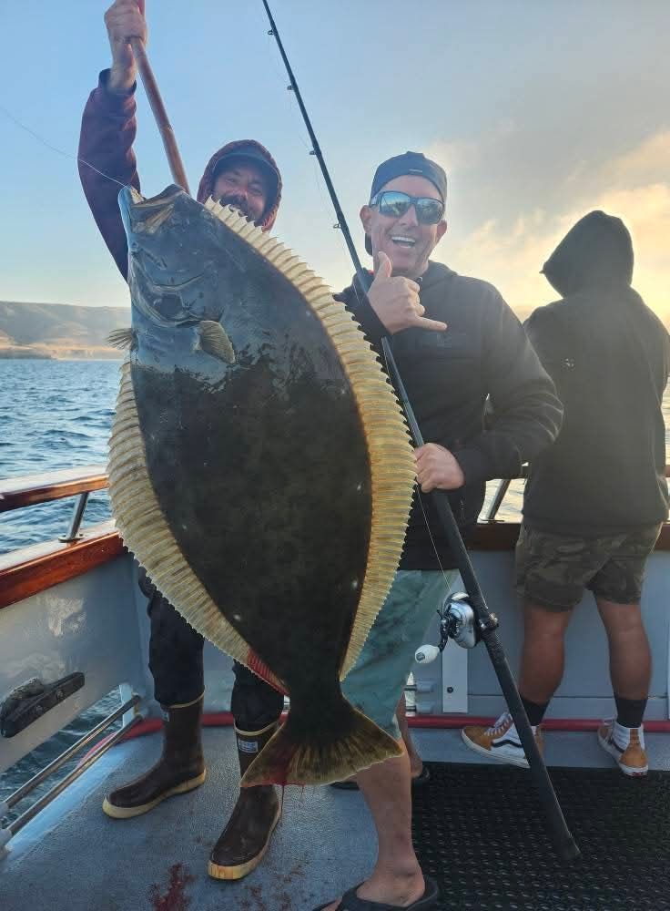 Day 2- Arrived at San Nicholas Island at 3:30am down at the sand spit area to a screaming current. Flylining a dropper loop with 8 oz of weight in 60 feet of water. Basically no WSB to be found trying several areas, but did pick up more halibut. Went south of the island later in the morning and fished the deeps for a good amount of nice reds, other rockfish and one nice ling cod. Left for home around 11:30am since we were 73 miles away. Arrived at the dock at 6:30, and as usual, everyone piled off the boat and went home.