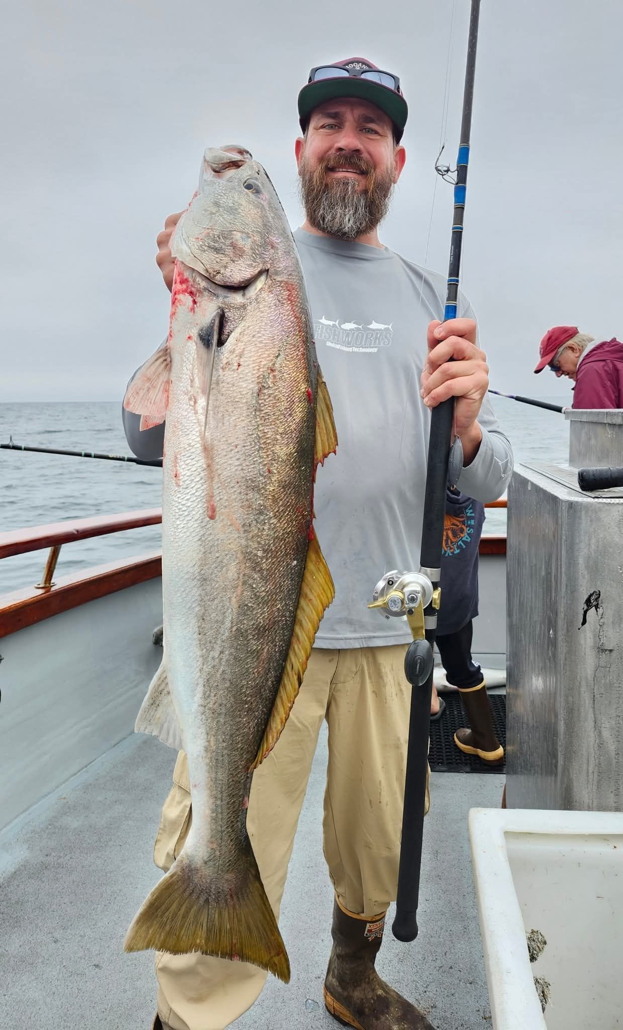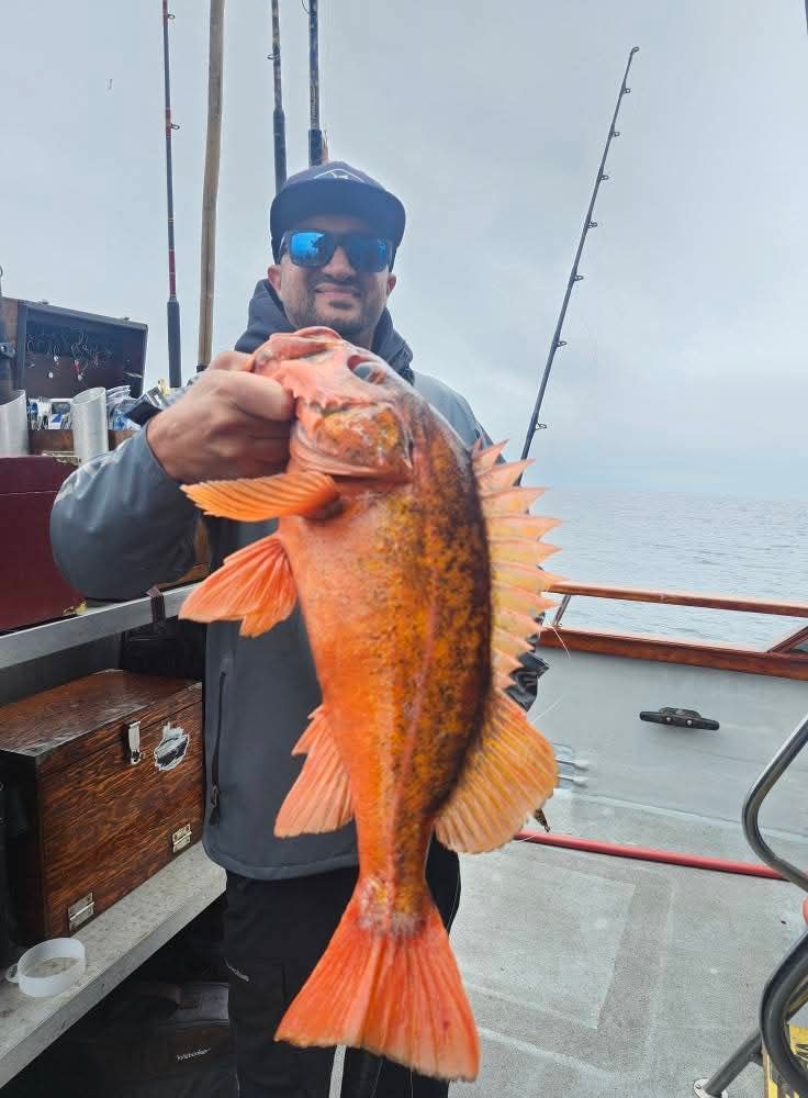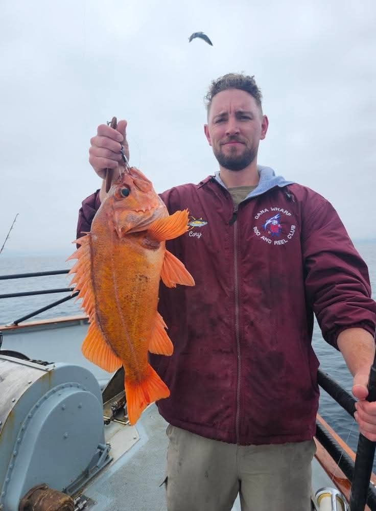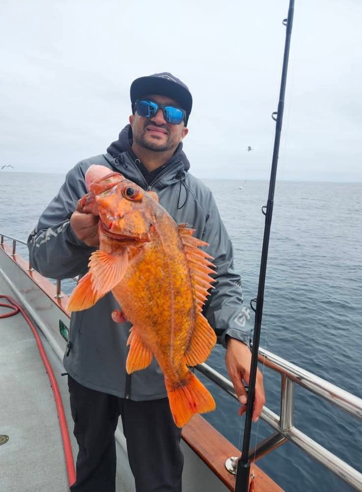 Day 2- Arrived at San Nicholas Island at 3:30am down at the sand spit area to a screaming current. Flylining a dropper loop with 8 oz of weight in 60 feet of water. Basically no WSB to be found trying several areas, but did pick up more halibut. Went south of the island later in the morning and fished the deeps for a good amount of nice reds, other rockfish and one nice ling cod. Left for home around 11:30am since we were 73 miles away. Arrived at the dock at 6:30, and as usual, everyone piled off the boat and went home.