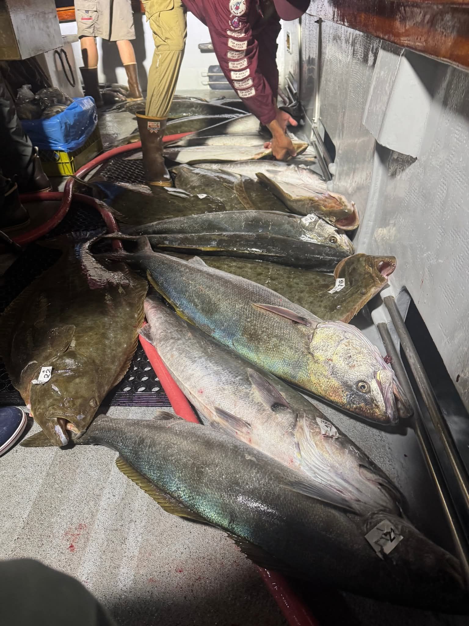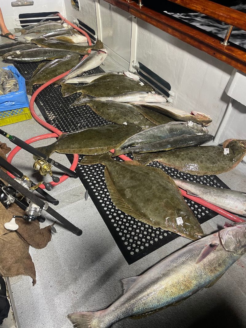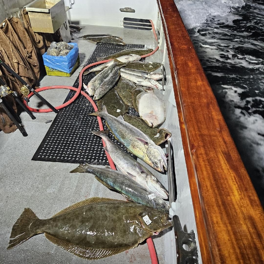 Trip total- 14 WSB, 22 Halibut, 12 Barracuda, 100 plus mixed Reds/Rockfish, 1 Ling Cod