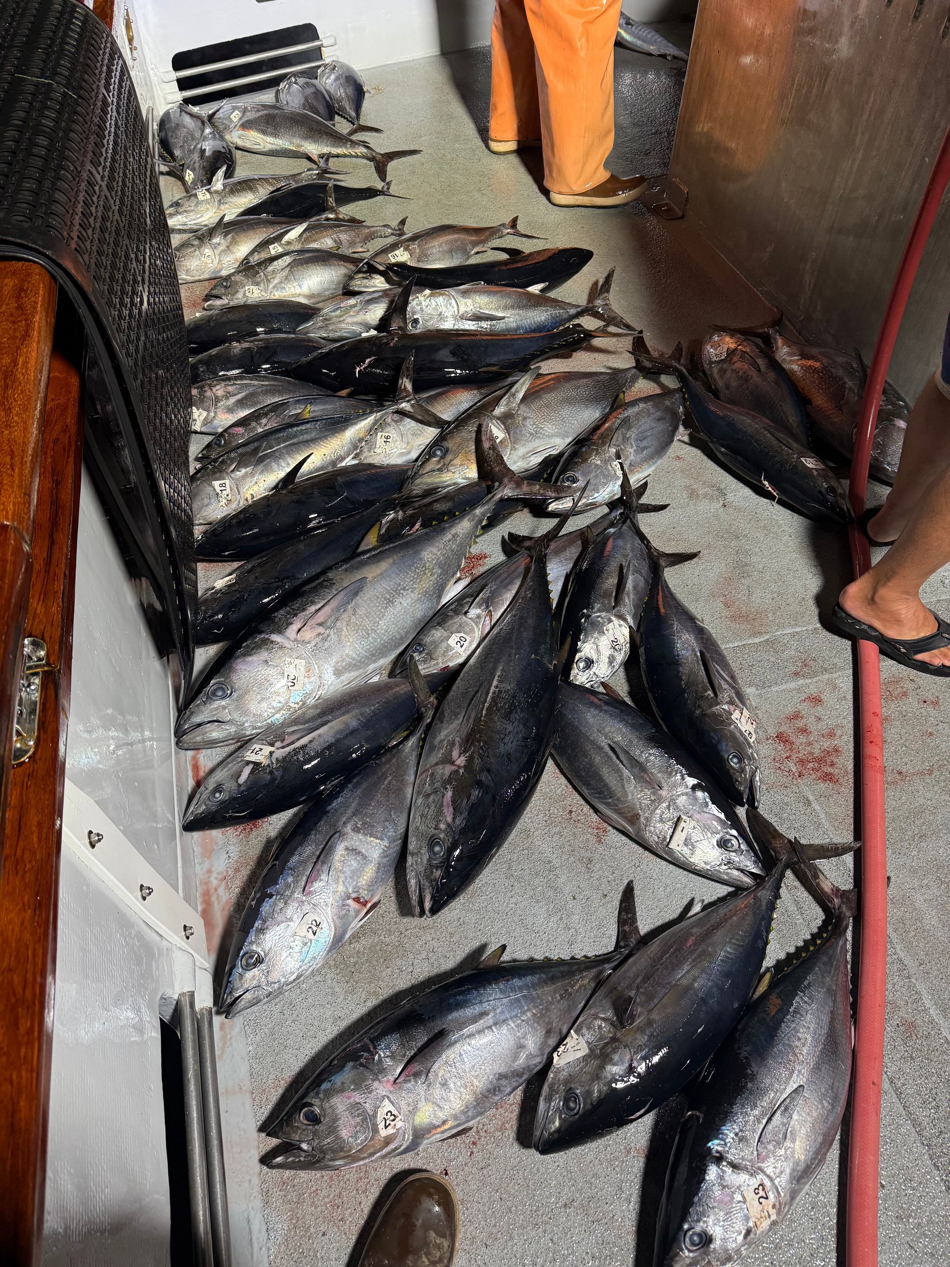The fishing schedule for 2025 has two 2 1/2 day trips and Trip #7 was the second one. Historically the 2 1/2 dayers fill quickly at the Annual Sign-Up Meeting. This was not the case this year as this trip only filled to about half during the Lottery and the rest of the spots were taken by guests. Here are the members who were on the trip: Gary Thompson, Steve Morgan, Mike Barton, Alex Mesko, Mike Higa, Bill Parks, John Lenker, Steve Lenker, Kyle Shimigawa, and Luke Burson (trip scribe). That is 10 members and the other 13 were all guests. The Club owns the following a big thank you for committing guests to this trip because without them this trip would have put a financial burden on the Club of $8,125. And the Club simply does not have those funds so the trip would have been cancelled. A special thank you to Mike Barton with 5 guests, Steve Lenker with 3, Mike Higa with 2, guests, Steve Morgan with 1 guest, Bryan Upcraft with 1 guest, and Luke Burson with 1 guest. And all the guests fit in perfectly and made it a good group to fish, sleep, and eat with for 2 1/2 days.