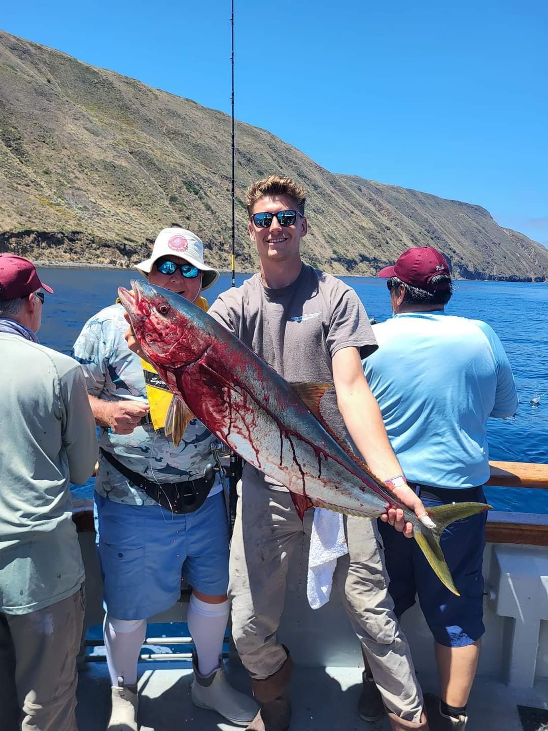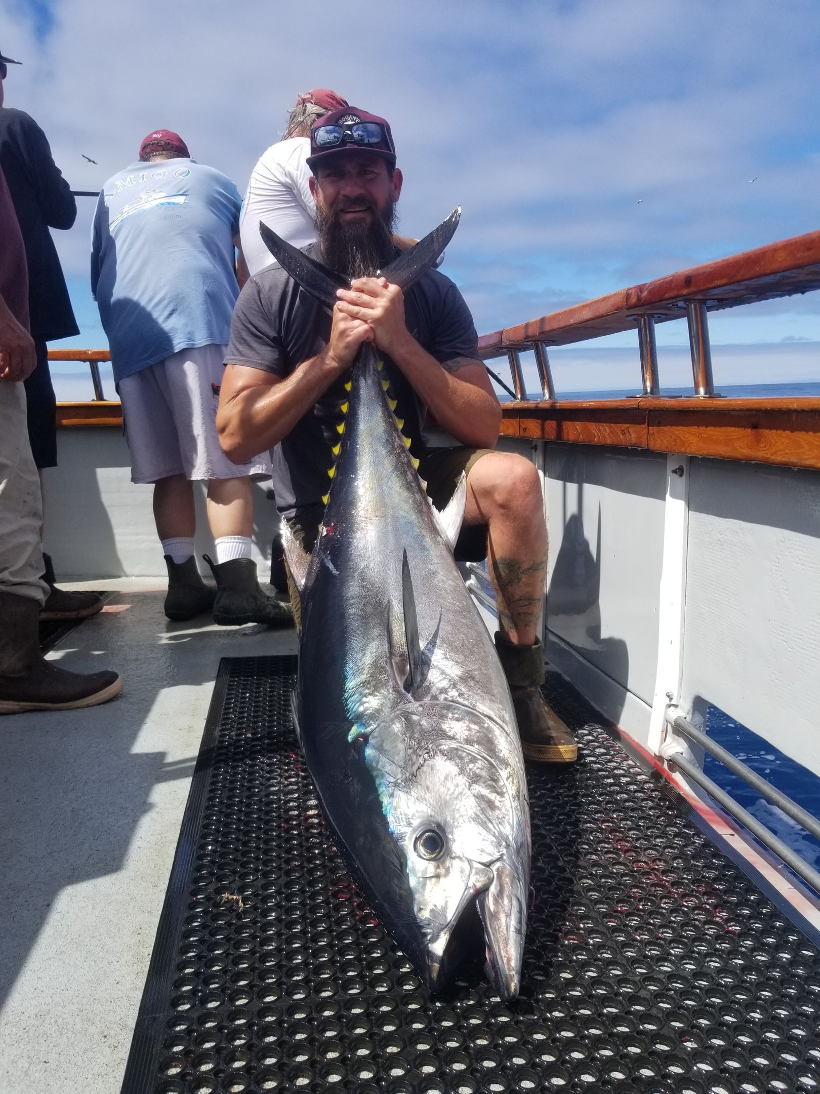 Trip #3: Boat: Thunderbird 2 day Departs: Thursday July 24 Fishing: July 25 and 26 Returns: July 26 pm Trip 3 started as usual with people arriving at Newport Landing at all hours of the day and anticipation for fishing high. The preliminary reports from Gary Thompson were not great. Bait was going to be an issue. Anchovies were sick, too hot for squid, and no sardines. Nevertheless, everyone was ready to go. Due to some late cancellations (bummer), there were 21 passengers on the trip. Gary gave the pre-trip update before boarding with the news that we would make the ride down to Dana Wharf, where there were good sardines for bait. That was the good news. The bad news was that it was going to be a bumpy ride out and wind was going to be an issue, and we probably wouldn’t make it to San Clemente Island. Our initial destination would be Catalina. So, at 9pm off we went. Friday morning saw us anchored at China cove at Catalina. I haven’t been with the club long, but my understanding from some of the older members is that the club hasn’t fished Catalina in many years. I was up at 3:30ish and there were a few hearty souls trying to make squid bait. 2-3 at a time on squid jigs, and eventually we had a decent amount of squid to go along with the sardines. Possibly a good sign. Gradually all the fisherman got lines in the water, with most people dropping down by 5am, waiting for the fish to bite. Well, the yellowtail and white seabass were a no show. We did have a pretty incredible black seabass bite. A total of 6 were hooked, 3 broke off, and 3 were landed (all by Jim Bertella) and released. At 7:30 Captain Chris decided to make the move over to San Clemente Island. We looked for kelp patties and bluefin on the way. Again, fish were a no show (there’s a theme happening here). Made it to Clemente about 11:30. We spent the rest of the day fighting winds at Clemente. Most of the fishing was close to the island with catch and release calico fishing, although a few nice ones were kept. A few small yellowtail were caught on bait, and one on a surface iron. On any other trip these probably would have been released, but beggars can’t be choosers. Final count for day 1 was 9 yellowtail. Gary Thompson won jackpot. We anchored at Clemente for Friday night. Overnight the squid came up and we woke to plenty of squid in the bait tanks. We started fishing early Saturday morning by dropping down for yellowtail. Once again, the fish were a no show. It wasn’t for lack of trying. All the passengers dropped lines and were giving it the best effort. Enthusiasm remained high. A small halibut was caught, along with a few barracuda. At 7:30 we pulled anchor and started looking for bluefin. At 8, a small bluefin was caught on the troll by one of our guests. No other fish were willing to bite and we kept looking. No luck. At mid-morning, Chris set us up for some rockfishing drifts. Most of the fish caught were salmon grouper, but people at least had a shot to fill their bags. After the rockfishing, we were back on the troll. We covered a wide area of ground. I believe at one point we may have entered into Mexican waters. We saw no bluefin during the troll. Finally, we had to start heading back to the landing. As we were heading north, we saw one our first and last kelp patty. It would be our last stop for the trip. On the stop, one yellowtail was caught using a colt sniper. Like the yellowtail on day 1, it wasn’t big (generous to call it 8 pounds), but it was a keeper and the jackpot fish (sad but true). Final count for day 2 was 1 yellowtail, 1 bluefin on the troll, 1 halibut, and a couple of barracuda. Brian Drazba won jackpot. Despite the rough weather and challenging fishing conditions. Captain and crew were great as always. Never gave up. And I believe all club members and guests had a good time. We can’t always have great days and it just gets us ready for the next trip. Submitted respectfully, Brian Drazba