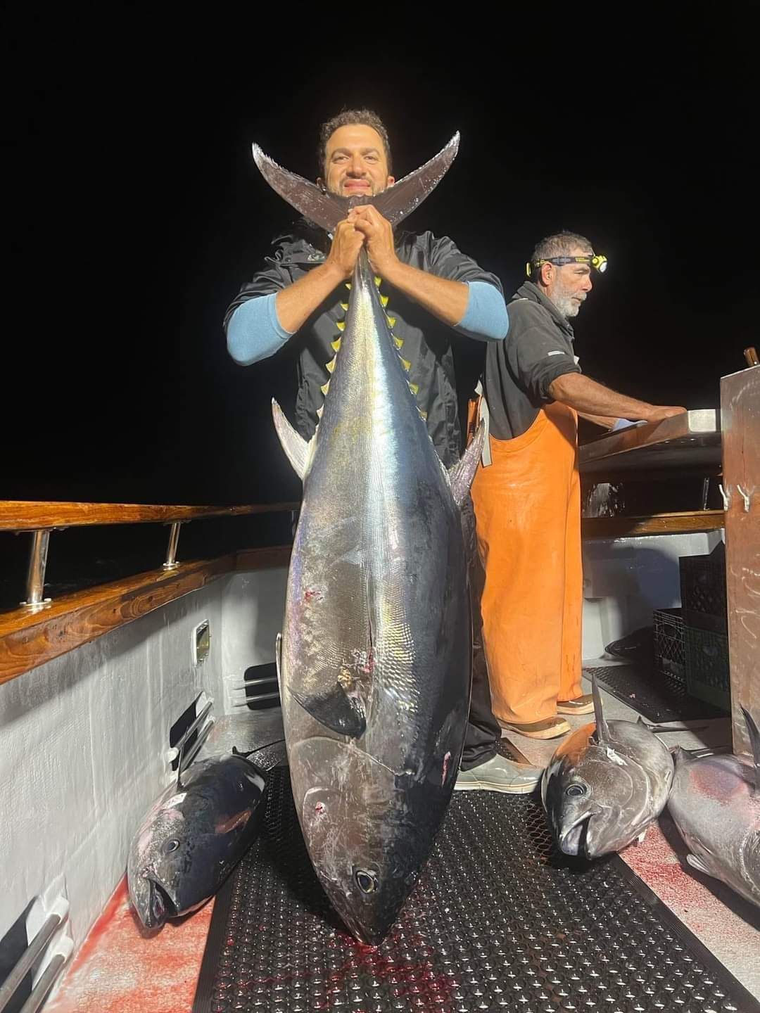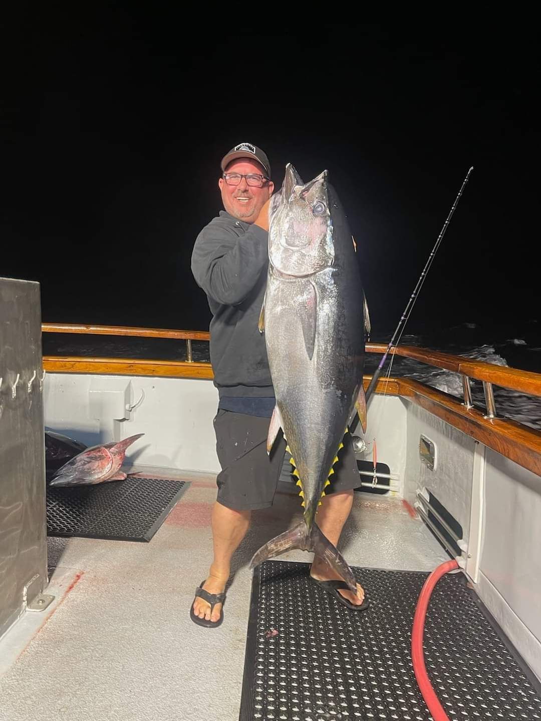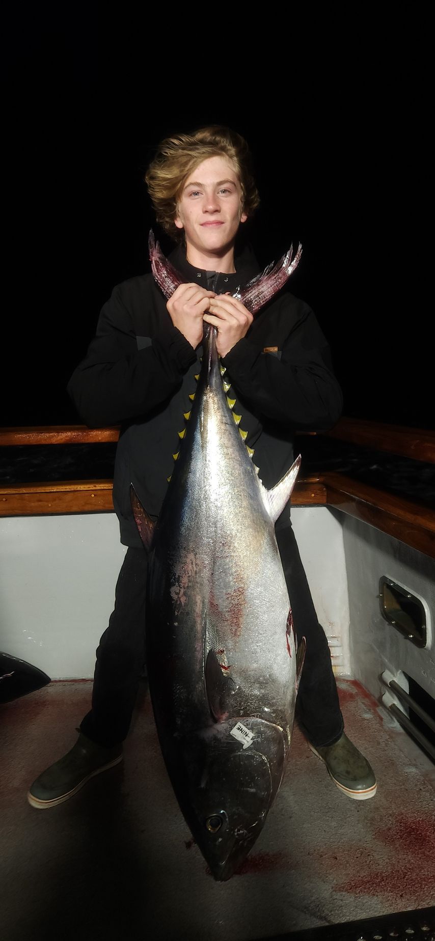 That evening, Captain Chris continued to box the same area we fished throughout the day looking to get the nighttime bite started. Late into the night we were able to hook standout fish. Luke connected with a 90lb class fish brought up on a 7-minute fight.  The night was capped by Junior Angler Kitt Lockwood hooking a 93lb bluefin. Congratulations Kitt! The face of joy on that kid will be ingrained on me. It validated our decision to invite junior anglers on our trips.