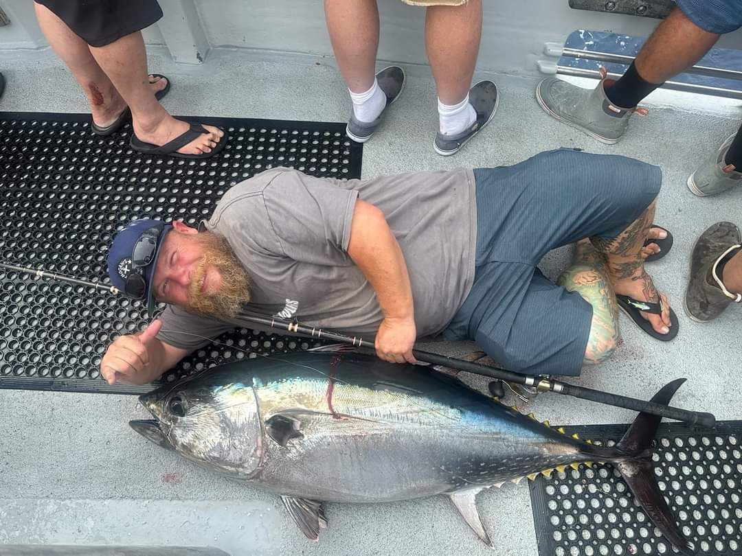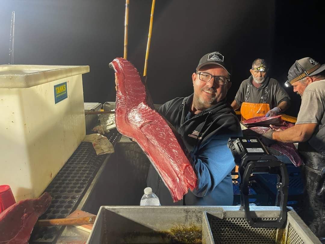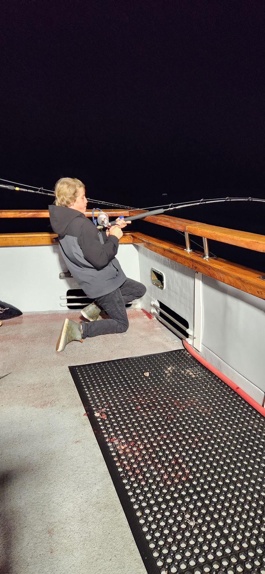That evening, Captain Chris continued to box the same area we fished throughout the day looking to get the nighttime bite started. Late into the night we were able to hook standout fish. Luke connected with a 90lb class fish brought up on a 7-minute fight.  The night was capped by Junior Angler Kitt Lockwood hooking a 93lb bluefin. Congratulations Kitt! The face of joy on that kid will be ingrained on me. It validated our decision to invite junior anglers on our trips.