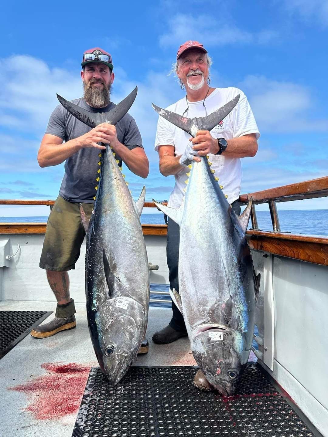 Trip #7: Boat: Thunderbird 2.5 day Departs: Tuesday, September 16th Fishing: September 17th, 18th Returns: September 19th am Thunderbird Crew: Jeff Markland- Captain Steve Raby- 2nd Captain Carmelo in the Galley Jose & Nate on deck The fishing schedule for 2025 has two 2 1/2 day trips and Trip #7 was the second one. Historically the 2 1/2 dayers fill quickly at the Annual Sign-Up Meeting. This was not the case this year as this trip only filled to about half during the Lottery and the rest of the spots were taken by guests. Here are the members who were on the trip: Gary Thompson, Steve Morgan, Mike Barton, Alex Mesko, Mike Higa, Bill Parks, John Lenker, Steve Lenker, Kyle Shimigawa, and Luke Burson (trip scribe). That is 10 members and the other 13 were all guests. The Club owns the following a big thank you for committing guests to this trip because without them this trip would have put a financial burden on the Club of $8,125. And the Club simply does not have those funds so the trip would have been cancelled. A special thank you to Mike Barton with 5 guests, Steve Lenker with 3, Mike Higa with 2, guests, Steve Morgan with 1 guest, Bryan Upcraft with 1 guest, and Luke Burson with 1 guest. And all the guests fit in perfectly and made it a good group to fish, sleep, and eat with for 2 1/2 days. As the trip approached Gary sent out information a week before with information about the trip. At that point the weather looked good and the fish counts were encouraging. As the trip got closer Gary sent out more information with the weather holding plus the Thunderbird getting limits on their weekend 2 1/2 dayer. All were feeling pretty optimistic about two things that had been missing on previous trips……nice weather and good fishing. On the day of departure, the usual members arrived early to ensure that they would board first to secure the tackle spots that are important to them, Others started to drift in throughout the afternoon. All were challenged with parking because of the local Wednesday street sweeping. Some were luckier than others but everyone found a parking spot. And then to our surprise the Thunderbird arrived close to 4 PM and it was obvious why…..very good fishing. To be specific they had back-to-back multi-day trips with limits of BF. And the buzz for all on the dock was pretty strong. They caught the fish at the Cortez, some at night near SCI but most during the day on bait. We asked about the bait and the group did not have good things to say. We quickly put two and two together that the fishing must be pretty good to do that well with poor bait. And another important item……NO STINKING FULL MOON! Jeff indicated we were headed back to Cortez and to save a little time we were going to take the direct course line around the east end of SCI. We’re expecting a flat smooth ride, we quickly learn that our course line had us in the rolley trough. It turned out to be anything but smooth. Our crew for the 2 1/2 trip was Jeff as our Captain, Steve as the 2nd Captain, Carmelo in the galley with Jose and Nat on deck. We have fished with them many times before so we knew we were in good hands for the 2 1/2 days. We stopped to load bait and to our surprise, that bait looked pretty good. The size could have been bigger as it was all medium to small-medium baits but it looked good. That even increased the anticipation of what was to come. As it turned out about 60% turned red while the rest was good bait. For the next two days, you really had to pick through what was in the hand wells to find the good ones. As we rolled into the “Bank” there was a pretty good electrical show to the west from about 3 AM to 5 AM plus some slight rain. And we could see some boats in the distance. We would learn that we would not be alone at Cortez Bank but because of the way the fish were spread out it would not make a difference. Jeff got the anchor down close to the position that they had success on the last trip and it took a little time for the fish to find us……and they did. It was a slow pick for the next 4 or 5 hours. Occasionally we would have 2 for 3 going but most of the time it was one at a time. The conditions were perfect, a strong current in the right direction and some breeze to keep the boat a little crossways to the current. Jeff said the conditions were perfect. As the morning continued there were two ways to get a bite: 1) hot bait close to the boat, or 2) long soak behind the boat. Although detailed records were not kept it seems that the hot baits close to the boat got 4 to 5 times the bites compared to the long soak. This getting bit close to the boat with hot baits was shared with all as it was working great for a few: light line (20#), small hooks (#6 or #8), the best bait in the well, and then give that bait 30 seconds, and if no bite wind in and do it again. And if the bait did not “swim” then cut your losses and wind in to do it again. Some fished that way and were rewarded, others continue to soak their baits. It was a little frustrating that so many were locked into soaking baits when the other method was working so well. It just must be too much work to change baits every 30 seconds and it is easier to soak them behind the boat. The few anglers who changed baits quickly did pretty very well while others did not……that’s fishing. The fish seem to leave us around 2 PM so Jeff decided to go looking in the direction of SCI. By heading back toward SCI we would have a shot at bigger fish at night. We ran all the way back to within 5 miles of SCI and never saw anything on the electronics. When it got dark the effort changed to working the area where the BF had been at night but after about 5 hours of looking without a single mark on the electronics Jeff decided to head back to Cortez to fish the same location we were in that morning. Carmelo prepared an excellent dinner of marinated chicken, basmati rice, and a Greek-style salad. And of course, it was finished 