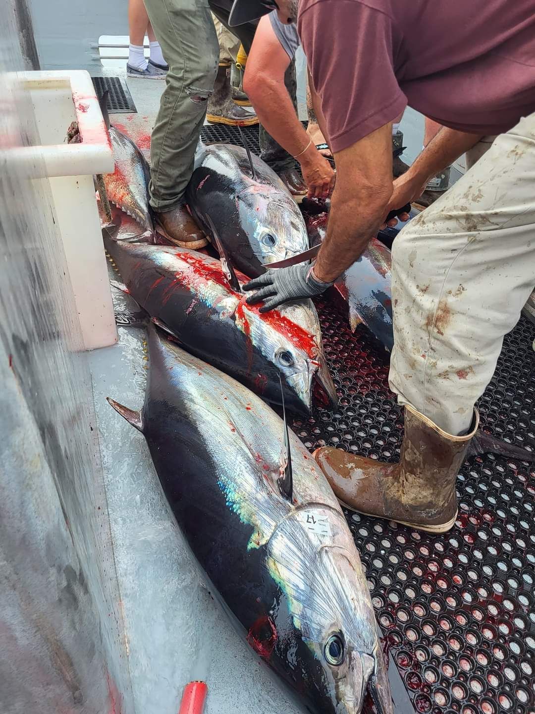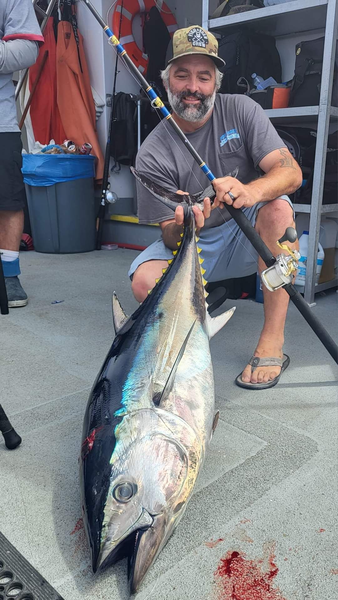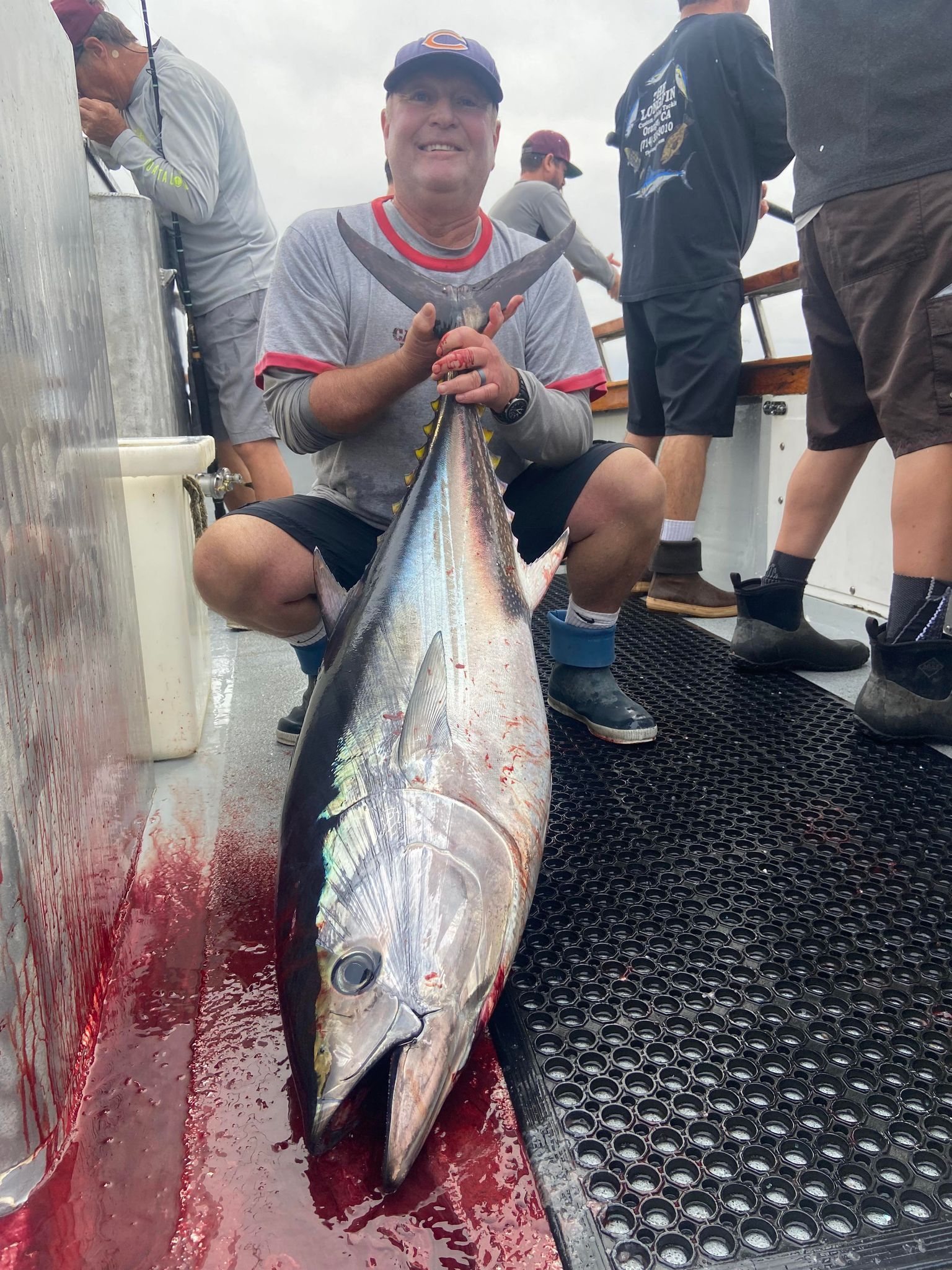 We ended the day with 13 nice grade bluefin and 2 yellowfin. Jackpot honors went to Jim Bertella on a 110lb bluefin caught that morning. The man is simply a terminator...
