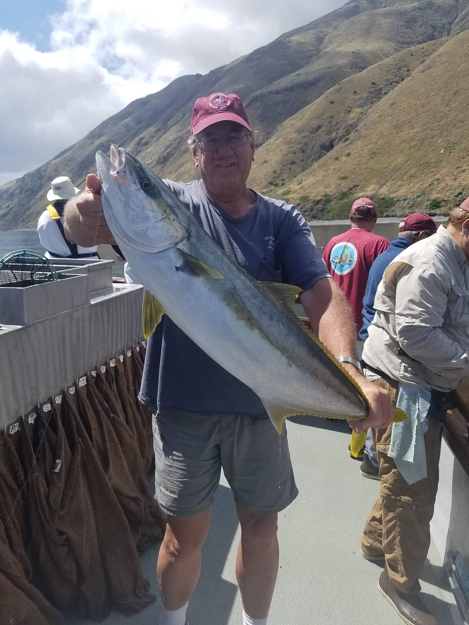 Trip #4: Boat: Thunderbird 2 day Departs: Thursday August 7th Fishing: August 8th, 9th Returns: August 9th pm Trip 4 started as usual with people arriving at Newport Landing at all hours of the day with anticipation of fishing. The preliminary reports from Gary Thompson were all too familiar to what we’ve seen this year. Bait was going to be an issue. And last but not least, was the fish seemed to pop up one day and then disappear the next. Nevertheless, everyone was ready to go. Friday morning saw us anchored at the usual cove off SCI. Weather was OK; fishable, but not a lot of fish. But the ones we caught were quality yellowtail and white sea bass. The sea lions provided ample entertainment …err I mean frustration. We hopped around to a few spots picking up the occasional calico but not much. Day 1 jackpot went to Alex Arthur (Justin Becker’s Guest) with the patch going to Nick Burson for some chunky YT’s Day 2 started much as it did Day 1 but the weather was worse than Day 1. We looked here and there with only 3 yellowtail to show for our efforts. Eventually, the Thunderbird turned towards offshore waters to try our luck at some bluefin. Unfortunately, the fish didn’t get the memo and we saw neither sign or had any bites. Mr, “Hey that’s my fish” Tom Hill was the lucky jackpot and patch winner for Day 2 with a 15# YT. So, there you have it, not a, “Hey you missed a great trip” kind ‘a trip but per usual, the members of our club all seemed to enjoy doing what we do. It’s not always about the fish; it’s about the people and the experience. LOL! Who am I kidding…we all want more fish. Until next time, step to the right/left and take up your slack.