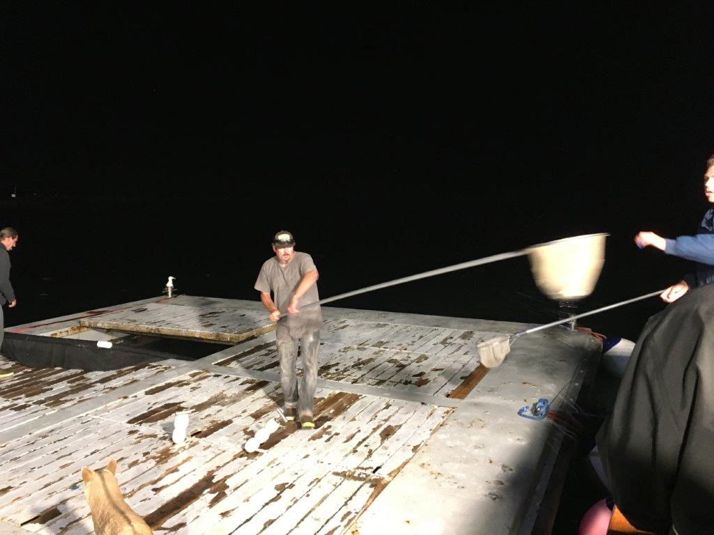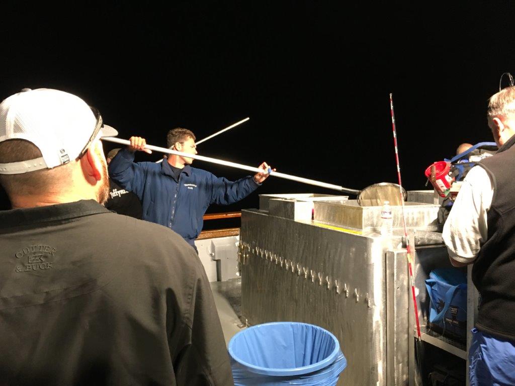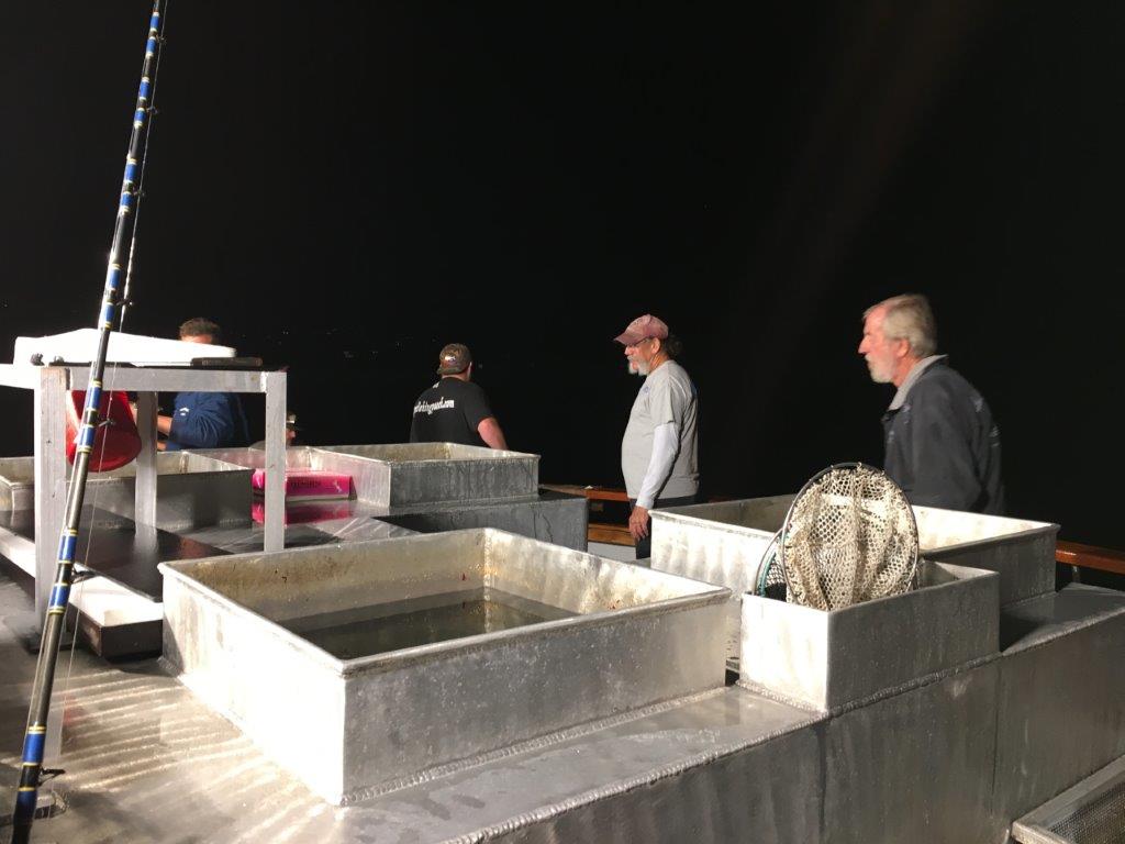 The crew very gently loaded bait. The bait tanks are huge, lots of bait, even for the baitburners. (We need handwell nets)