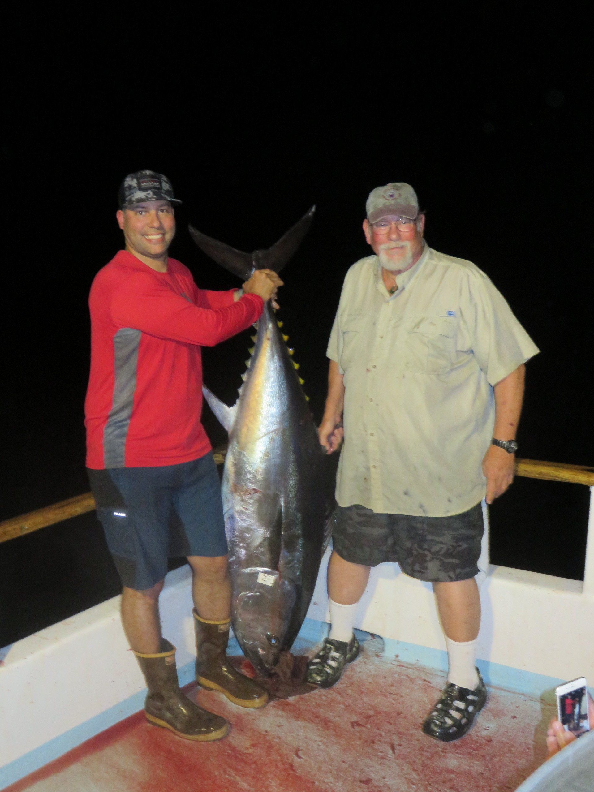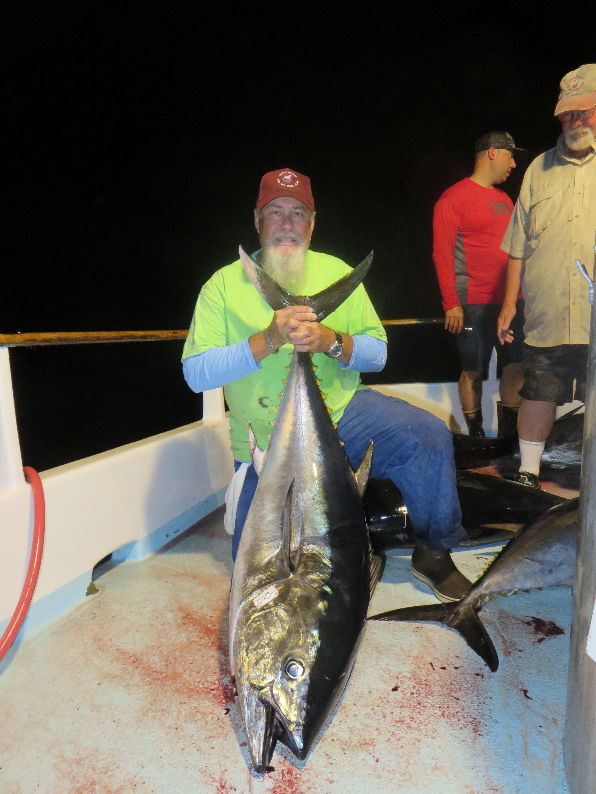 between 4 anglers. Roy’s fish finally comes aboard and it’s a beautiful 170lb bluefin. They say