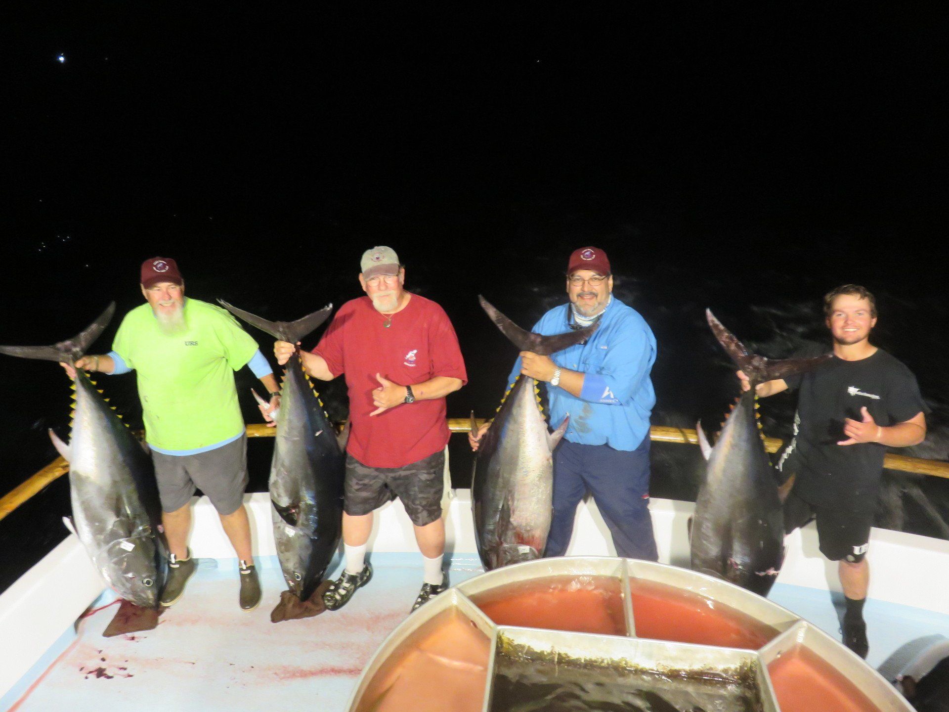 going to drift on the schools of tuna throw bait and drop flat falls into the dark in hopes that we