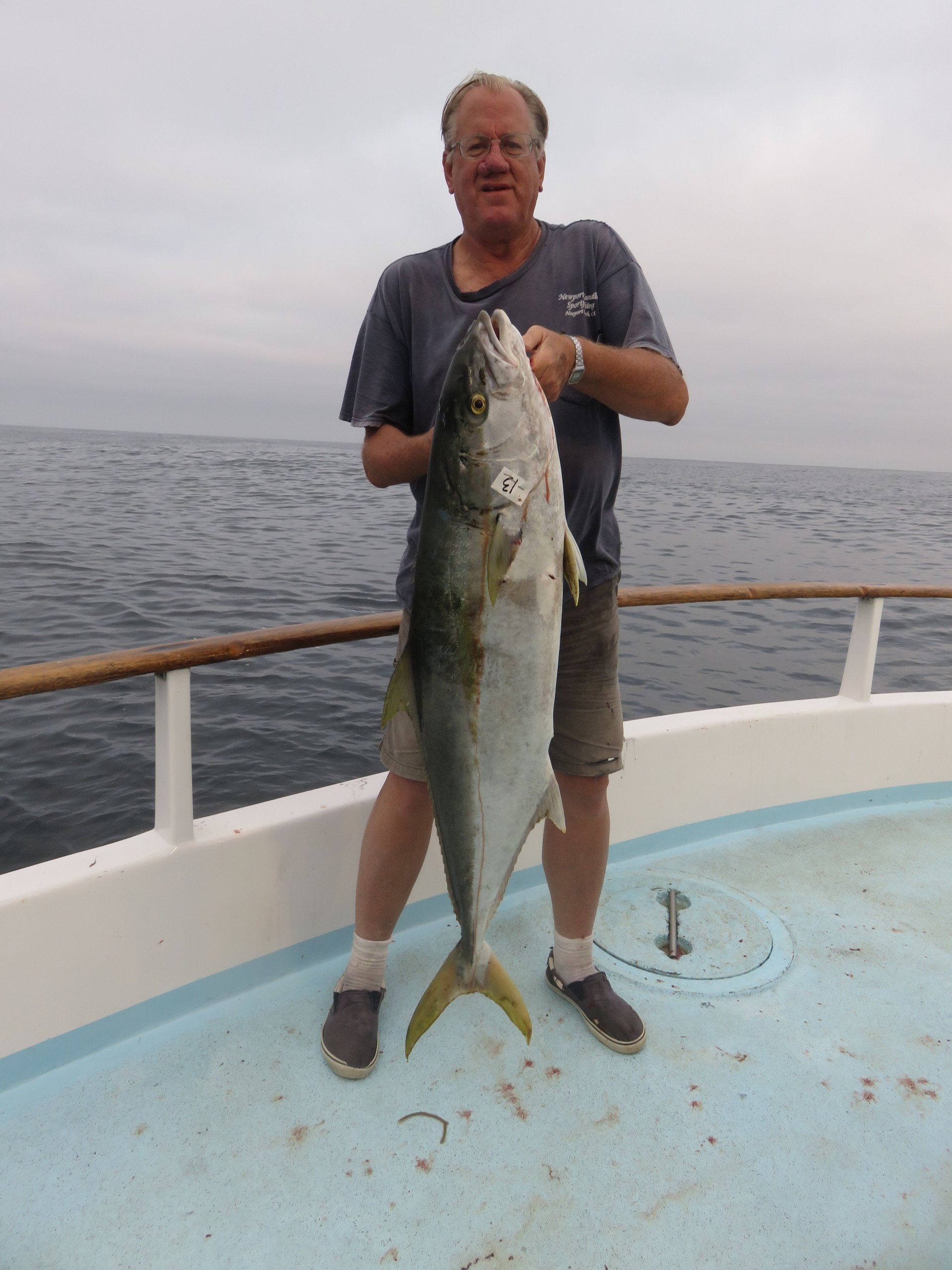 Trip #4: Boat: Thunderbird 2 day Departs: Thursday August 7th Fishing: August 8th, 9th Returns: August 9th pm Trip 4 started as usual with people arriving at Newport Landing at all hours of the day with anticipation of fishing. The preliminary reports from Gary Thompson were all too familiar to what we’ve seen this year. Bait was going to be an issue. And last but not least, was the fish seemed to pop up one day and then disappear the next. Nevertheless, everyone was ready to go. Friday morning saw us anchored at the usual cove off SCI. Weather was OK; fishable, but not a lot of fish. But the ones we caught were quality yellowtail and white sea bass. The sea lions provided ample entertainment …err I mean frustration. We hopped around to a few spots picking up the occasional calico but not much. Day 1 jackpot went to Alex Arthur (Justin Becker’s Guest) with the patch going to Nick Burson for some chunky YT’s Day 2 started much as it did Day 1 but the weather was worse than Day 1. We looked here and there with only 3 yellowtail to show for our efforts. Eventually, the Thunderbird turned towards offshore waters to try our luck at some bluefin. Unfortunately, the fish didn’t get the memo and we saw neither sign or had any bites. Mr, “Hey that’s my fish” Tom Hill was the lucky jackpot and patch winner for Day 2 with a 15# YT. So, there you have it, not a, “Hey you missed a great trip” kind ‘a trip but per usual, the members of our club all seemed to enjoy doing what we do. It’s not always about the fish; it’s about the people and the experience. LOL! Who am I kidding…we all want more fish. Until next time, step to the right/left and take up your slack.