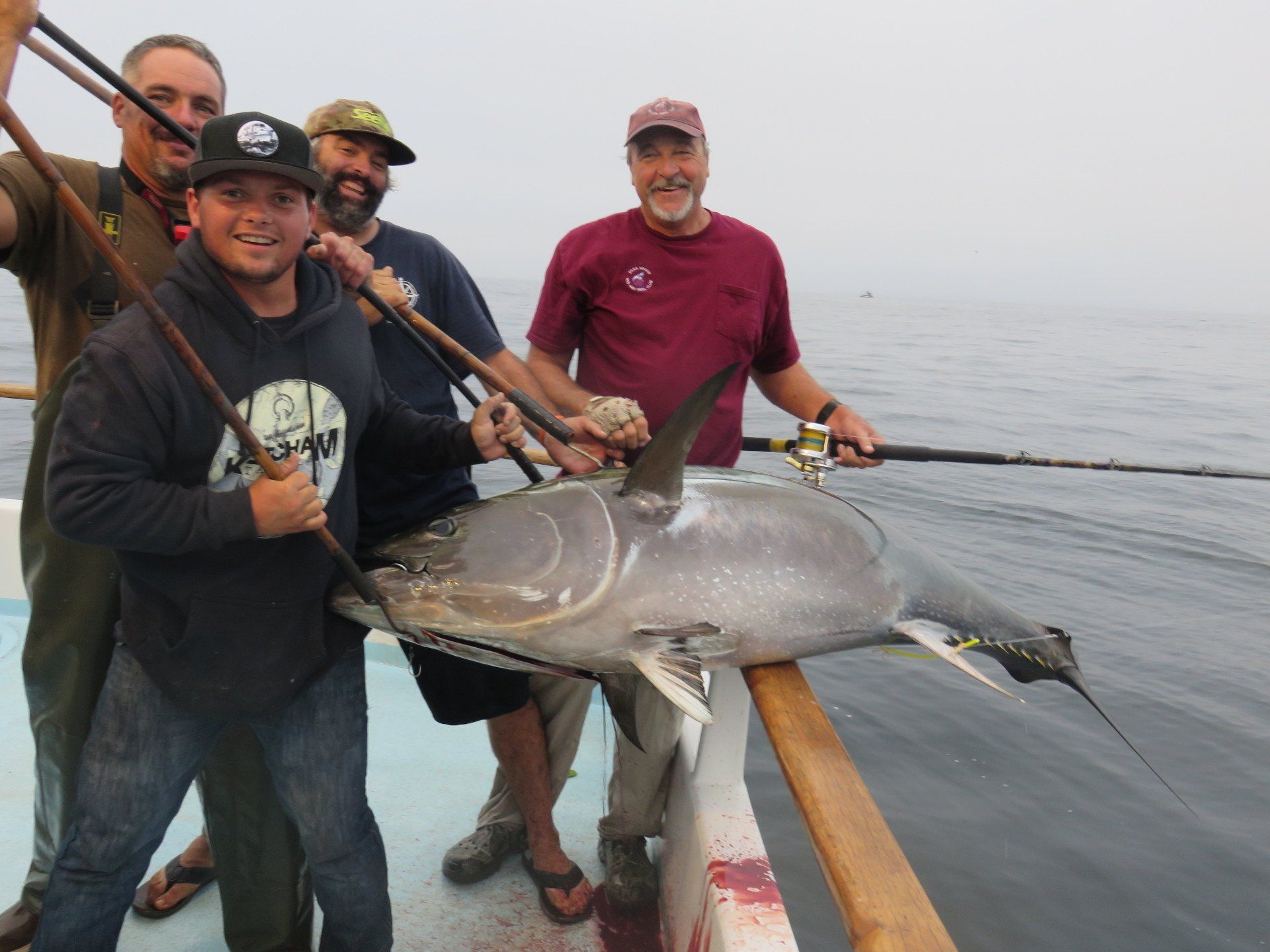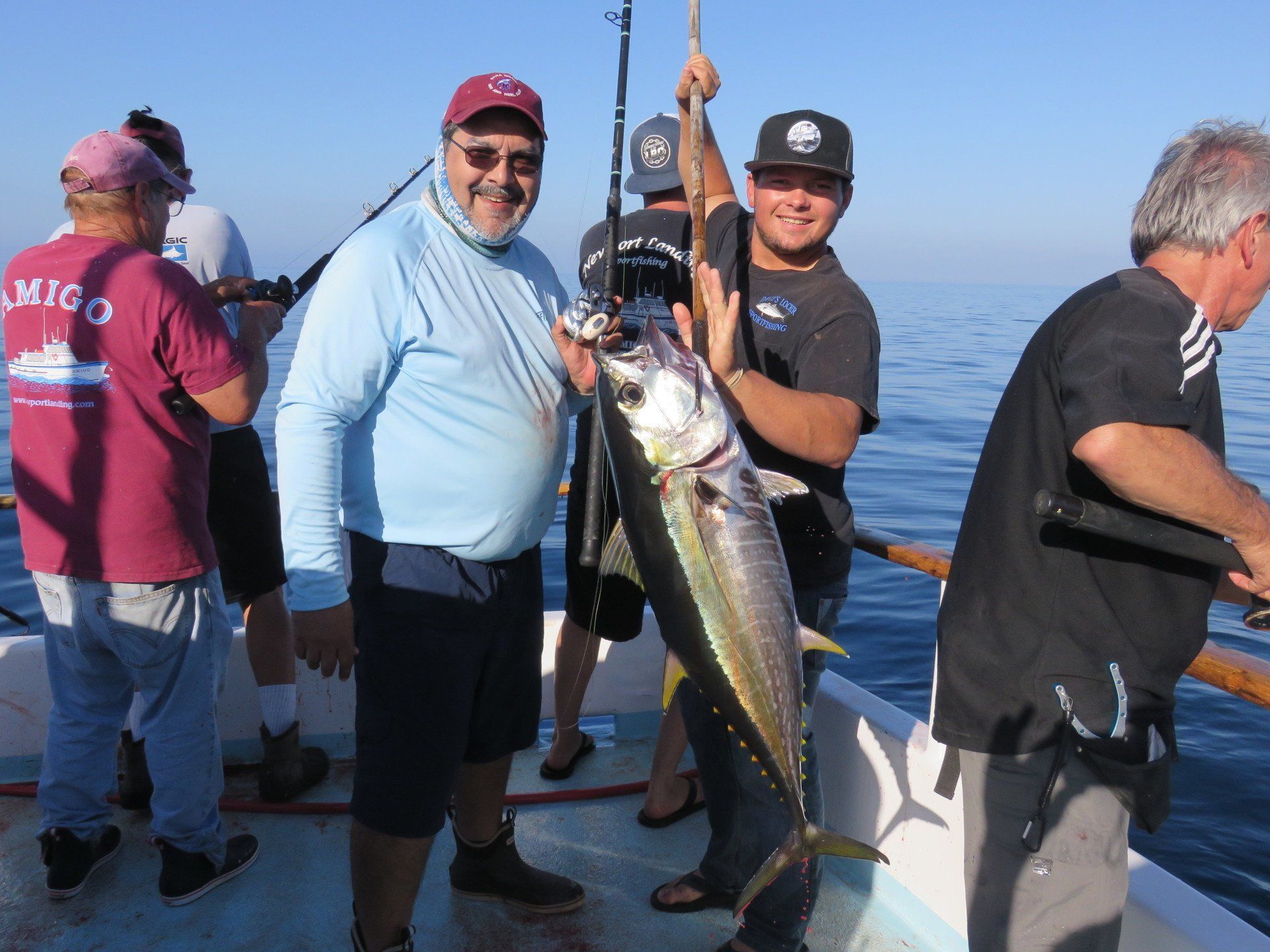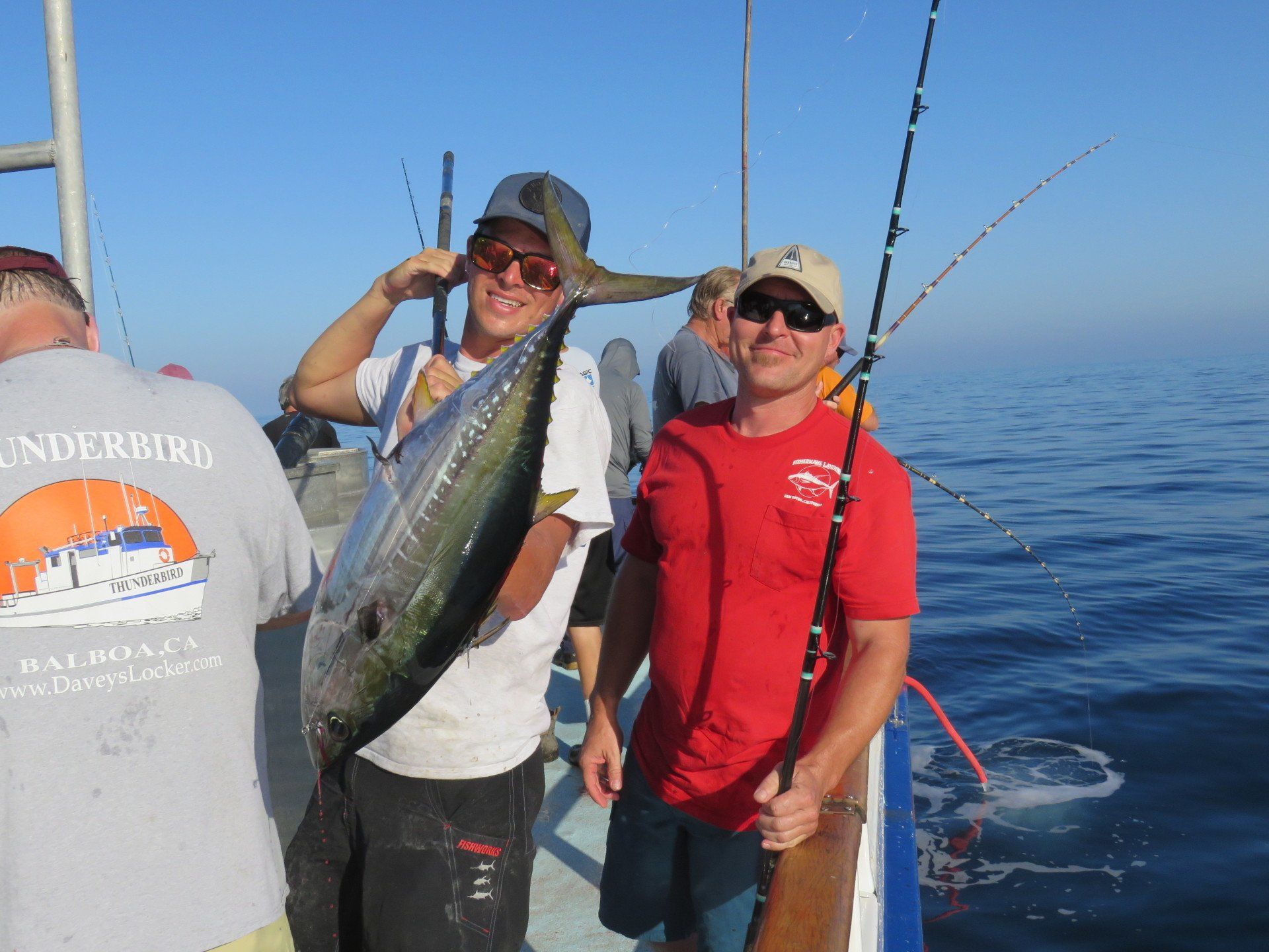 Trip #8: Boat: Thunderbird 1.5 day Departs: Thursday, October 2th Fishing: October 3th, 4th Returns: October 4th pm Thunderbird Crew: Capt. Jeff Capt. Chris Jose Nate Goofy Cast of Characters: Bill Parks Steve Morgan Riley Dyer Jim Bertella Justin Becker Jacob Richards Luke Burson Paul Morgan Mike Allen (Scribe) Patrick Thunyakij Bruce Granse Kevon Kong Michael Harris Ryan Burson Oscar Ochoa Ed Chutney Jeff Allen Andrew Ron Shrout Murphy Parks Romeo Ochoa James Harris Ozzie Baktiari Arriving for a trip in the month of October at Newport Landing is a far easier experience then one would have in the summer months of June – September. The dread of driving through the neighborhood in hopes of an empty space large enough to accommodate the larger trucks that many of the club members own seems to dissipate as the offerings are far more plentiful. While the welcomed views of summer also tend to be less abundant, the ensemble of club members arrived with plenty of time to catch-up on some conversations and enjoy a beverage or two.