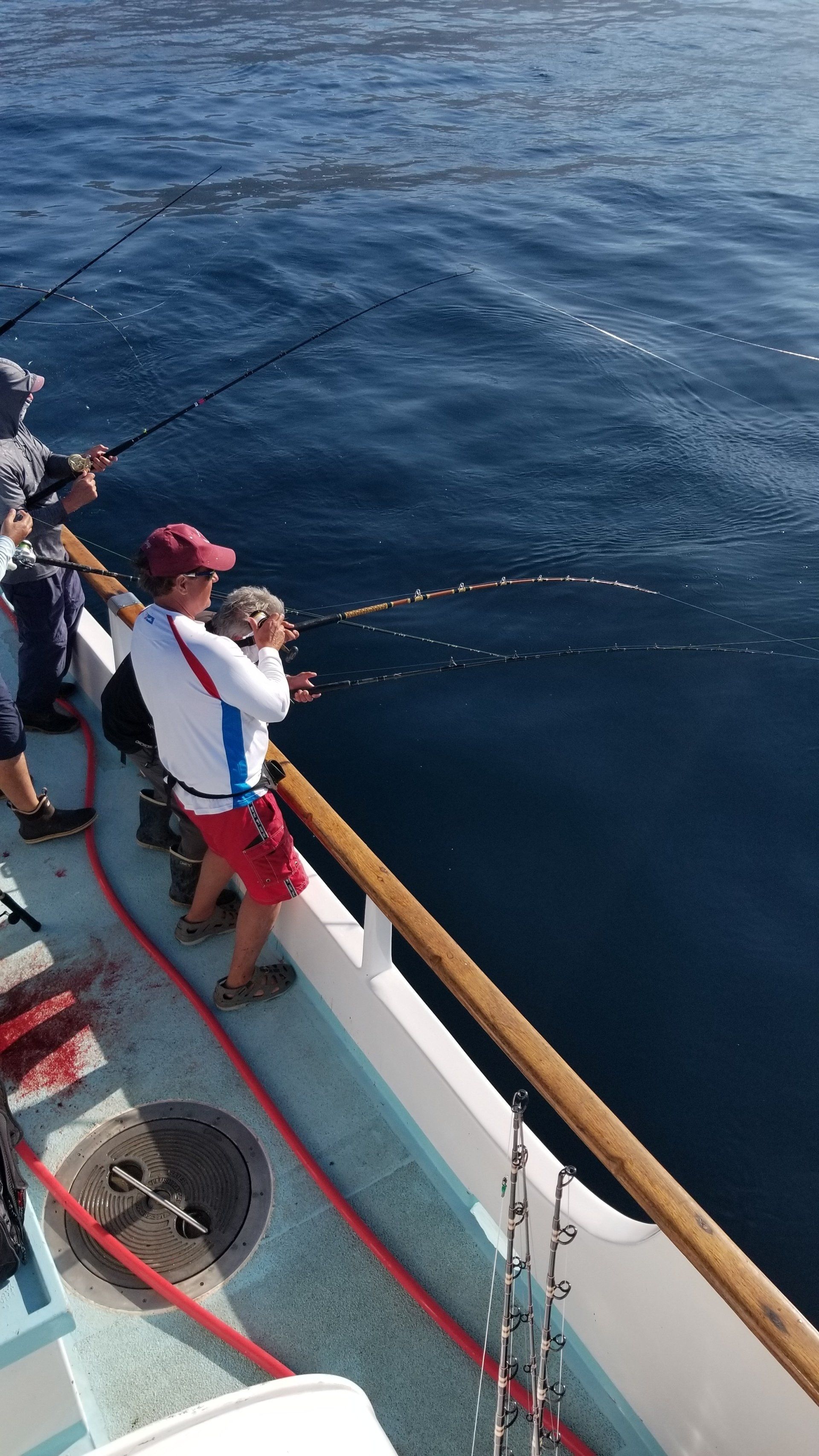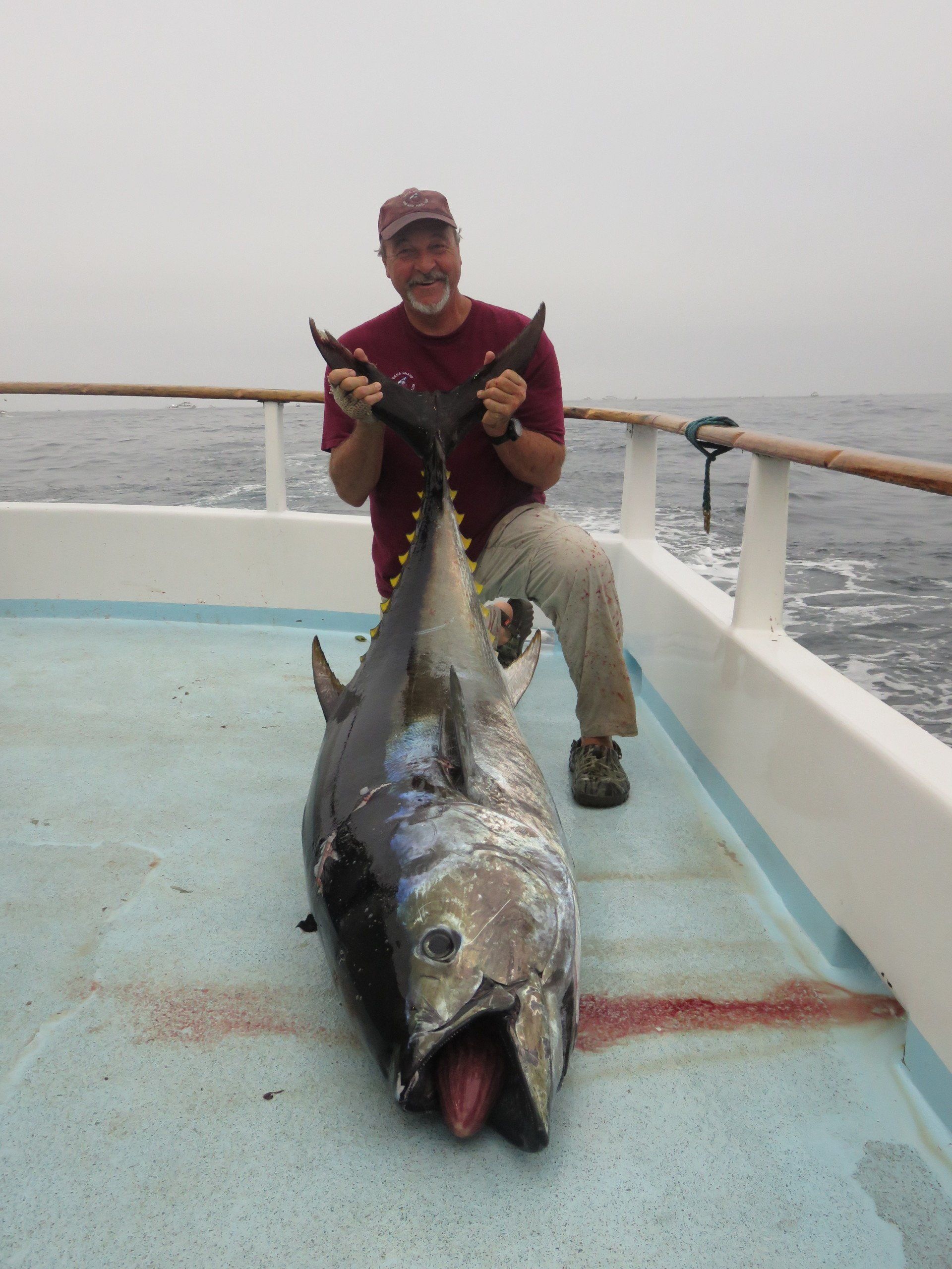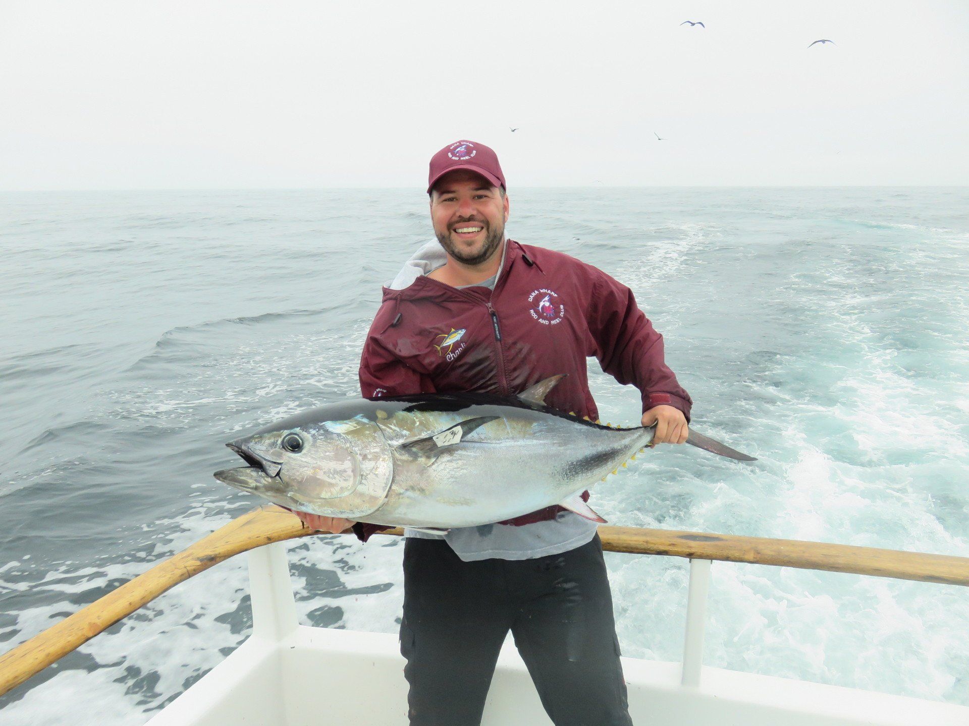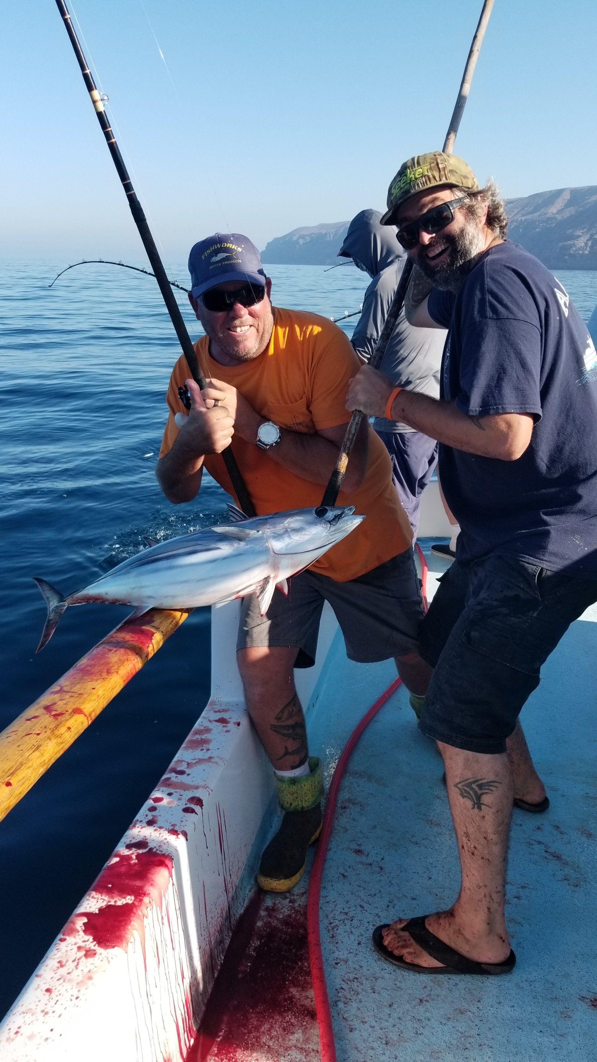 Trip #3: Boat: Thunderbird 2 day Departs: Thursday July 24 Fishing: July 25 and 26 Returns: July 26 pm Trip 3 started as usual with people arriving at Newport Landing at all hours of the day and anticipation for fishing high. The preliminary reports from Gary Thompson were not great. Bait was going to be an issue. Anchovies were sick, too hot for squid, and no sardines. Nevertheless, everyone was ready to go. Due to some late cancellations (bummer), there were 21 passengers on the trip. Gary gave the pre-trip update before boarding with the news that we would make the ride down to Dana Wharf, where there were good sardines for bait. That was the good news. The bad news was that it was going to be a bumpy ride out and wind was going to be an issue, and we probably wouldn’t make it to San Clemente Island. Our initial destination would be Catalina. So, at 9pm off we went. Friday morning saw us anchored at China cove at Catalina. I haven’t been with the club long, but my understanding from some of the older members is that the club hasn’t fished Catalina in many years. I was up at 3:30ish and there were a few hearty souls trying to make squid bait. 2-3 at a time on squid jigs, and eventually we had a decent amount of squid to go along with the sardines. Possibly a good sign. Gradually all the fisherman got lines in the water, with most people dropping down by 5am, waiting for the fish to bite. Well, the yellowtail and white seabass were a no show. We did have a pretty incredible black seabass bite. A total of 6 were hooked, 3 broke off, and 3 were landed (all by Jim Bertella) and released. At 7:30 Captain Chris decided to make the move over to San Clemente Island. We looked for kelp patties and bluefin on the way. Again, fish were a no show (there’s a theme happening here). Made it to Clemente about 11:30. We spent the rest of the day fighting winds at Clemente. Most of the fishing was close to the island with catch and release calico fishing, although a few nice ones were kept. A few small yellowtail were caught on bait, and one on a surface iron. On any other trip these probably would have been released, but beggars can’t be choosers. Final count for day 1 was 9 yellowtail. Gary Thompson won jackpot. We anchored at Clemente for Friday night. Overnight the squid came up and we woke to plenty of squid in the bait tanks. We started fishing early Saturday morning by dropping down for yellowtail. Once again, the fish were a no show. It wasn’t for lack of trying. All the passengers dropped lines and were giving it the best effort. Enthusiasm remained high. A small halibut was caught, along with a few barracuda. At 7:30 we pulled anchor and started looking for bluefin. At 8, a small bluefin was caught on the troll by one of our guests. No other fish were willing to bite and we kept looking. No luck. At mid-morning, Chris set us up for some rockfishing drifts. Most of the fish caught were salmon grouper, but people at least had a shot to fill their bags. After the rockfishing, we were back on the troll. We covered a wide area of ground. I believe at one point we may have entered into Mexican waters. We saw no bluefin during the troll. Finally, we had to start heading back to the landing. As we were heading north, we saw one our first and last kelp patty. It would be our last stop for the trip. On the stop, one yellowtail was caught using a colt sniper. Like the yellowtail on day 1, it wasn’t big (generous to call it 8 pounds), but it was a keeper and the jackpot fish (sad but true). Final count for day 2 was 1 yellowtail, 1 bluefin on the troll, 1 halibut, and a couple of barracuda. Brian Drazba won jackpot. Despite the rough weather and challenging fishing conditions. Captain and crew were great as always. Never gave up. And I believe all club members and guests had a good time. We can’t always have great days and it just gets us ready for the next trip. Submitted respectfully, Brian Drazba