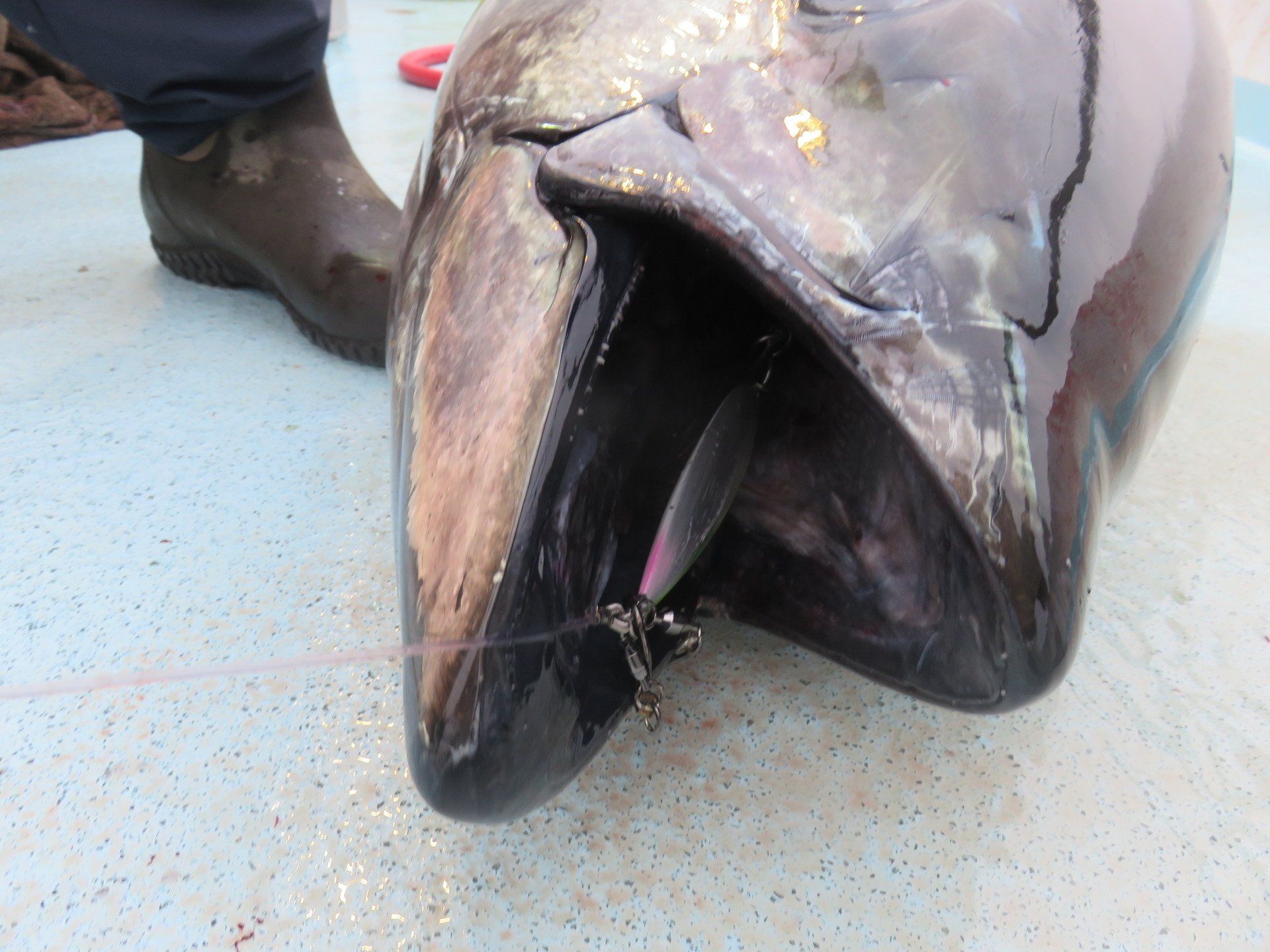 Three gaffs and a bloody penis apron from Goofy later, 218lbs hits the deck. Bill had successfully pulled back to back 200+lb mornings. Congratulations again Bill, that was some very impressive fishing.