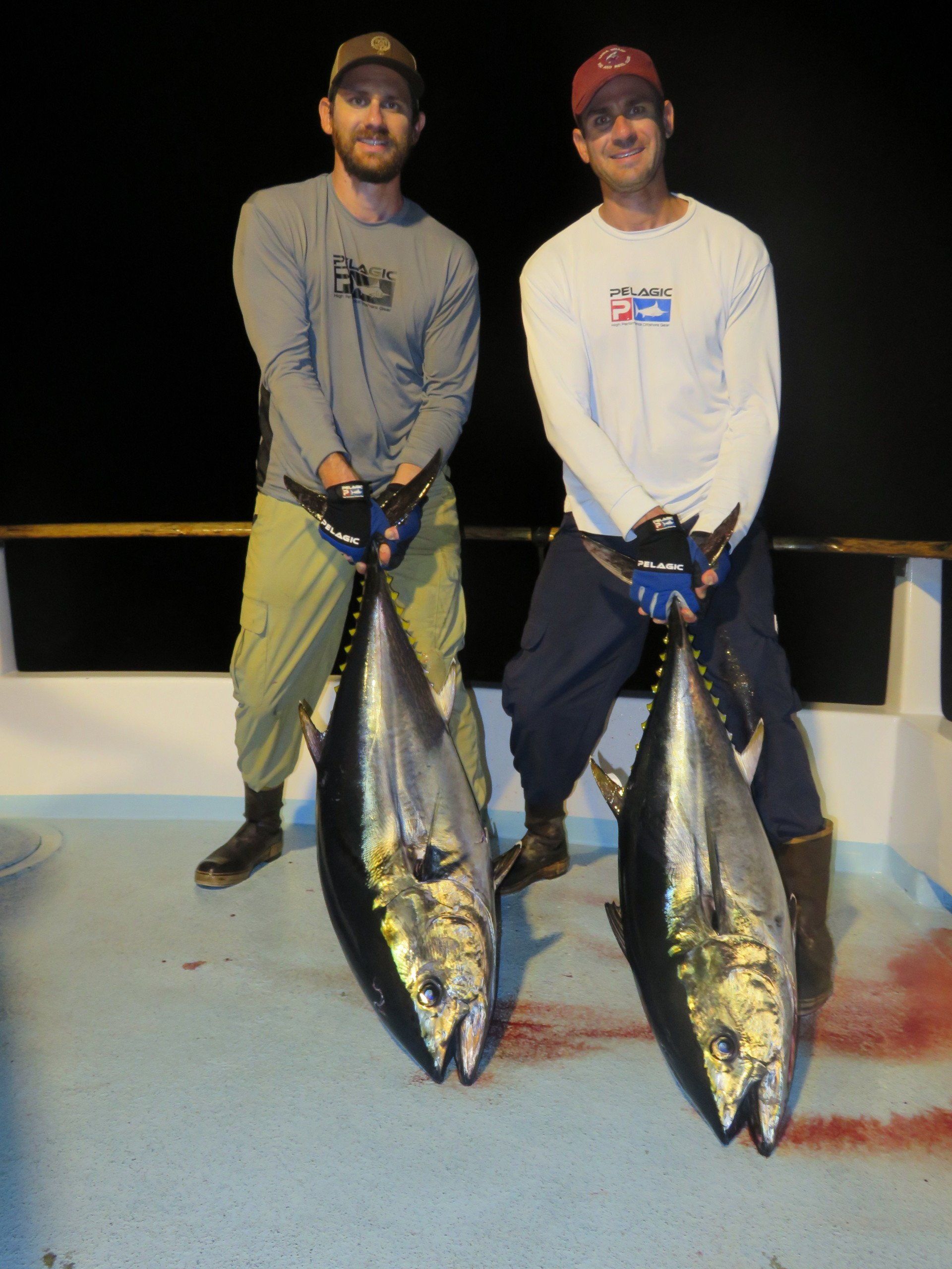 Once the excitement died down we made our way to our night spot off the island for dinner and an attempt at some bigger fish again. It's about 8:30 when we start fishing. Jeff calls out marks around 40-50 fathoms and we manage to put eight more BFT on board in the 20-60lb range.