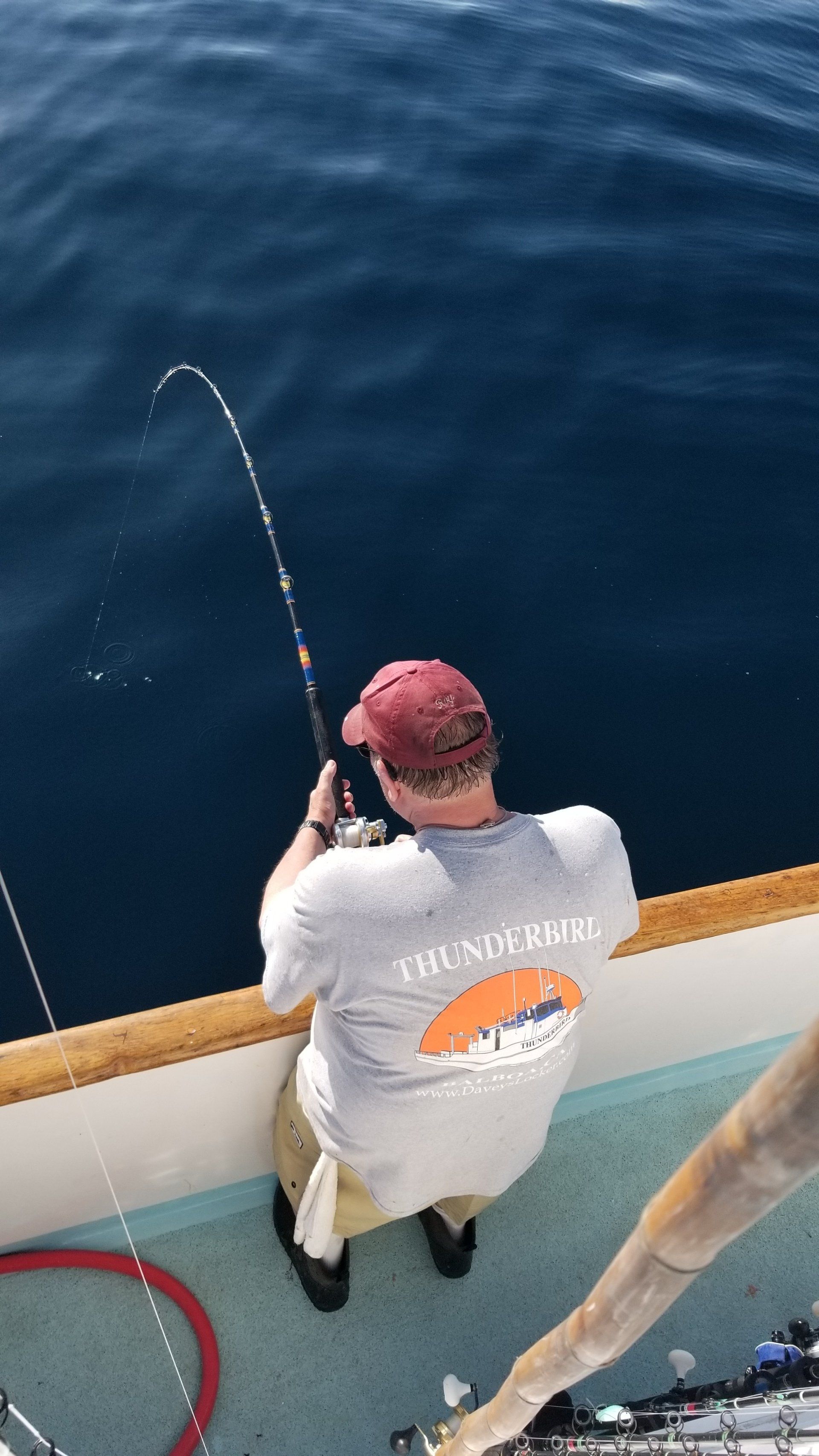 This was my favorite part of the trip (I also didn't get a 200lb fish). It's been a very long time, for me at least, to be standing elbow to elbow at the bait tank with your hook primed in one hand and securing your chosen 'dine with your other. Everybody standing tall watching the school planning out their next 10-15 seconds, waiting to hear Jeff back down the engine so we can rumble.