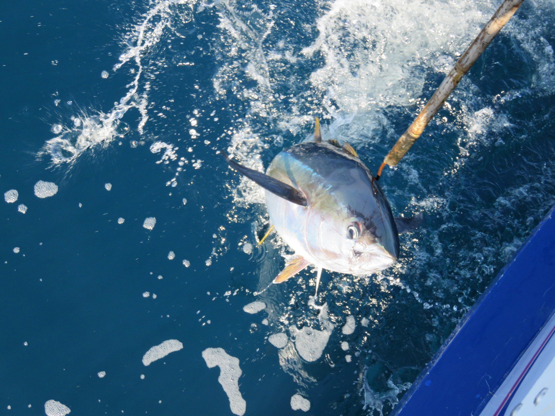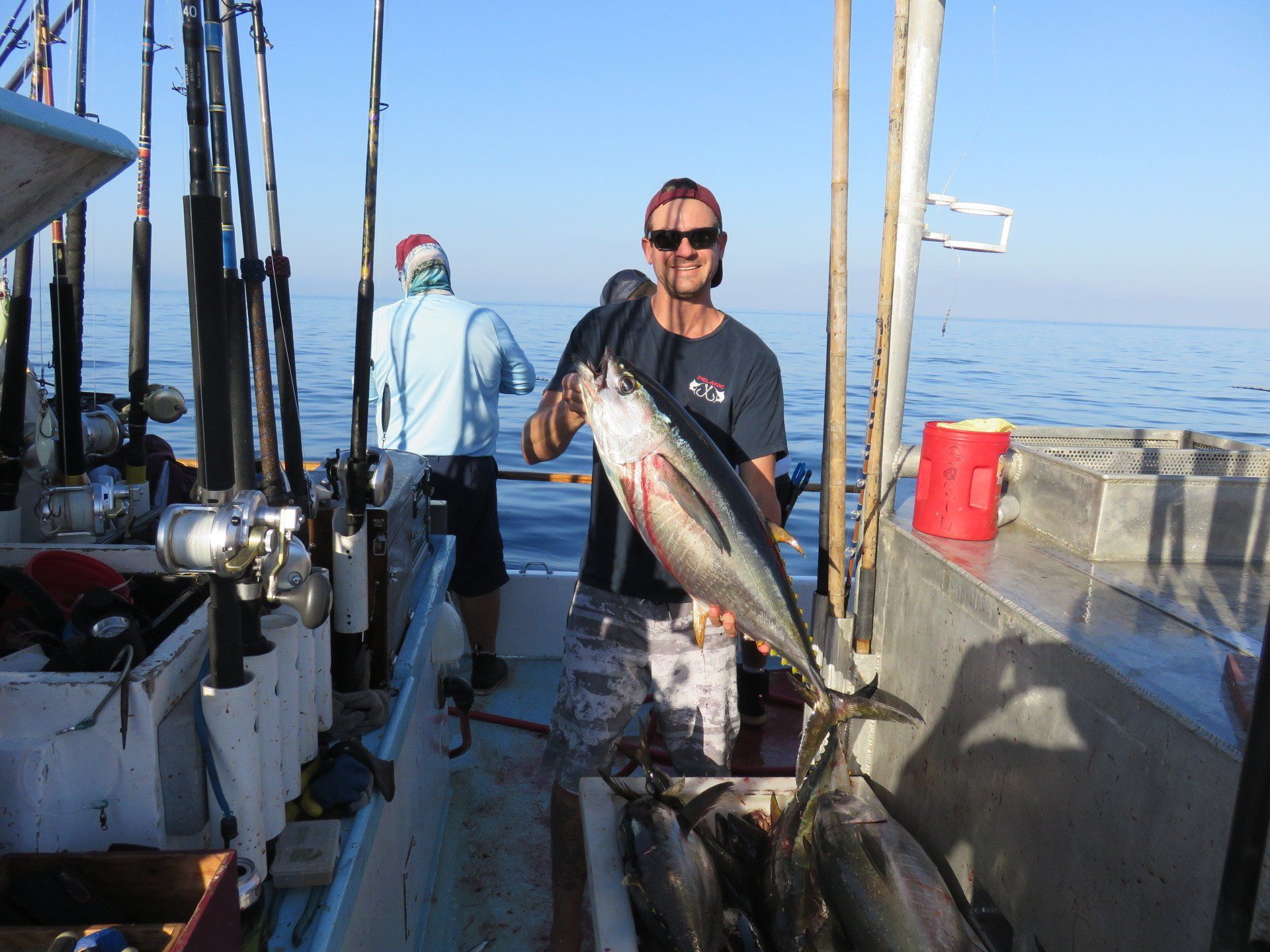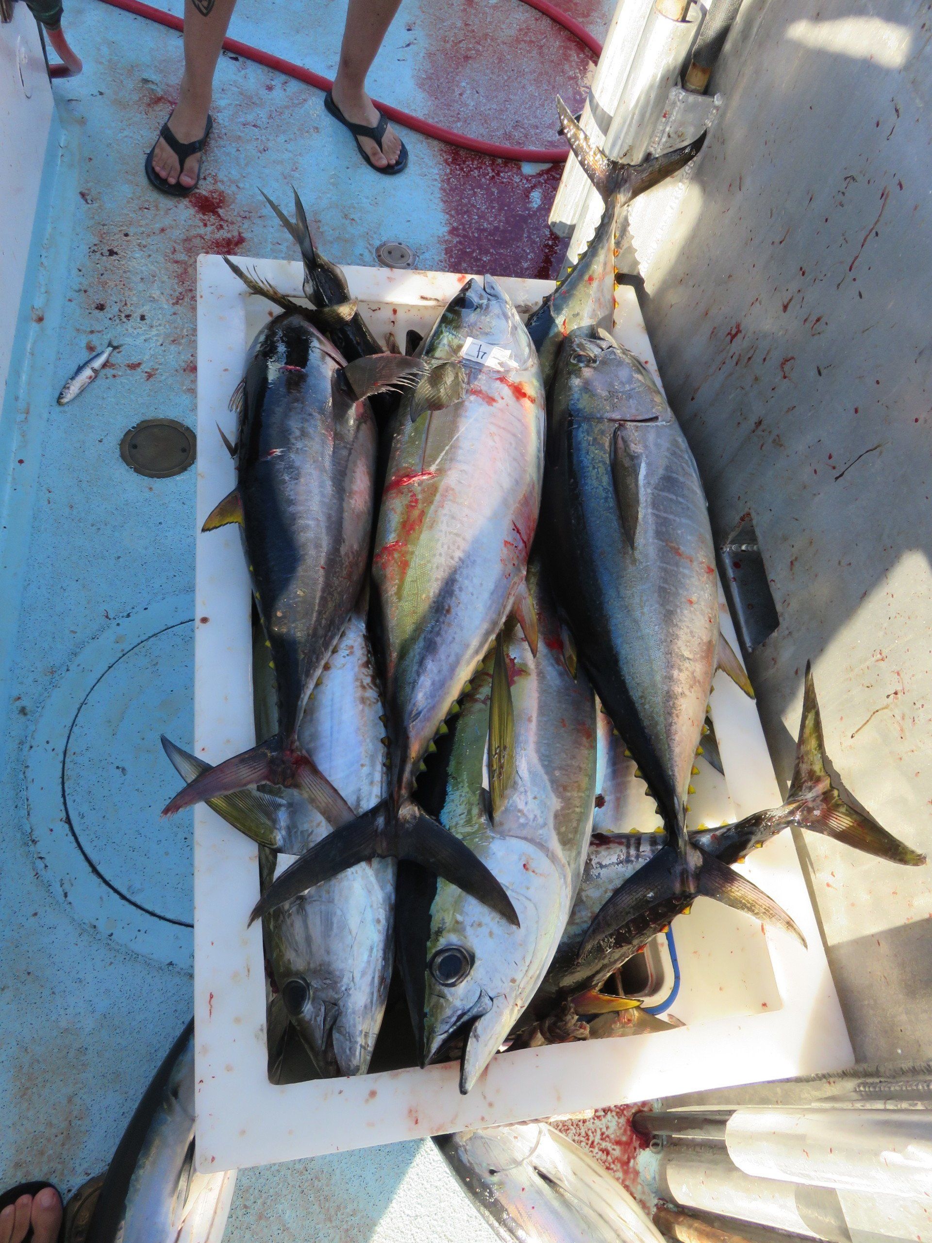 Finally, the stop we were waiting for. We had a school of torpedos that were hungry and just blowing up anything that hit the water. We had boils upon boils, YFT becoming airborne and if you weren't on as soon as your bait hit the water, you were about to be. The bite didn’t last long but it came on strong.